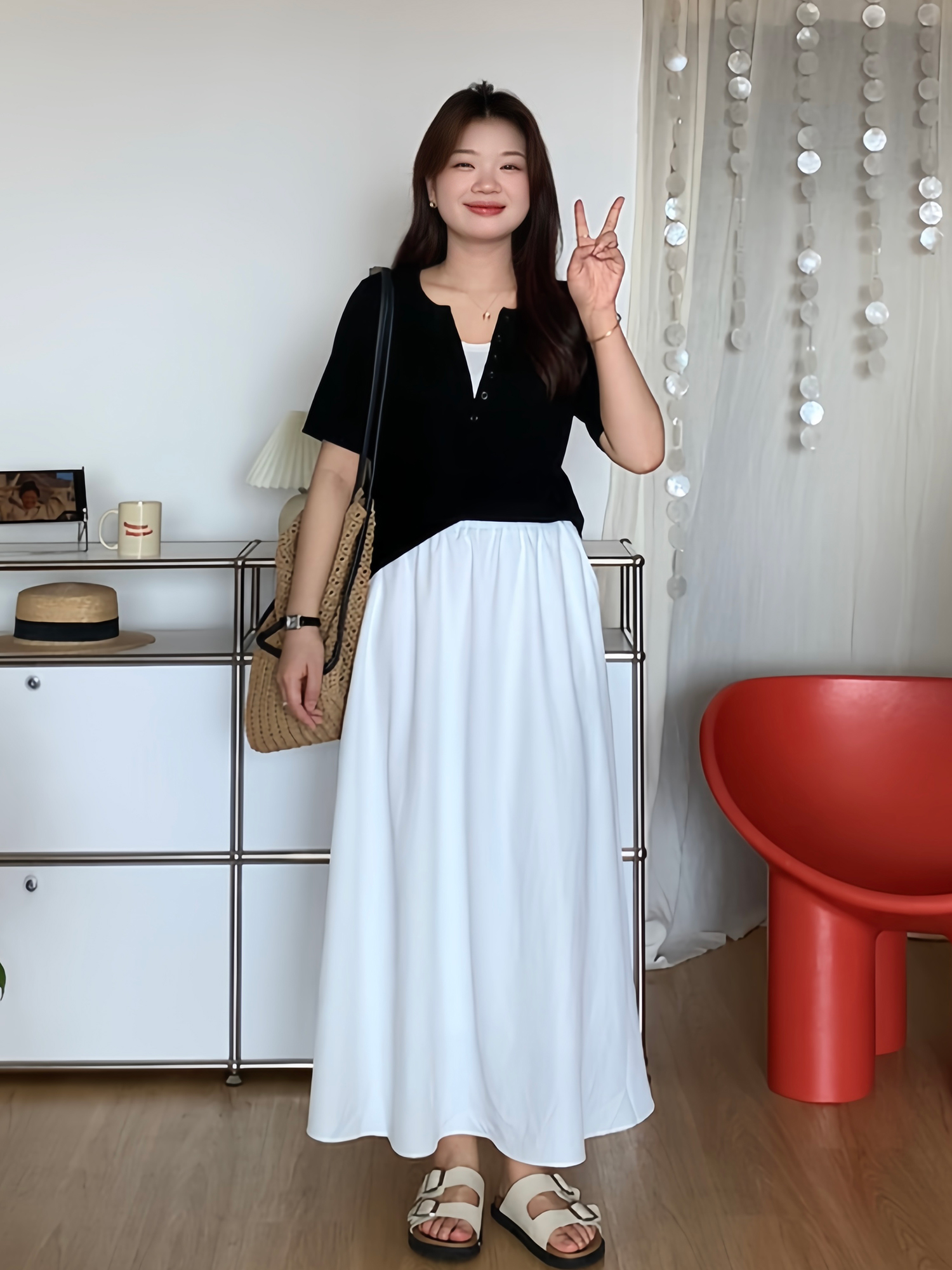 微胖的喵喵 大码女装梨形mm春夏显瘦气质遮胯高腰纯色半身裙 3633