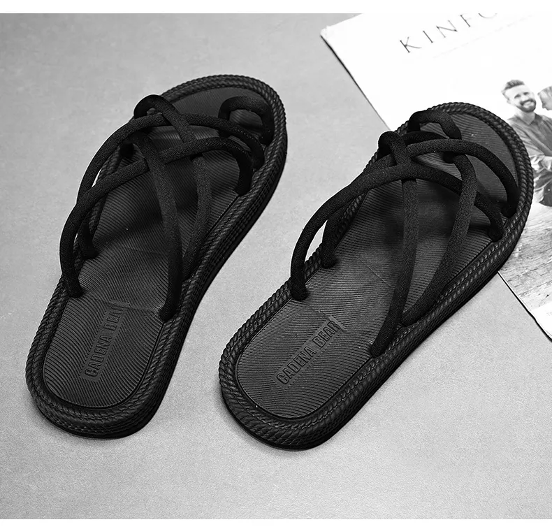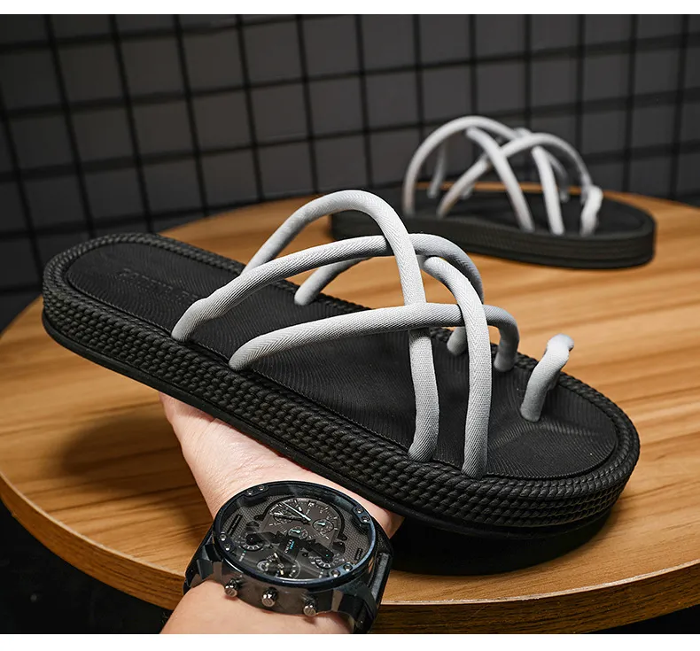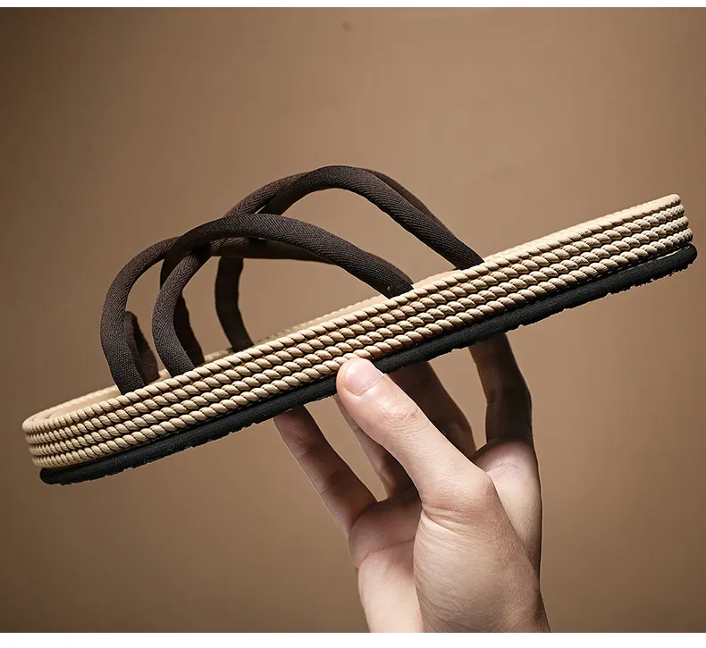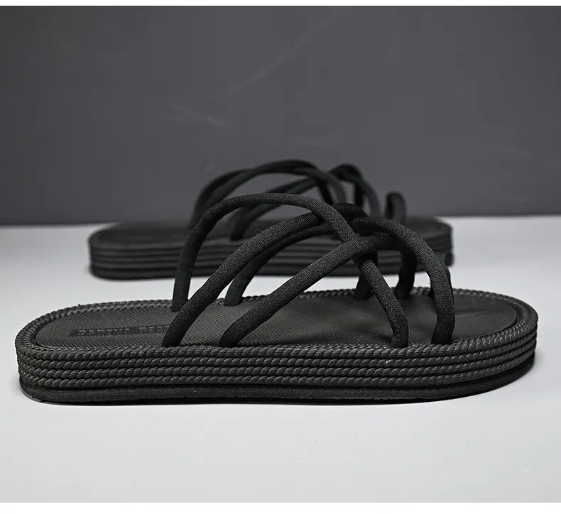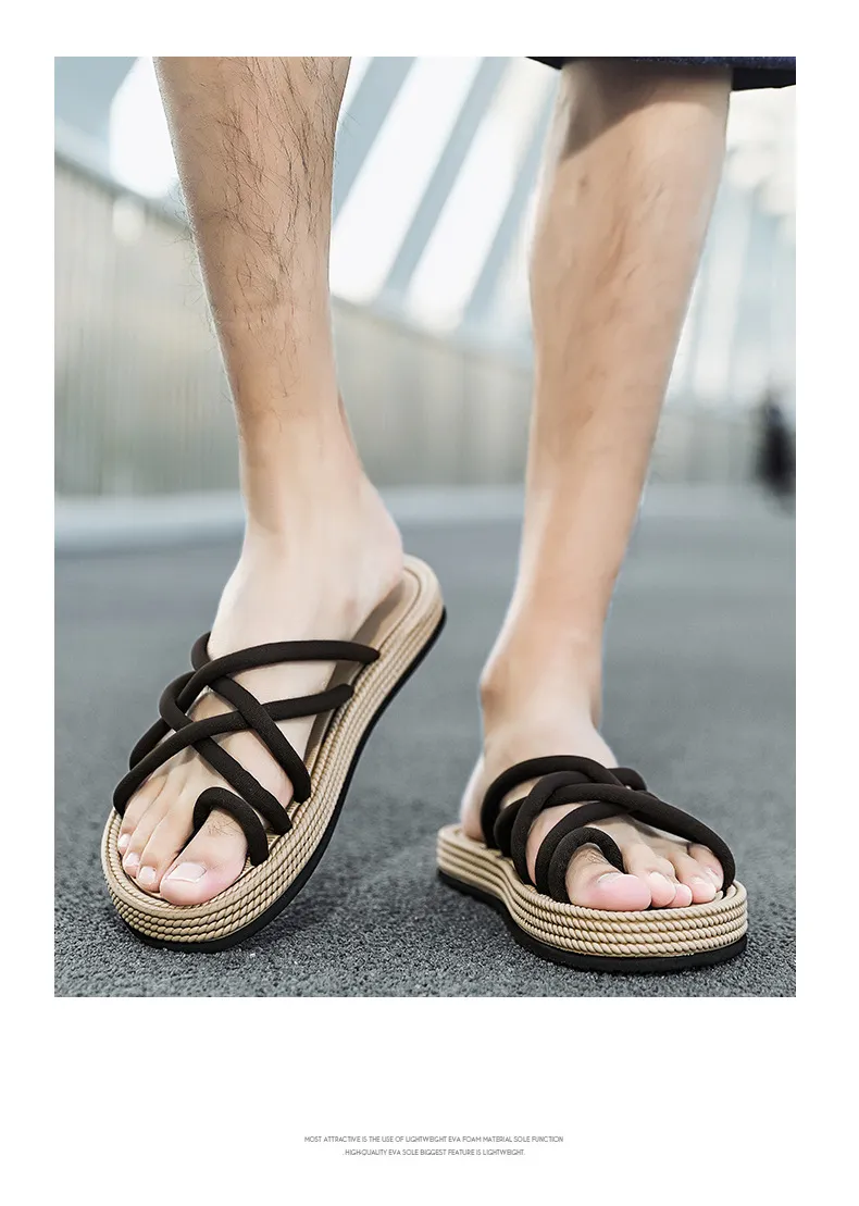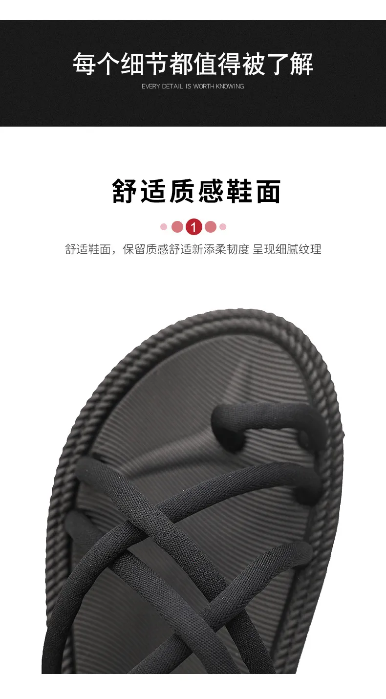 编织绳夹脚人字拖男拖高级感厚底夹趾夏季罗马沙滩外穿防滑凉拖鞋