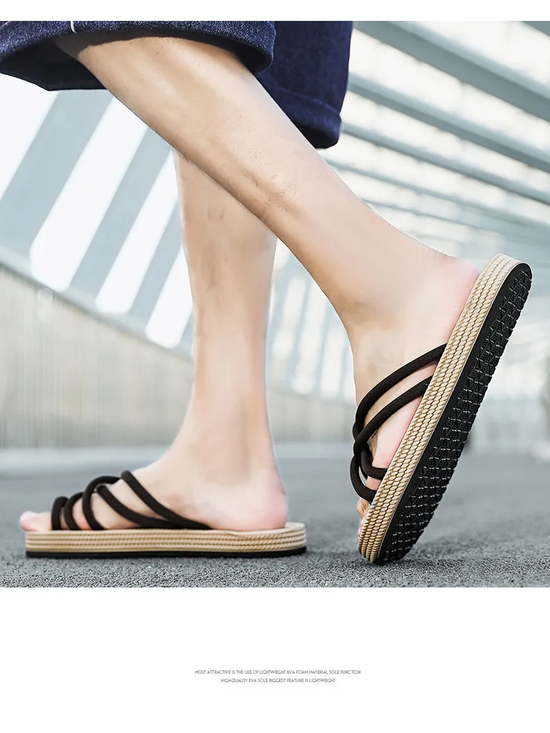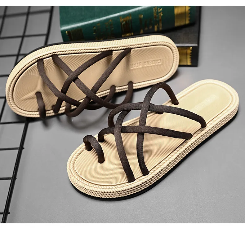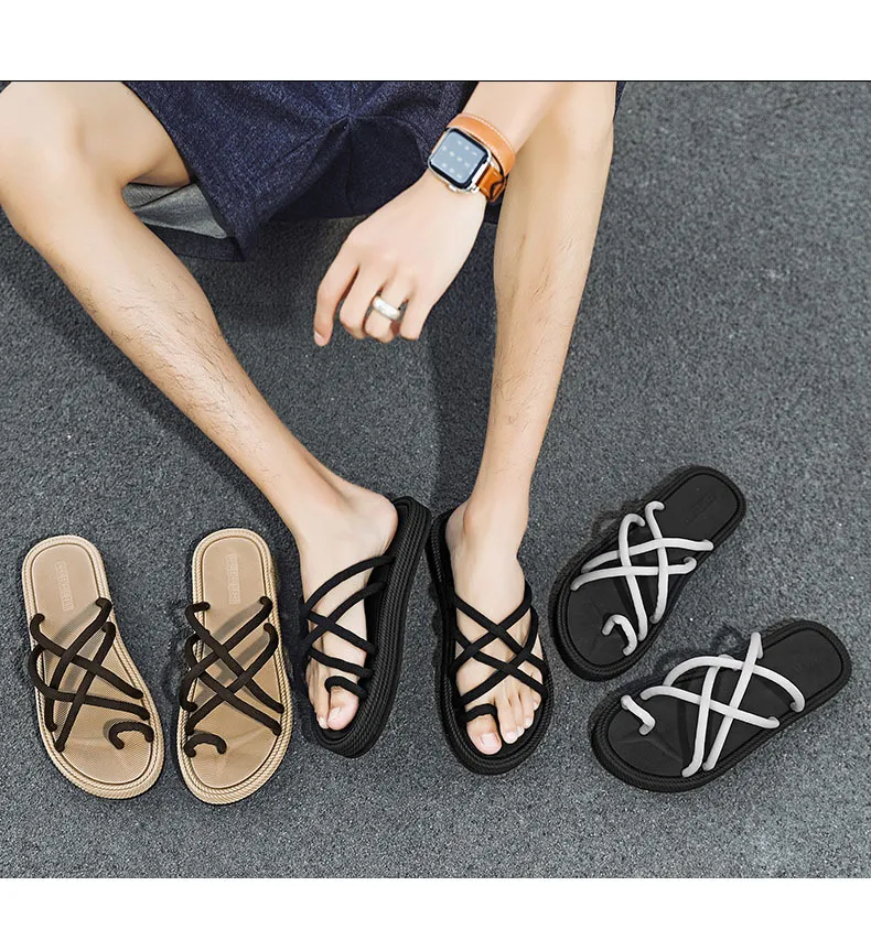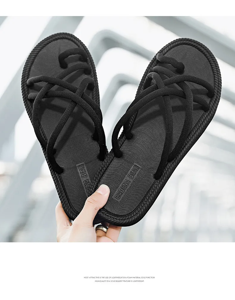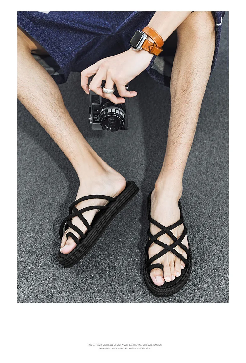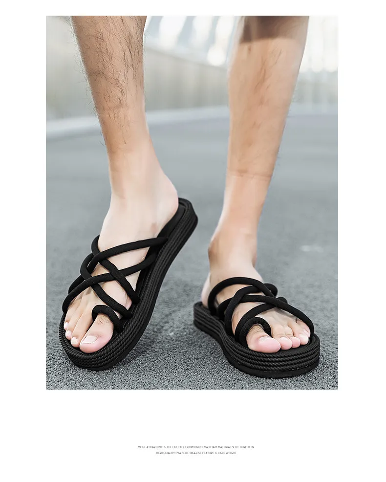 编织绳夹脚人字拖男拖高级感厚底夹趾夏季罗马沙滩外穿防滑凉拖鞋