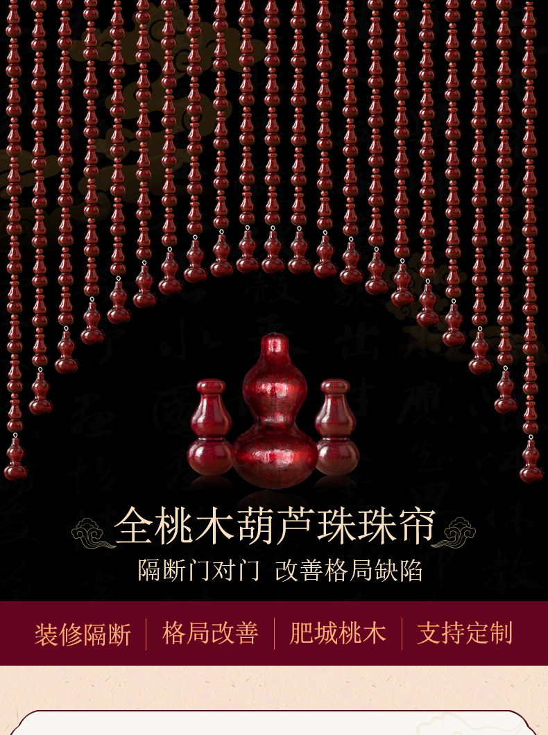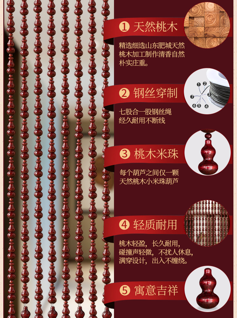 全桃木葫芦卧室门帘装饰客厅隔断帘玄关厨房厕所餐厅免打孔挂帘子