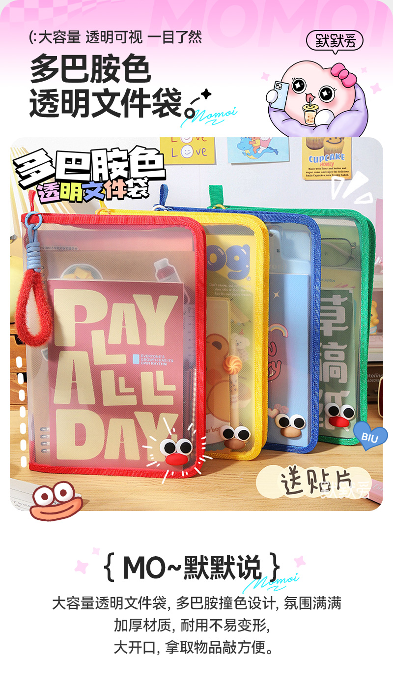 拉链文件袋透明大容量课本学生手提拎书袋试卷夹初中生文具收纳包