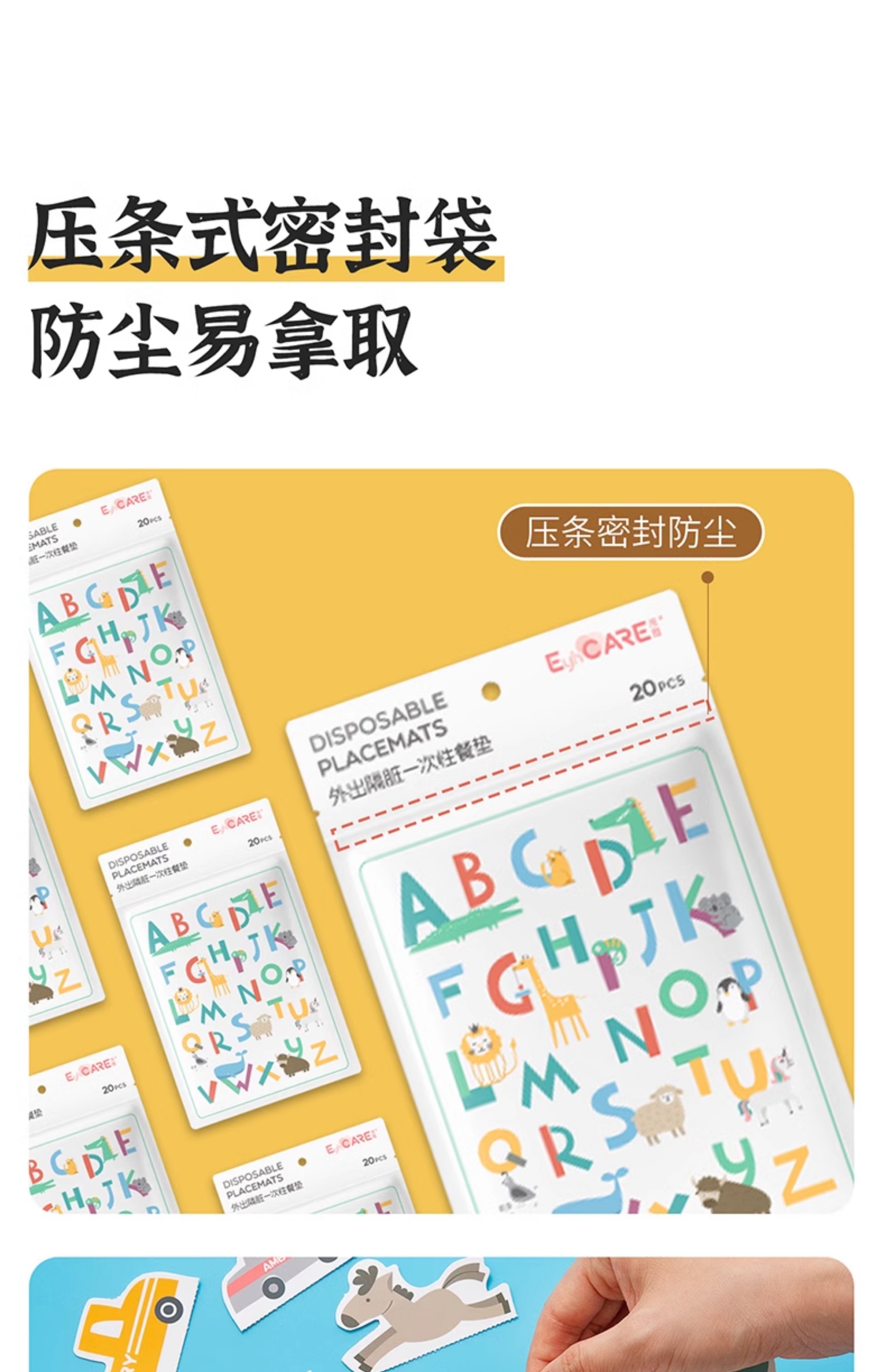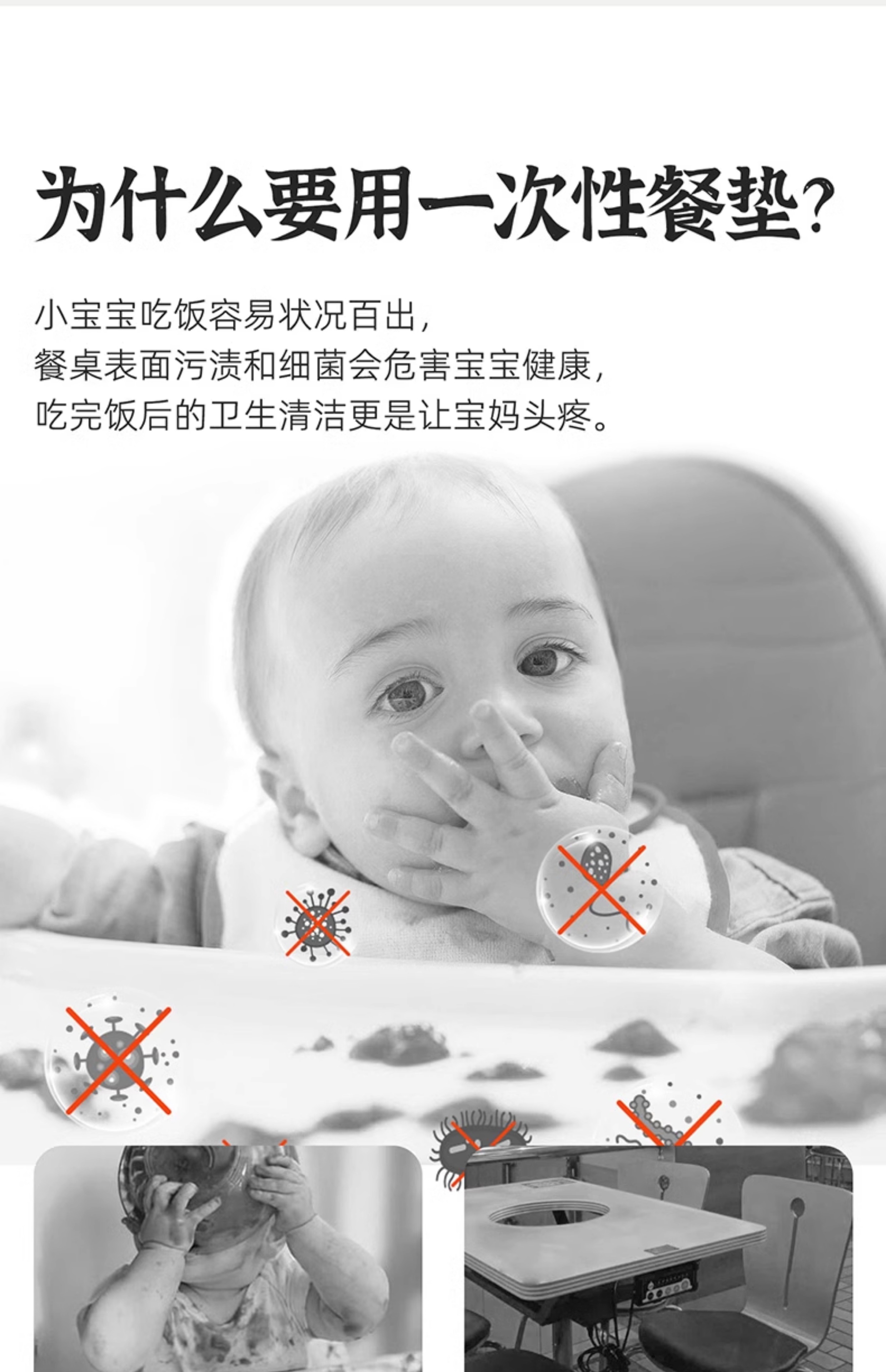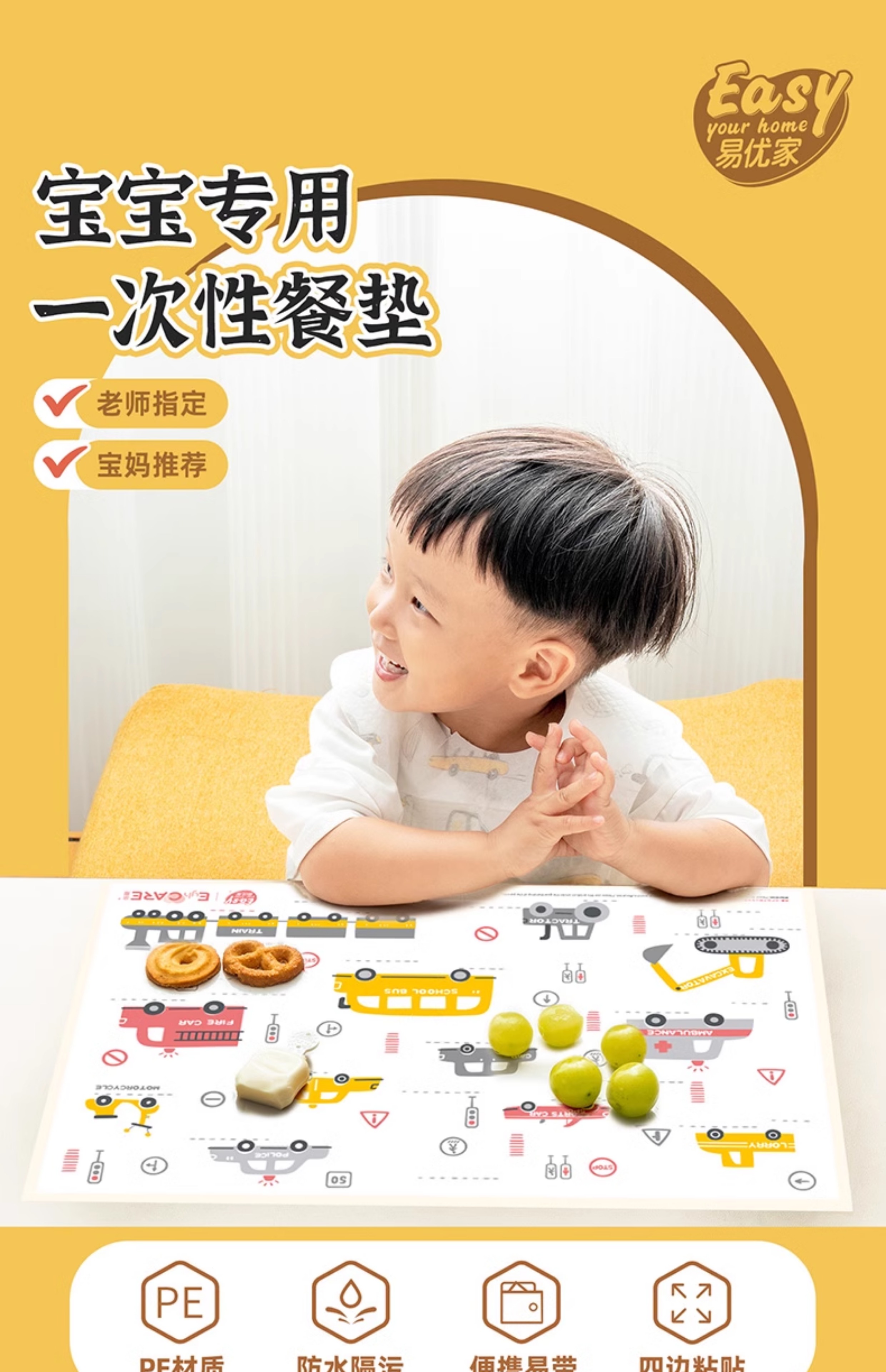 易优家一次性餐垫婴儿童桌布外出防水防油餐桌垫20条