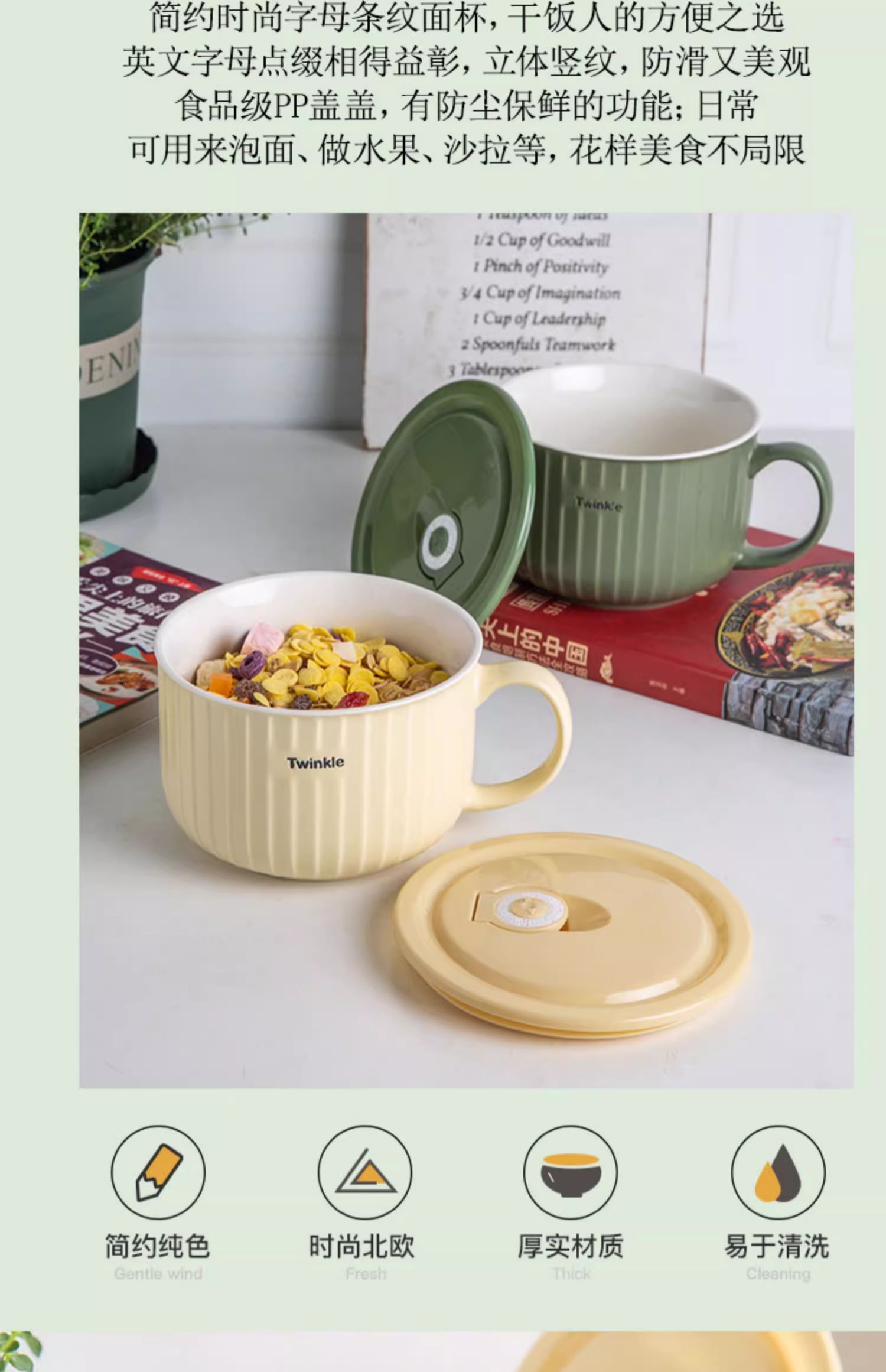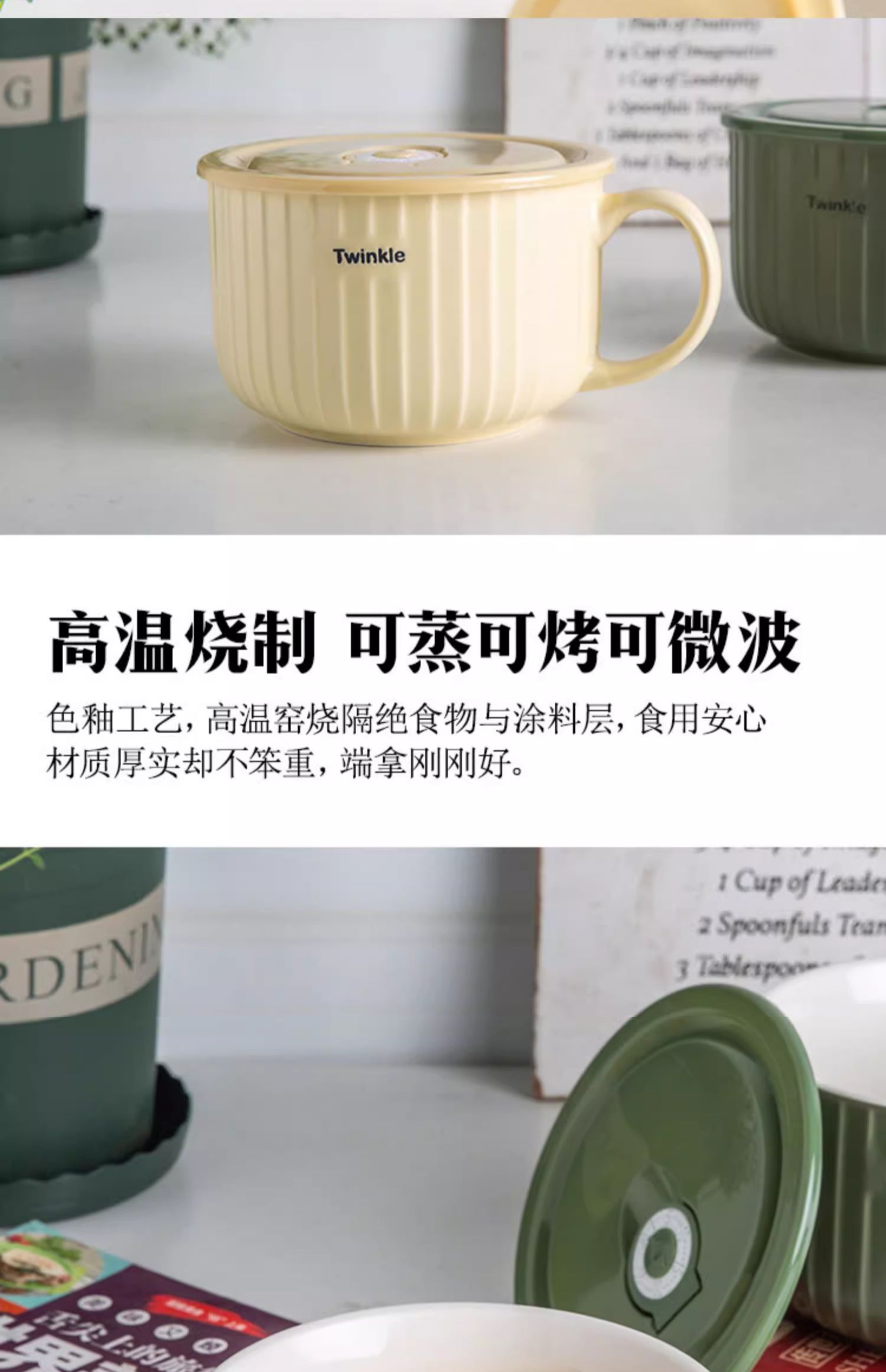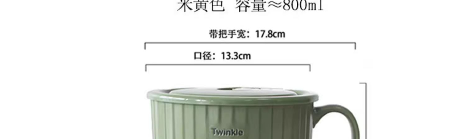 华青格陶瓷泡面碗带盖大容量学生宿舍高颜值面碗大号可微波炉加热