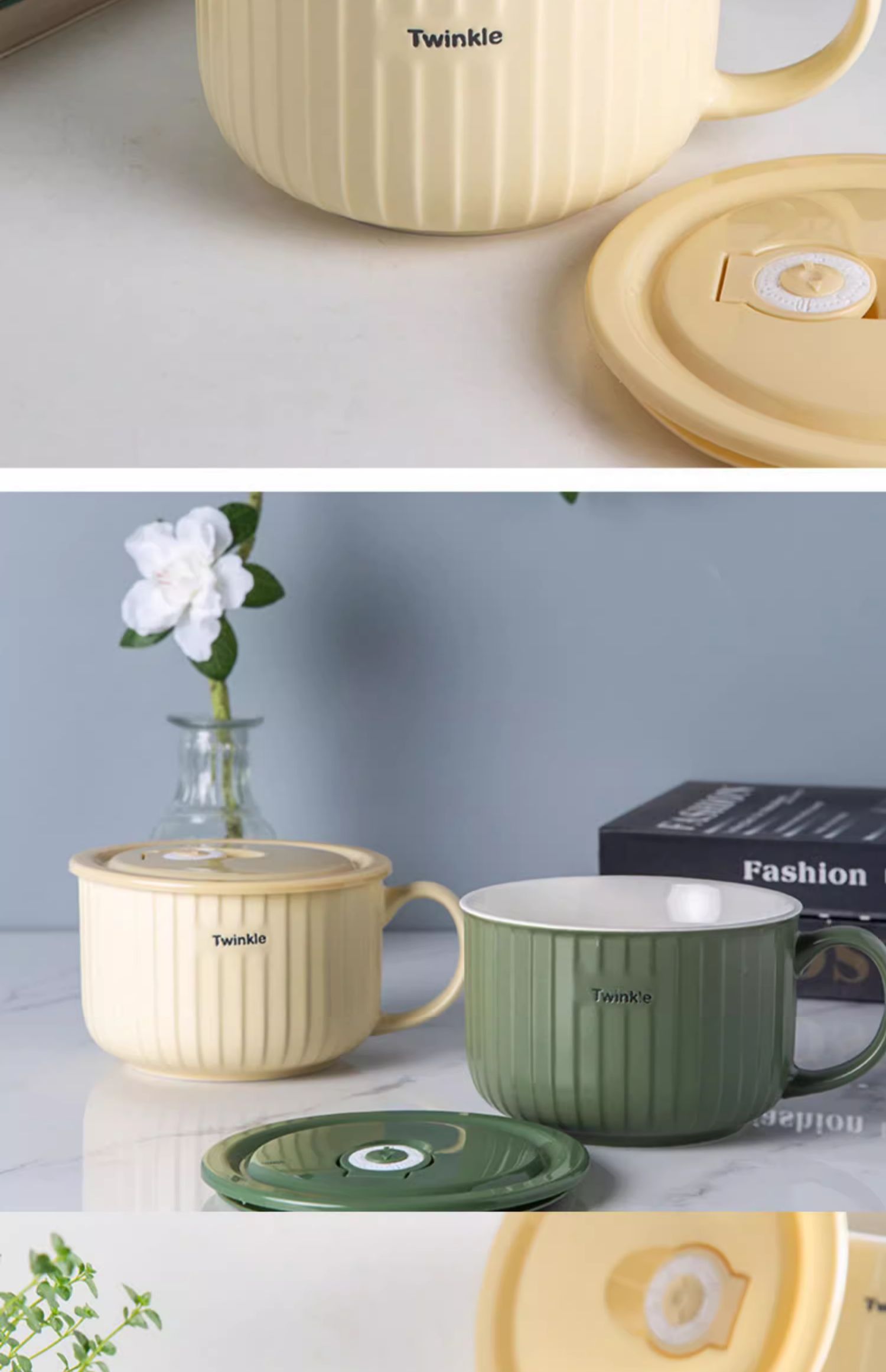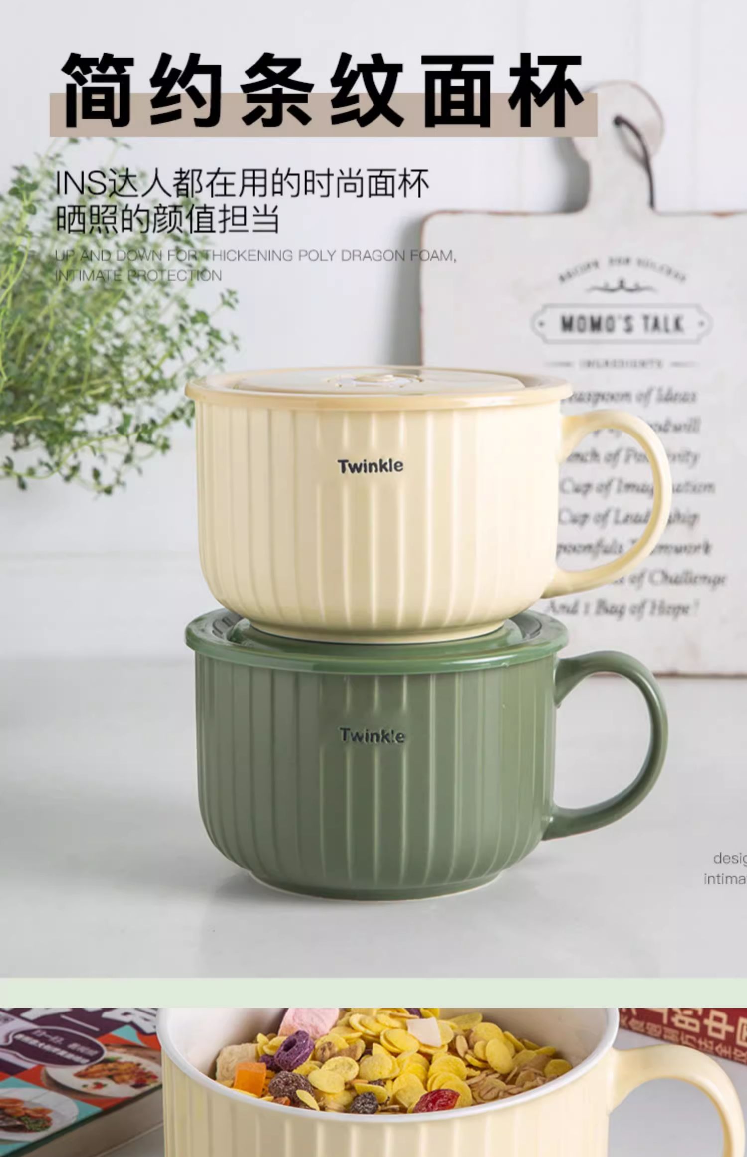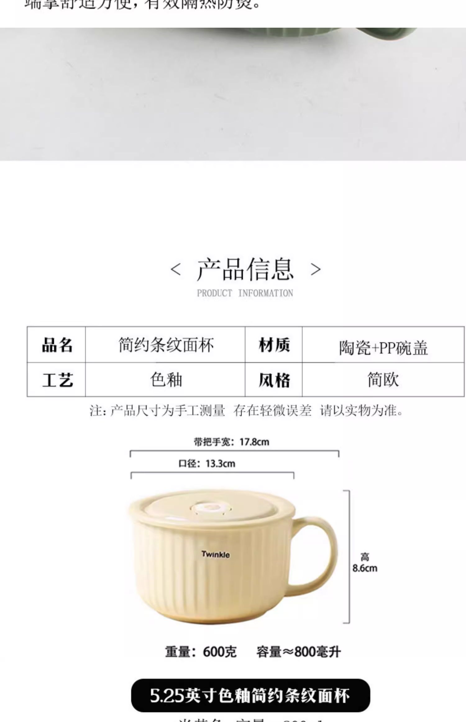 华青格陶瓷泡面碗带盖大容量学生宿舍高颜值面碗大号可微波炉加热