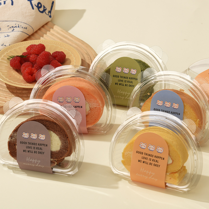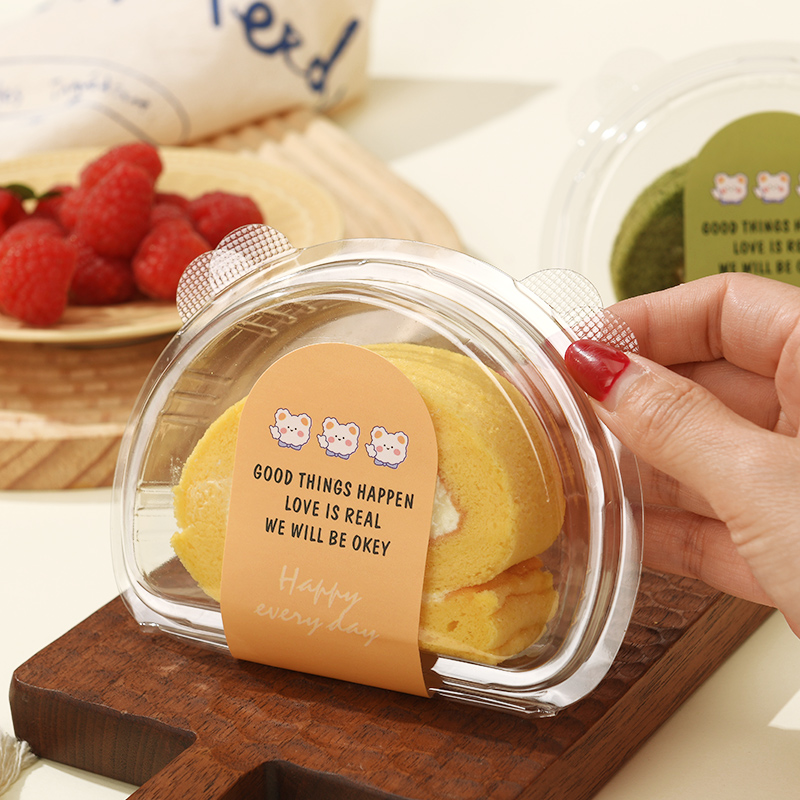 可爱小熊日式蛋糕卷单个包装盒烘焙点心手提透明山姆瑞士卷分装盒