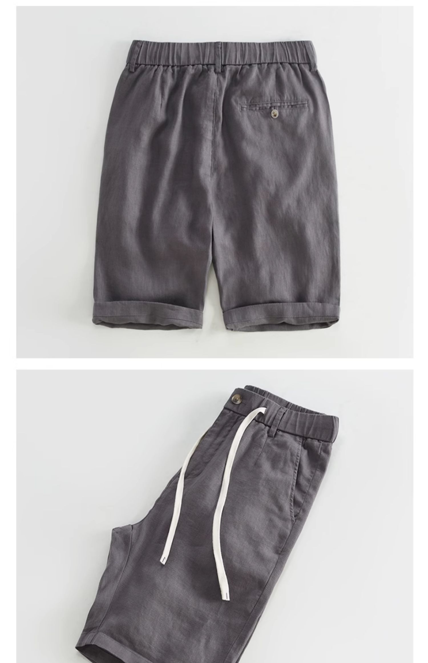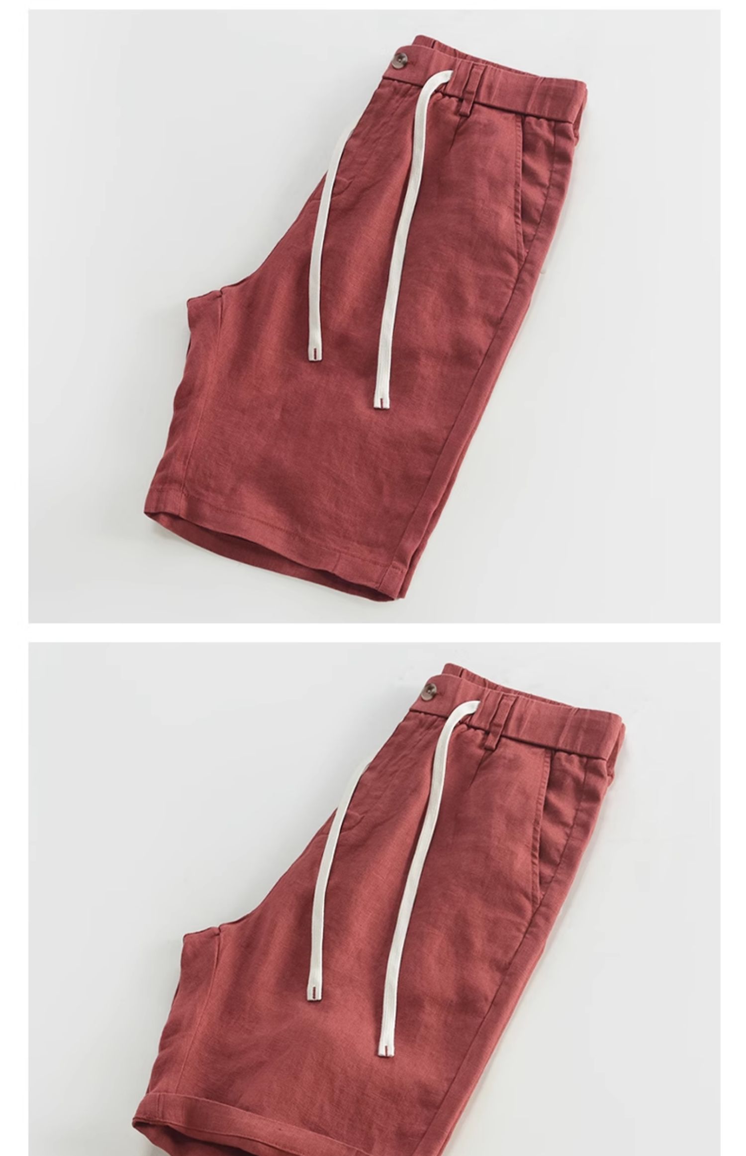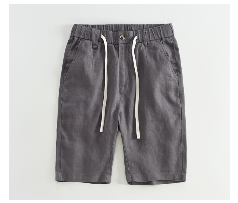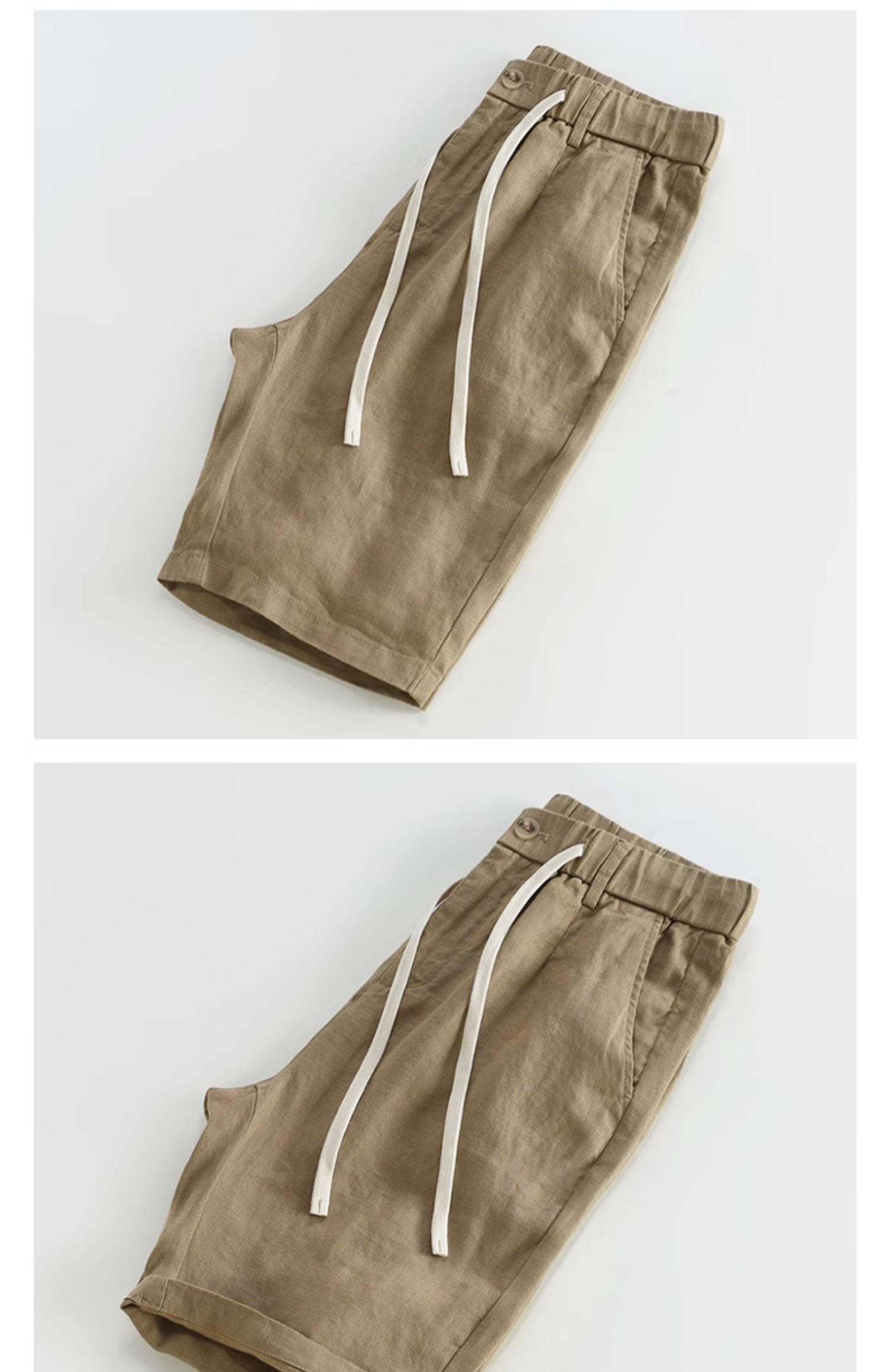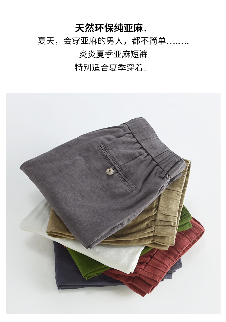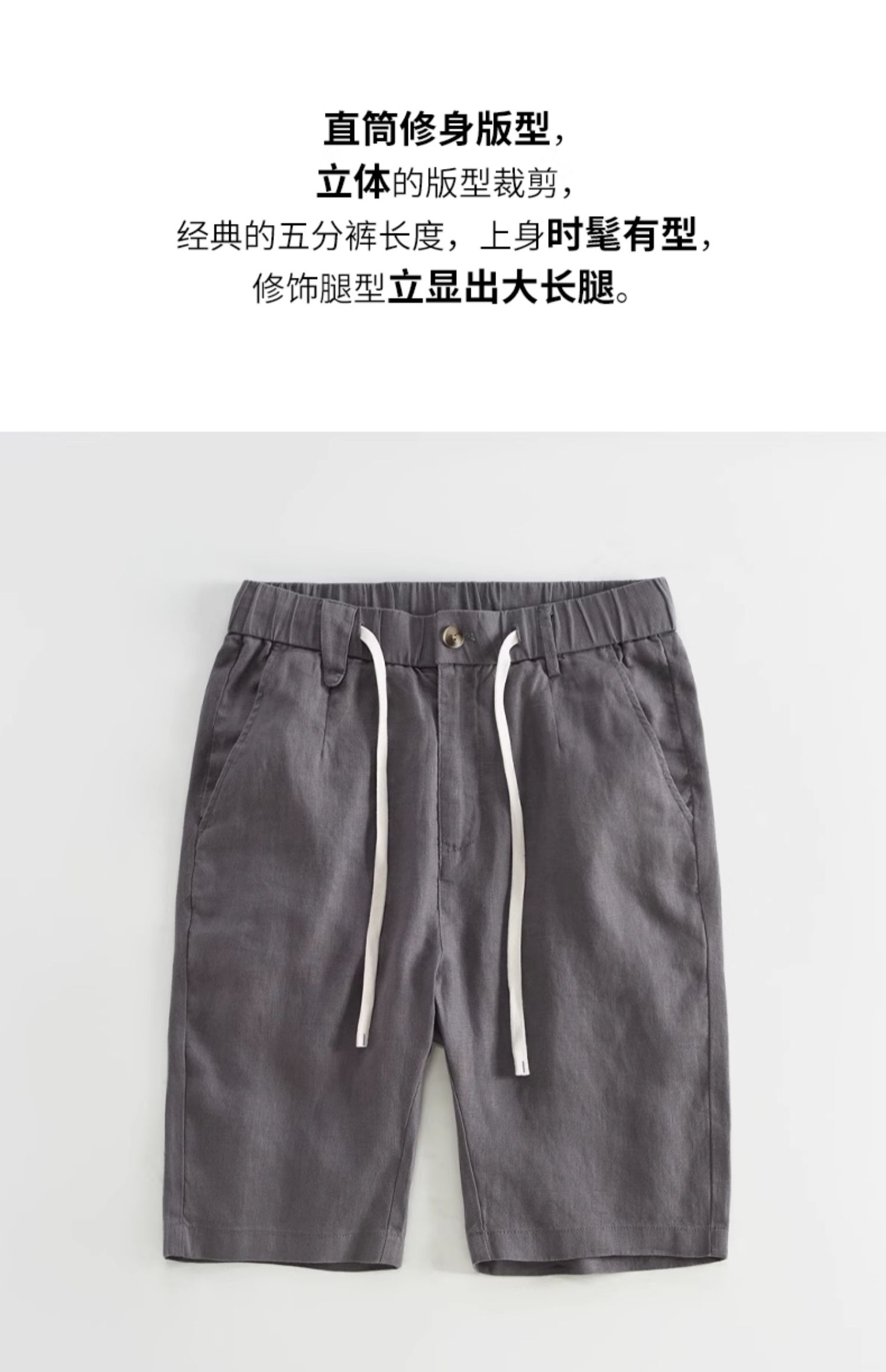 汉絮2025夏季亚麻休闲短裤男款修身小直筒裤男纯色百搭沙滩五分裤