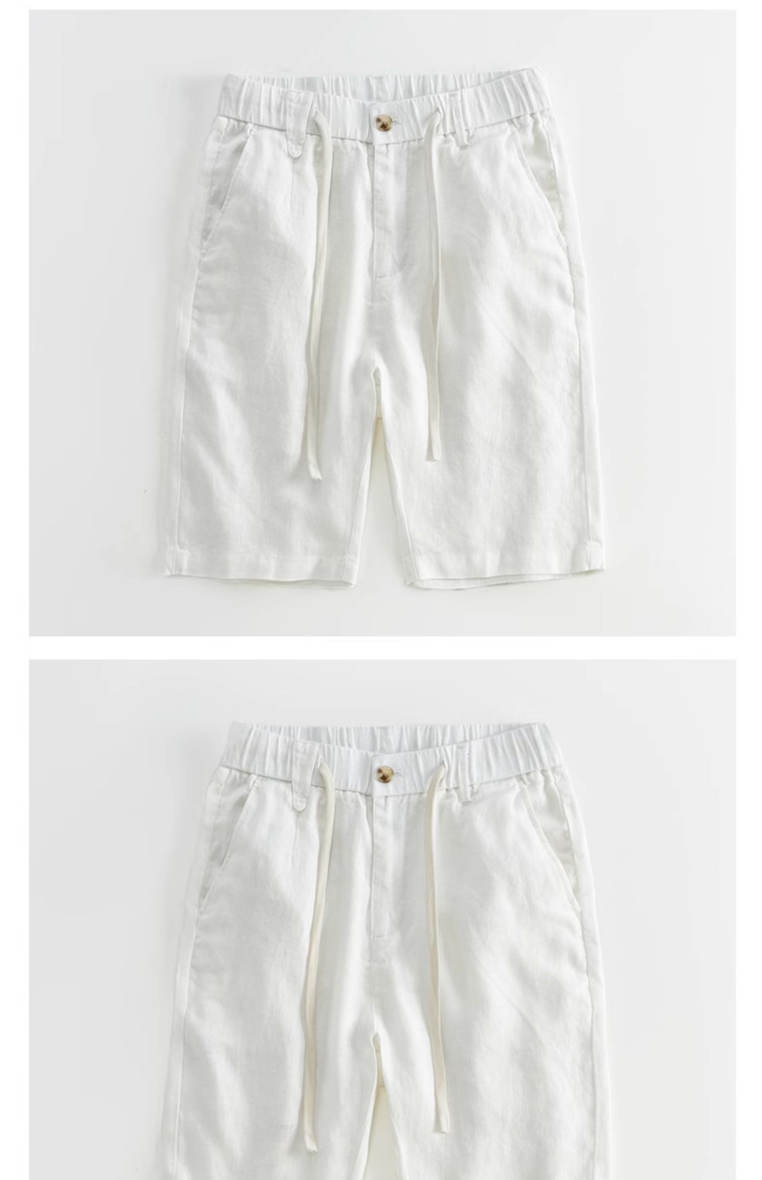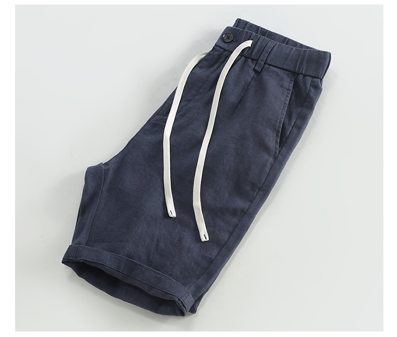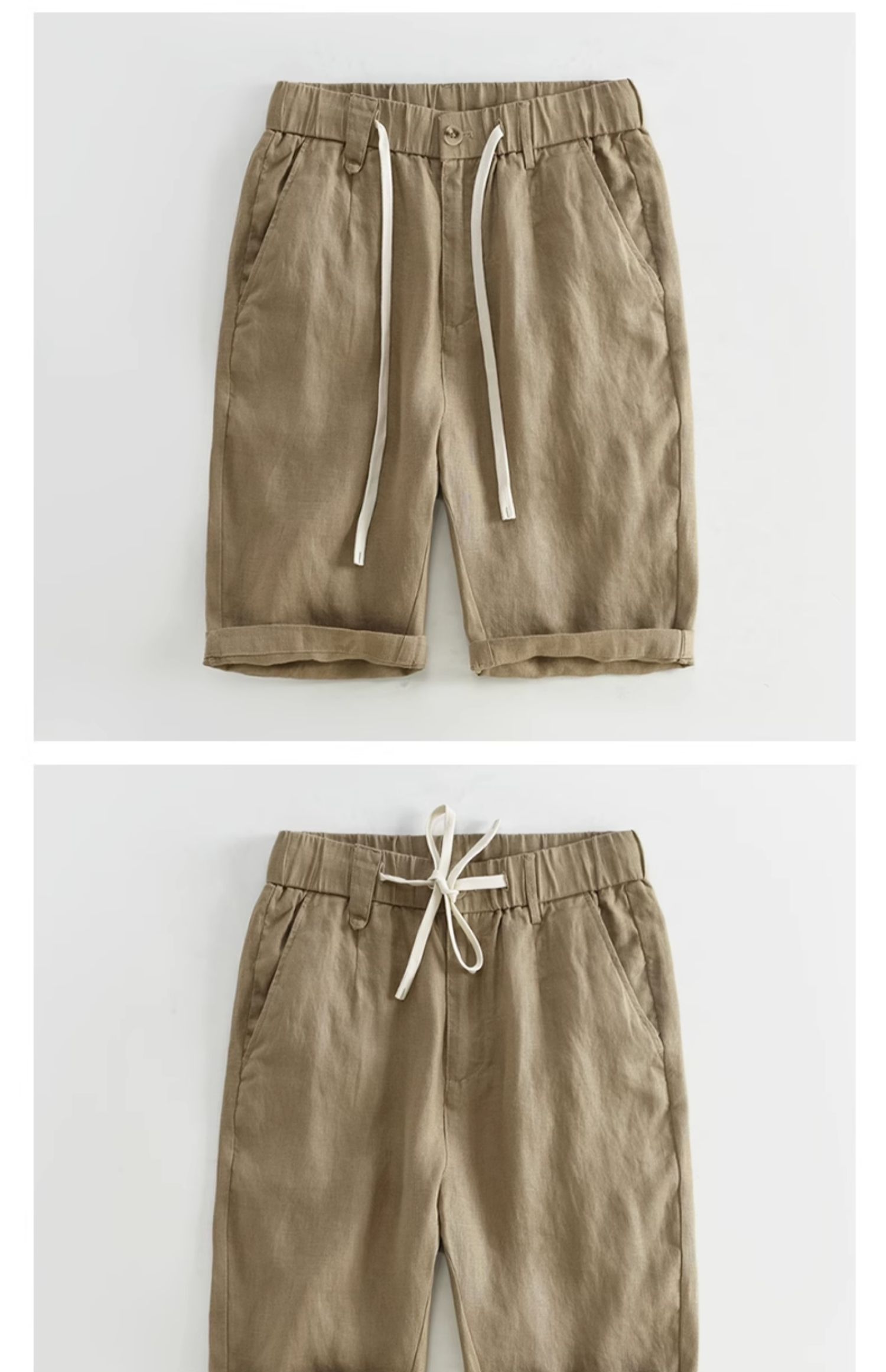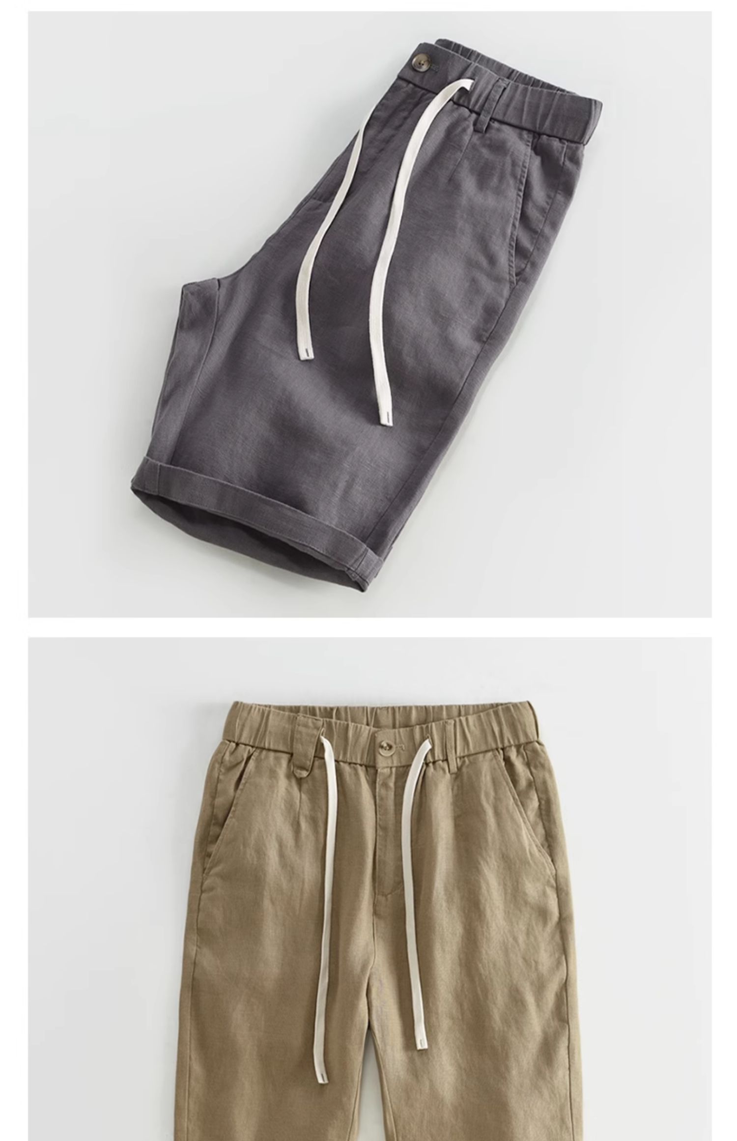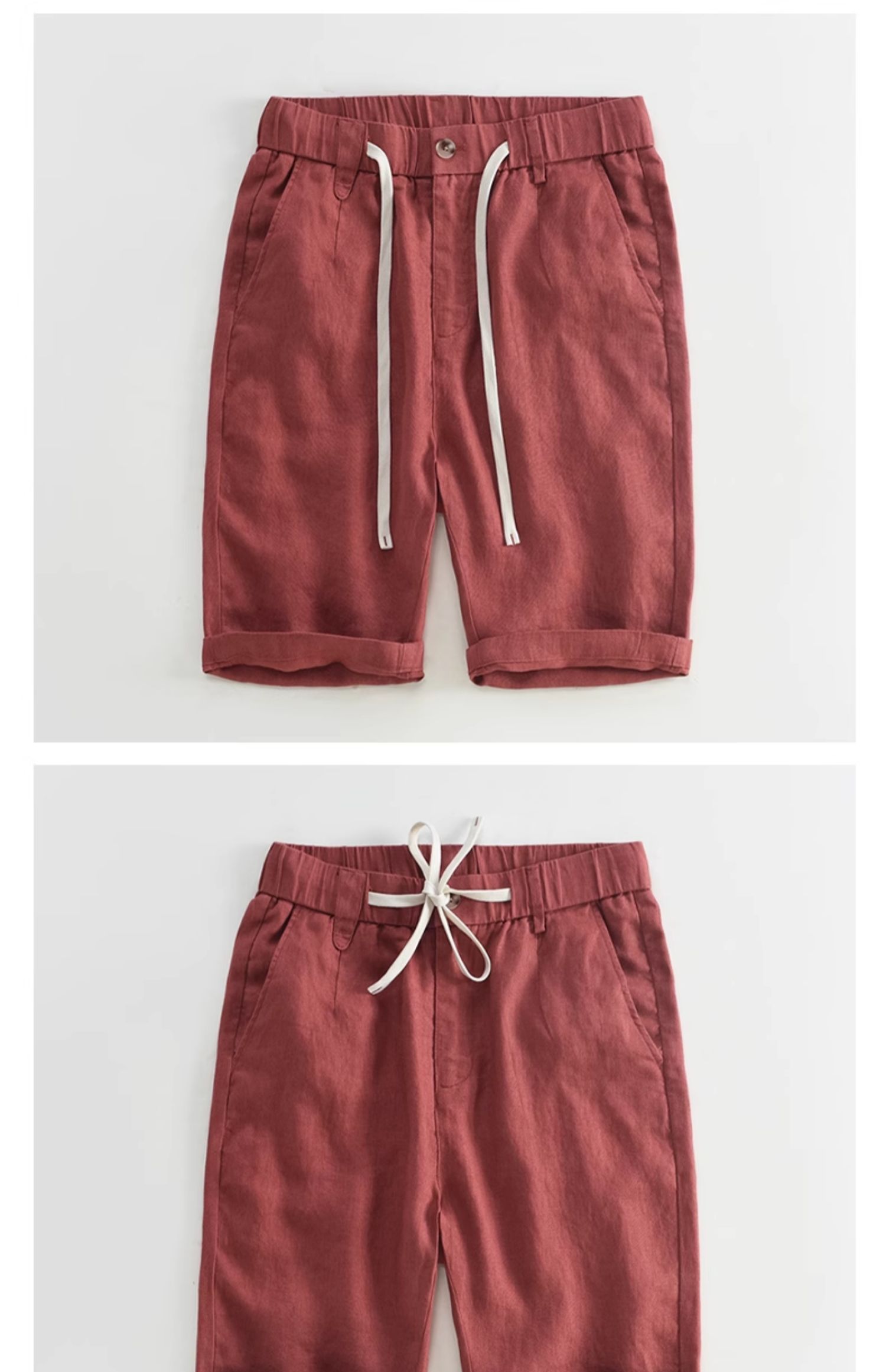汉絮2025夏季亚麻休闲短裤男款修身小直筒裤男纯色百搭沙滩五分裤