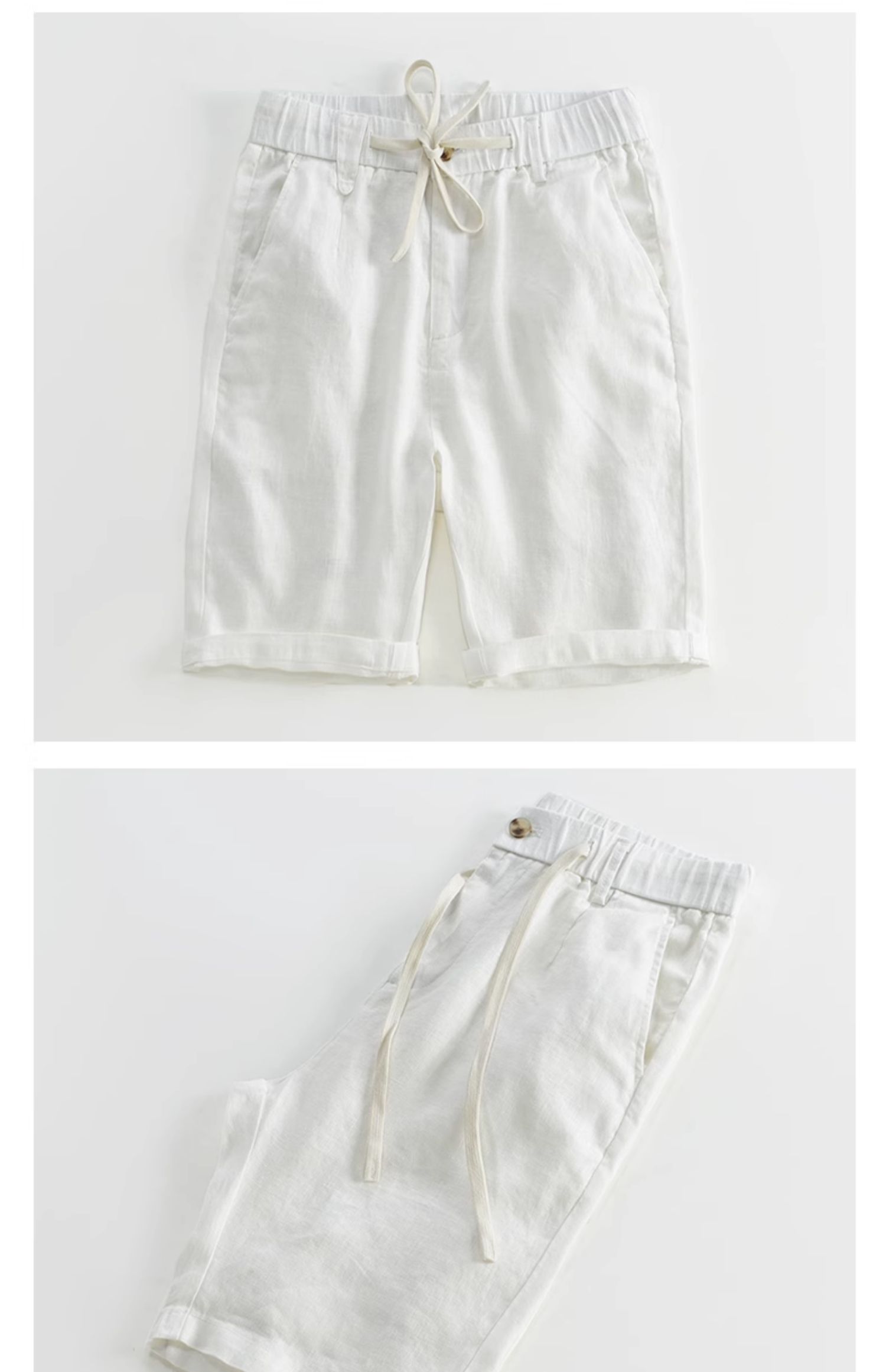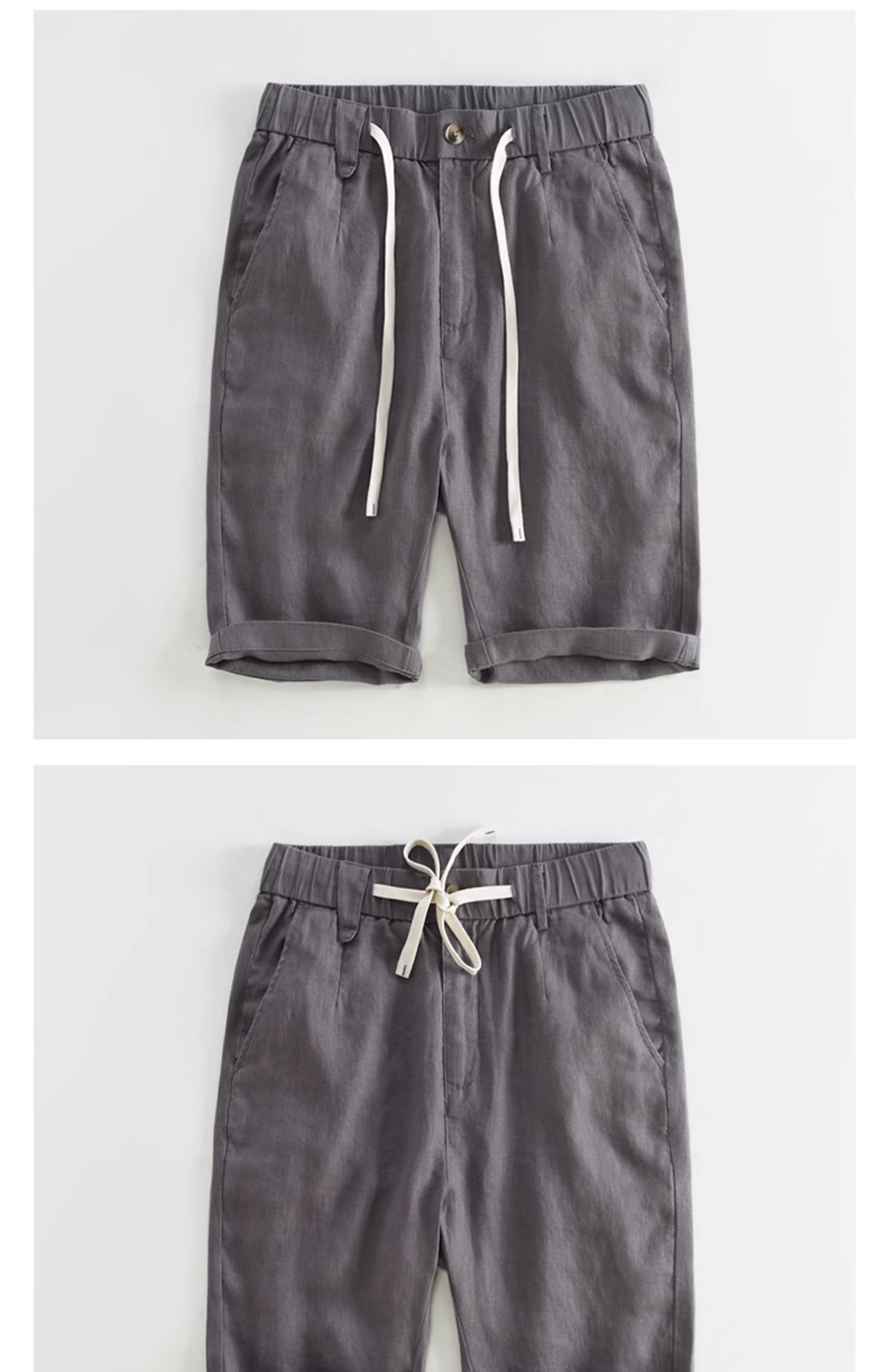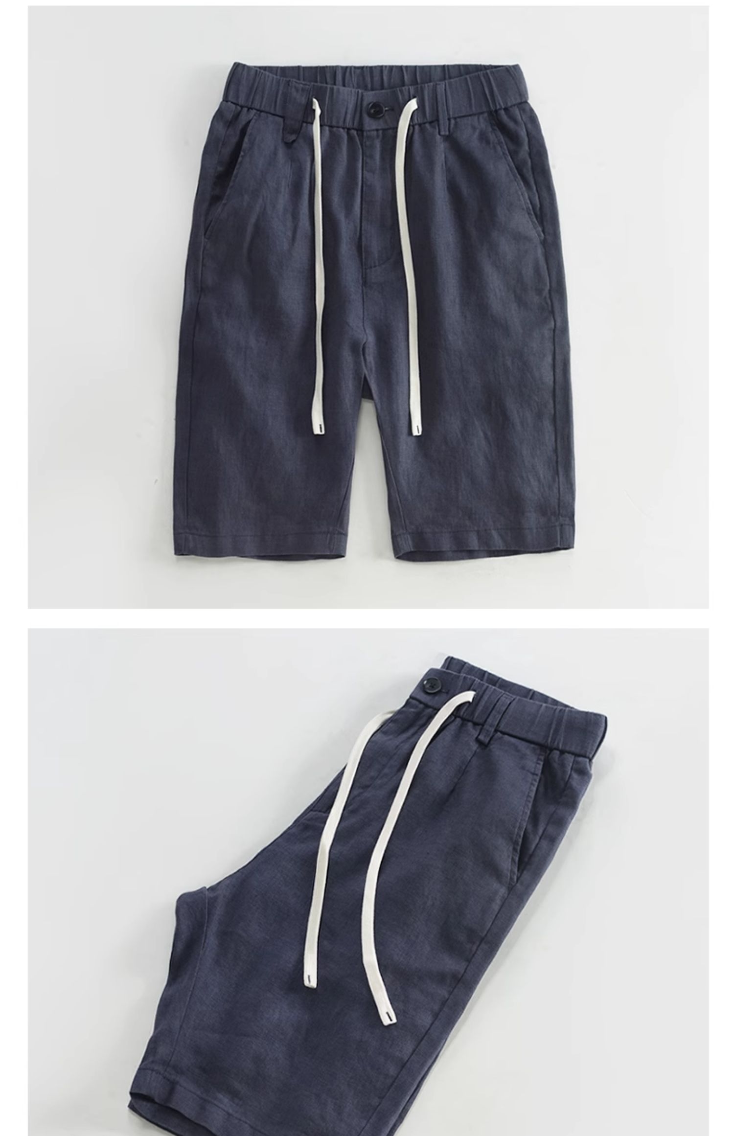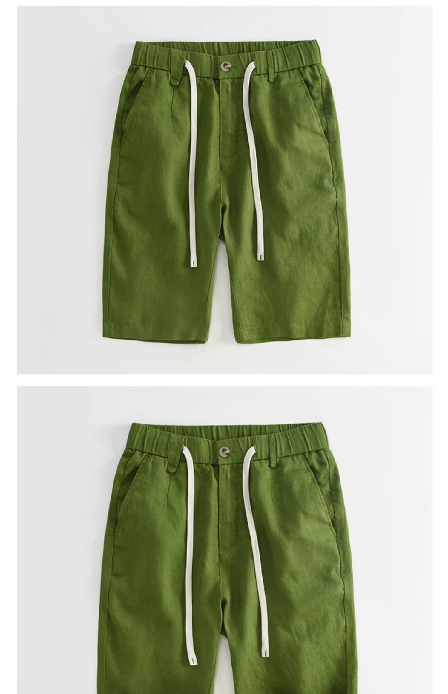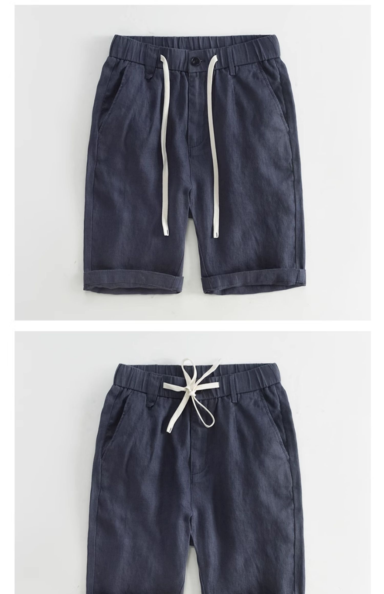 汉絮2025夏季亚麻休闲短裤男款修身小直筒裤男纯色百搭沙滩五分裤