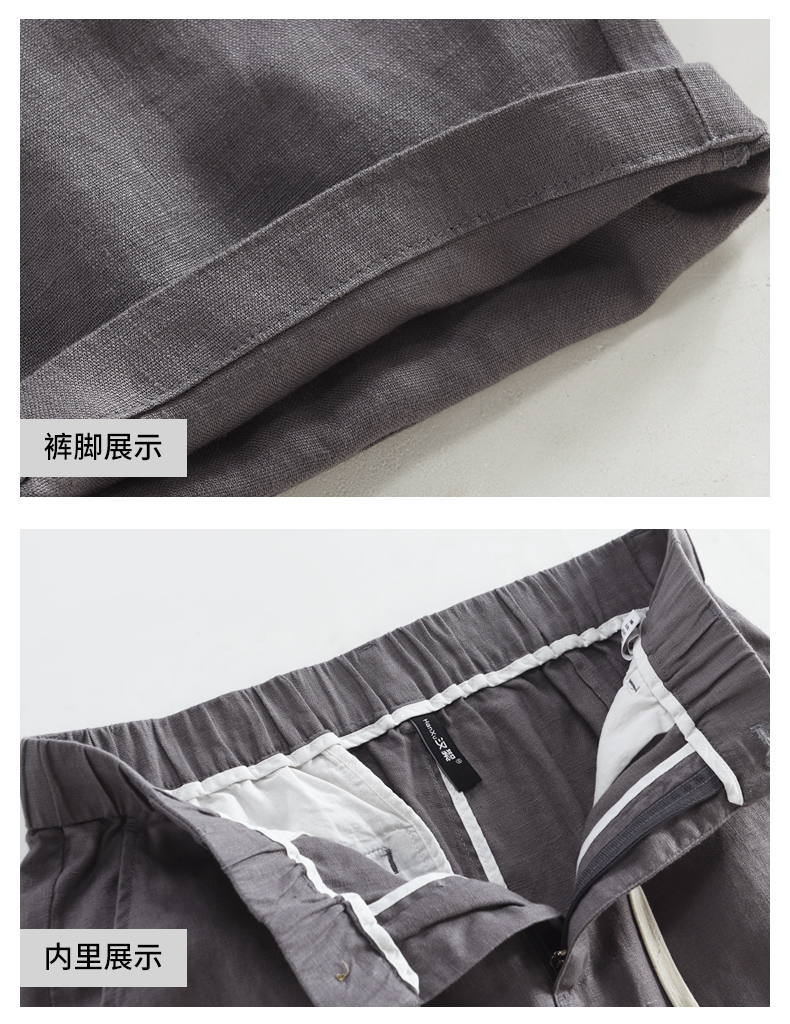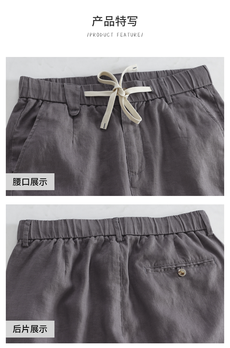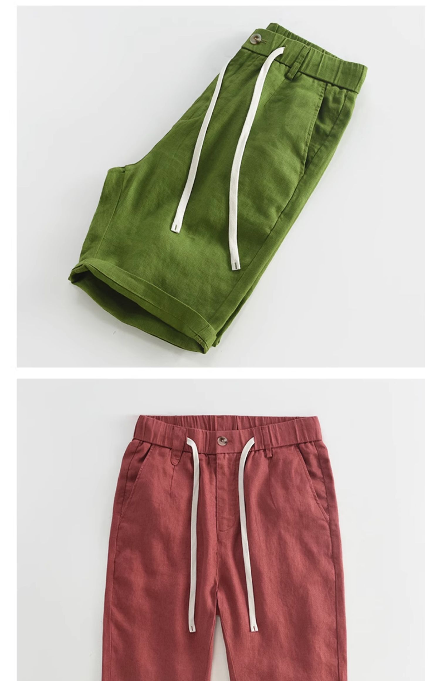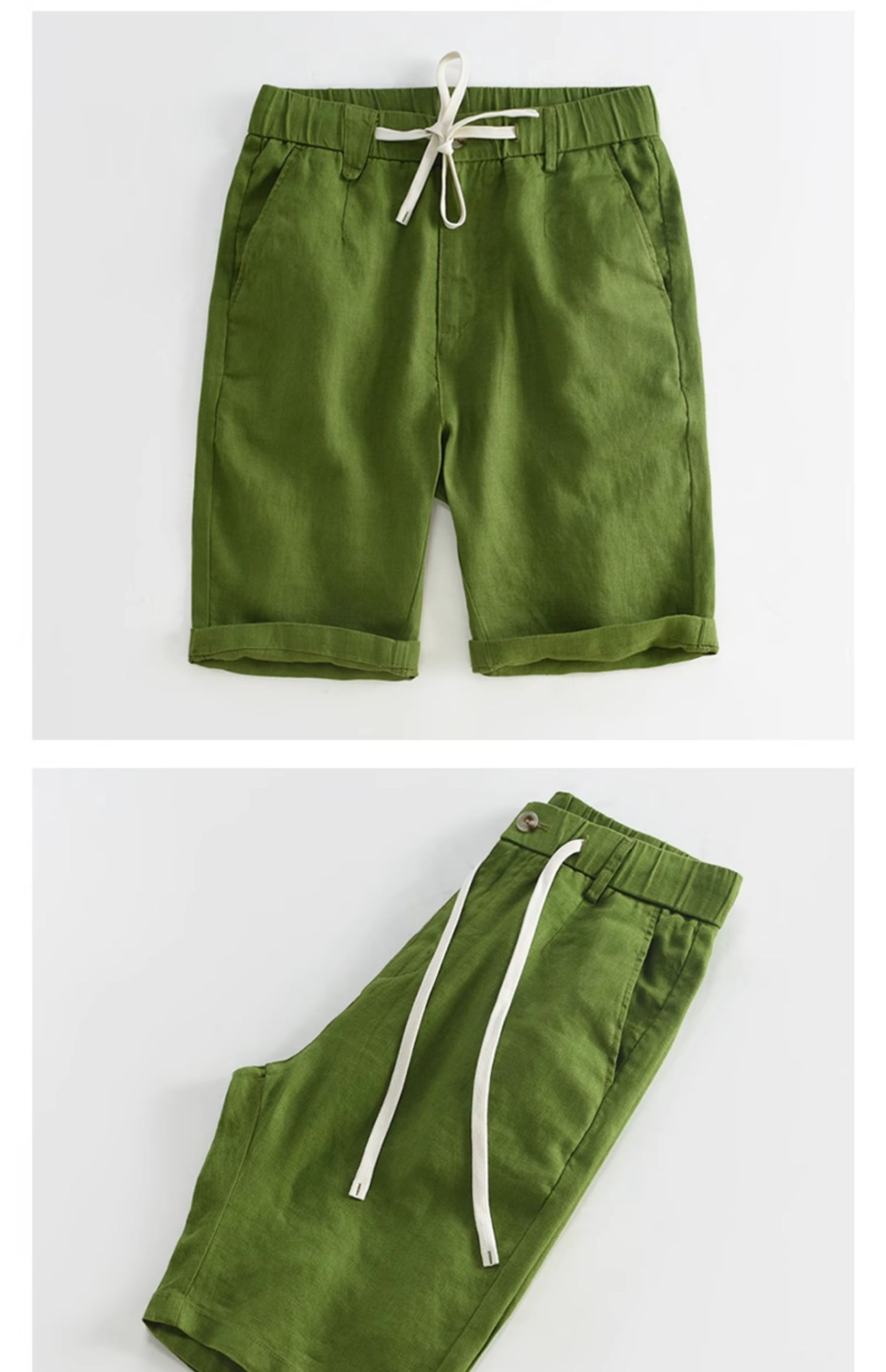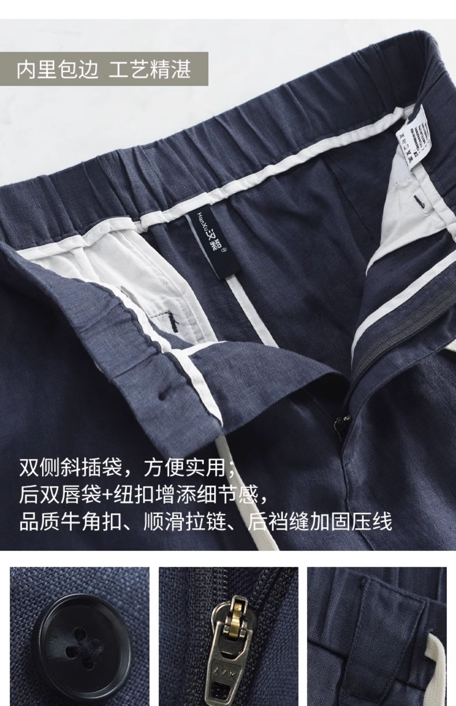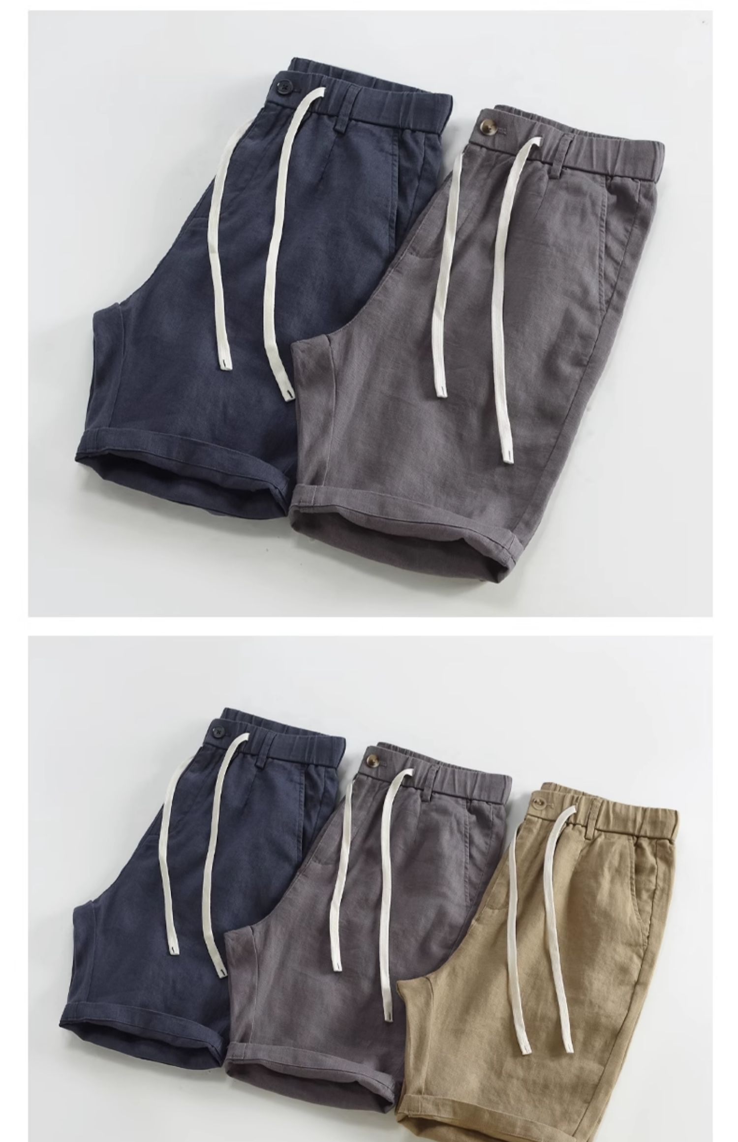 汉絮2025夏季亚麻休闲短裤男款修身小直筒裤男纯色百搭沙滩五分裤