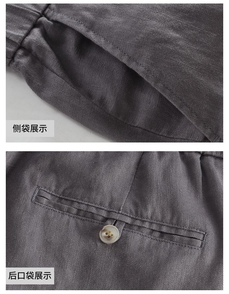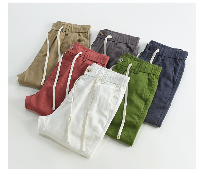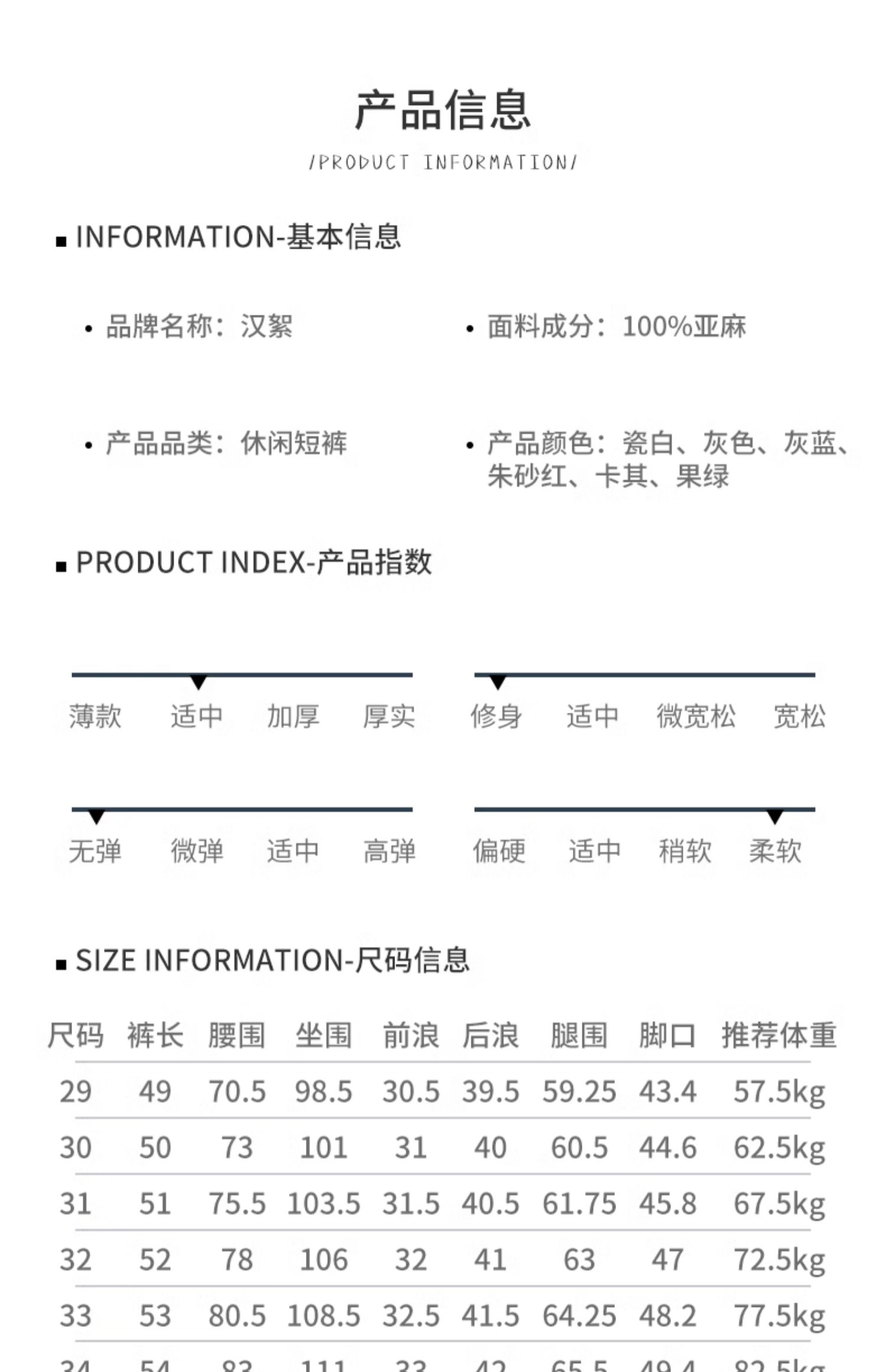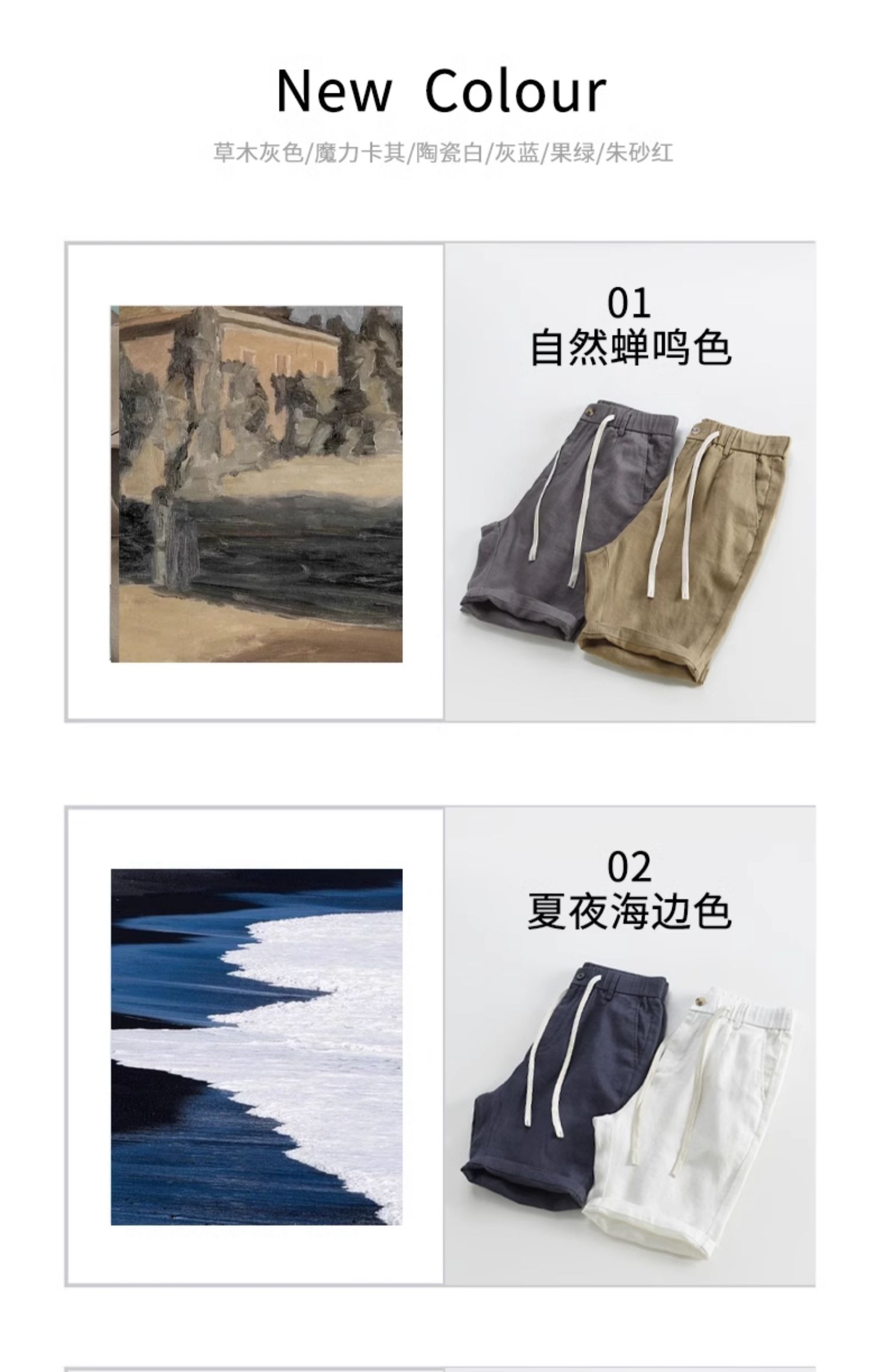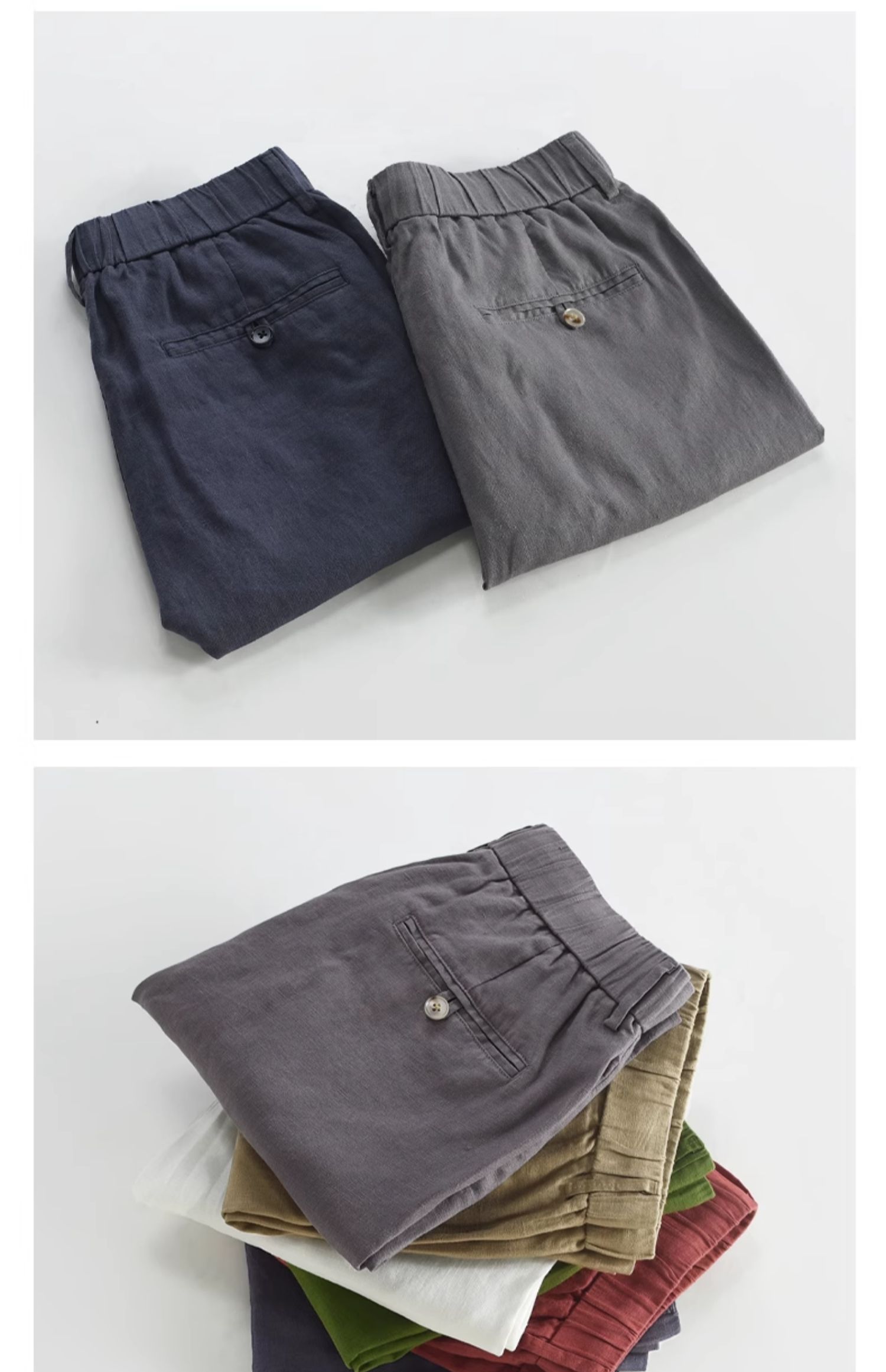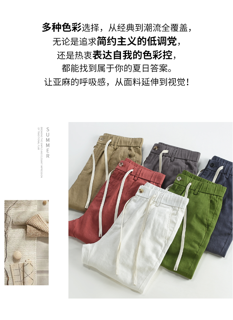 汉絮2025夏季亚麻休闲短裤男款修身小直筒裤男纯色百搭沙滩五分裤