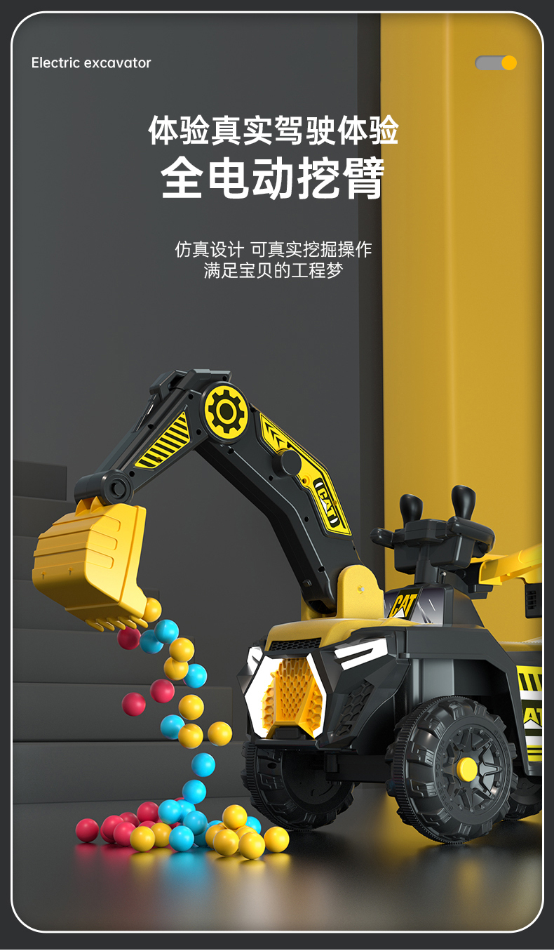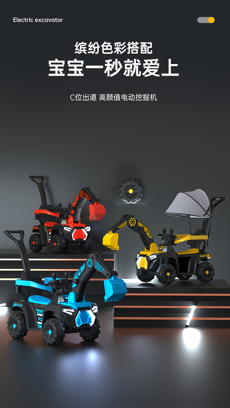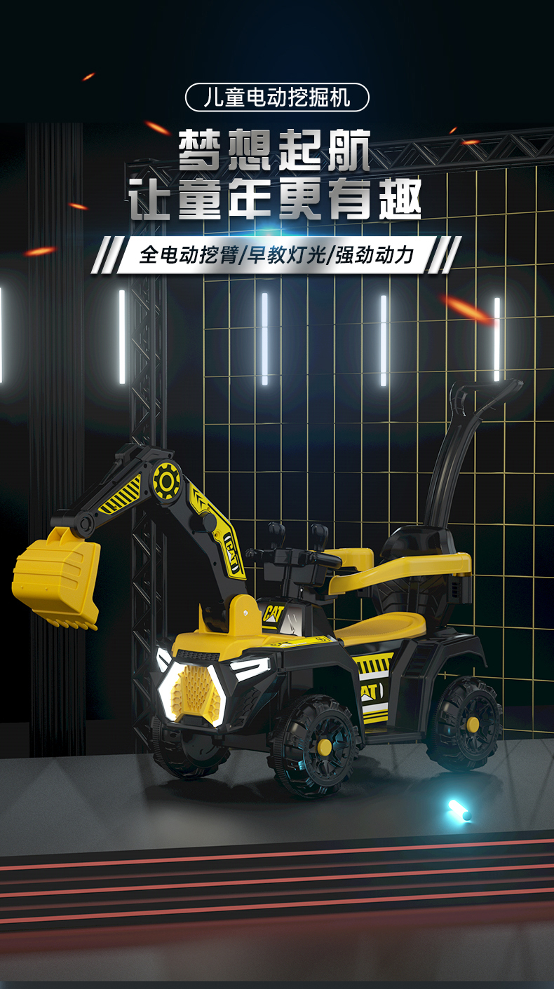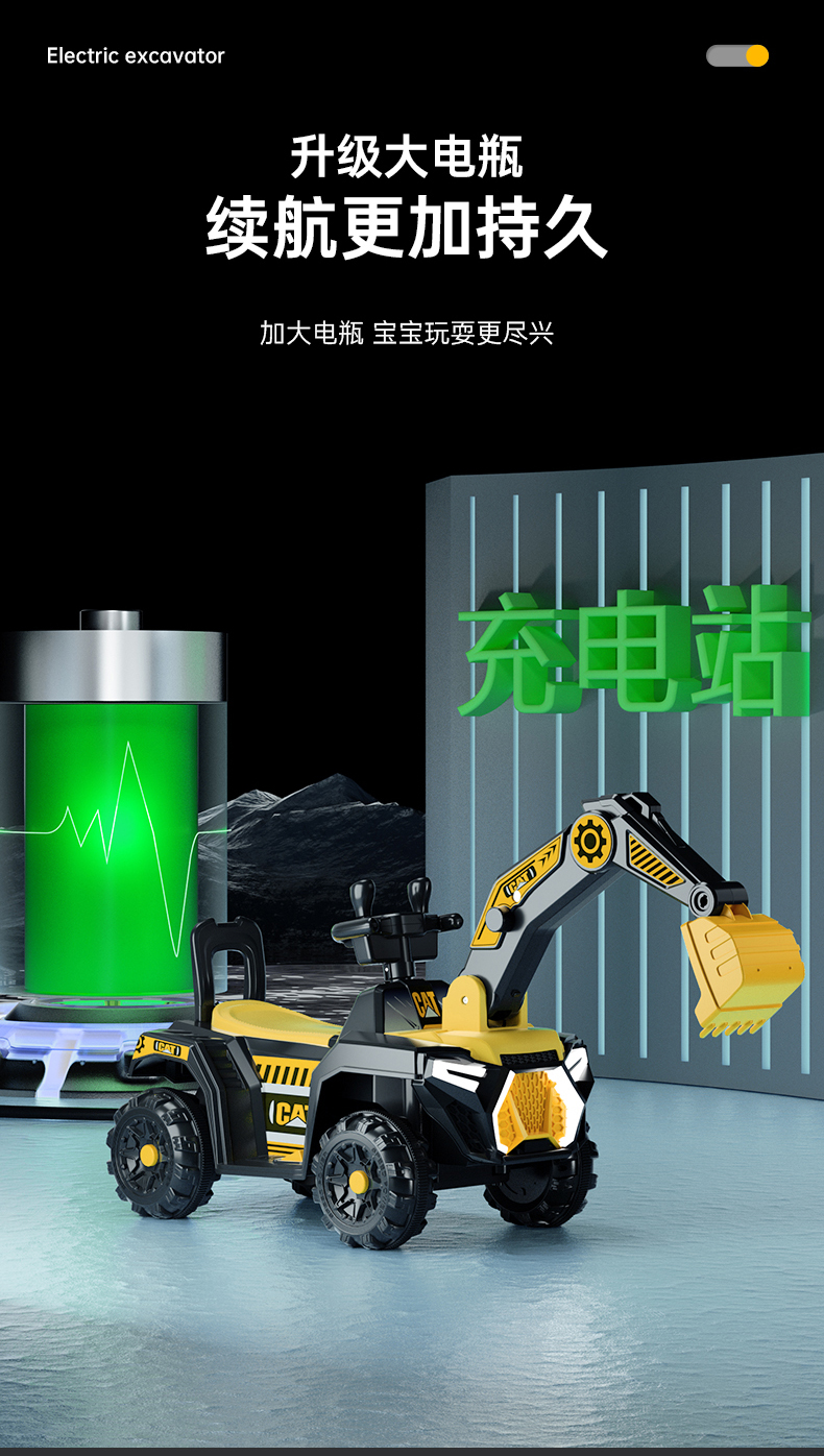 儿童电动挖掘机小孩可坐骑挖土机充电玩具车大号可骑遥控工程车男