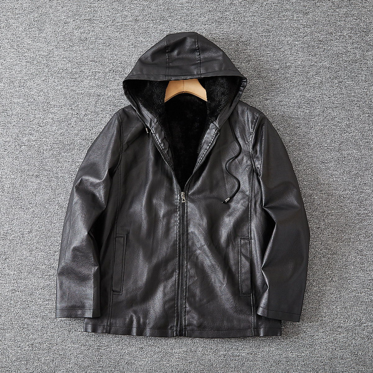 捡漏福利!内里加绒加厚!外贸尾货男士秋冬休闲连帽皮衣夹克外套