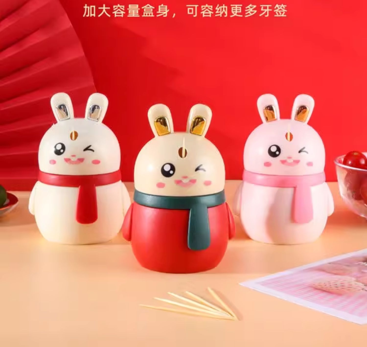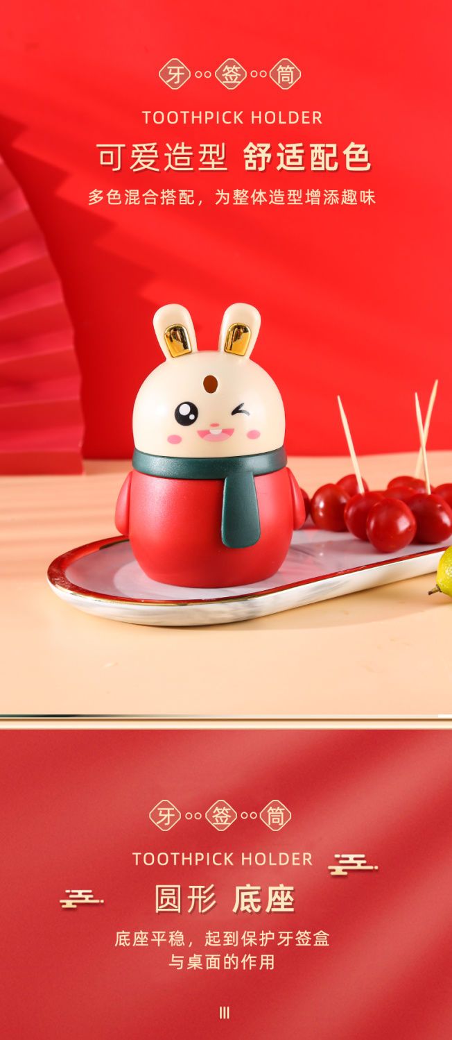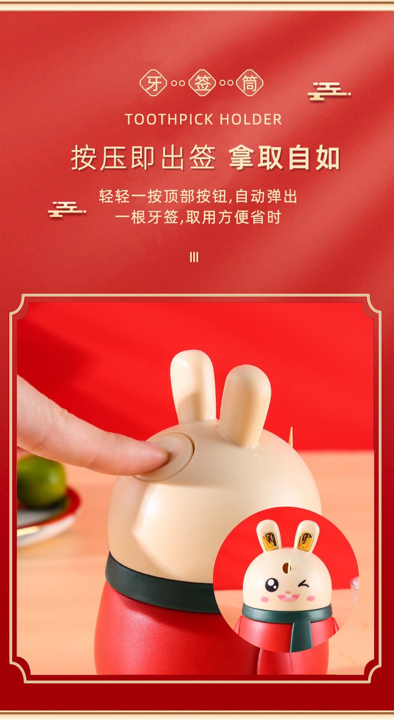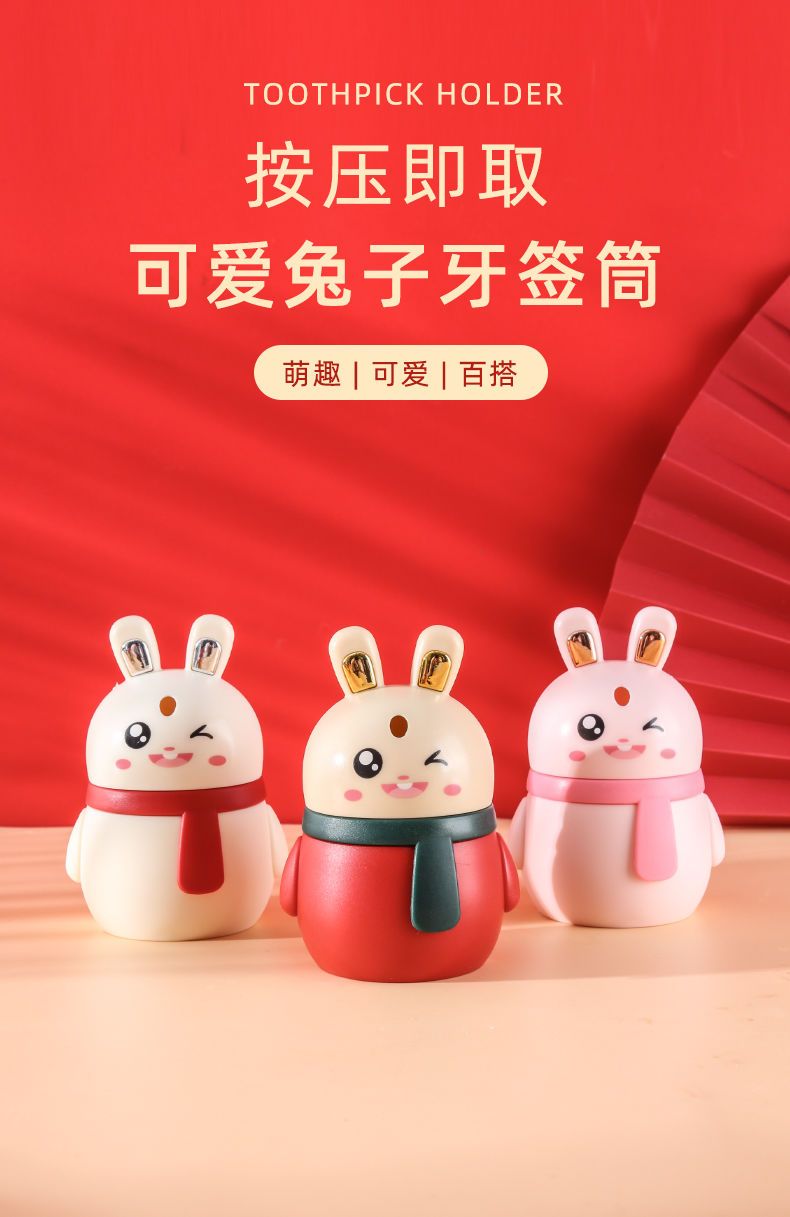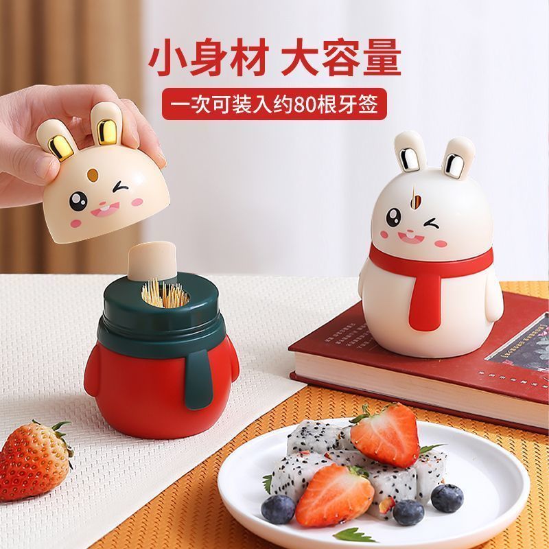 小兔子牙签筒创意自动牙签盒家用卡通可爱按压式牙签牙签瓶收纳