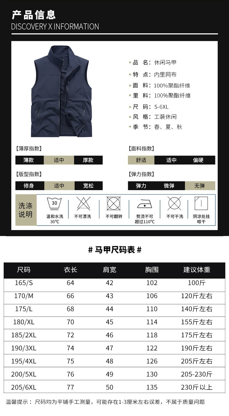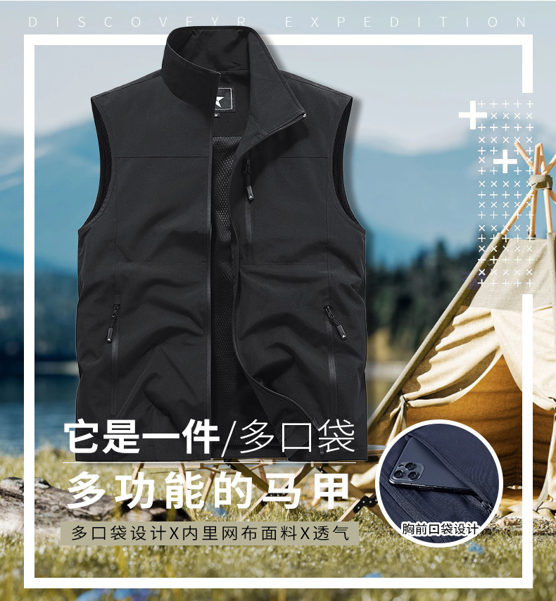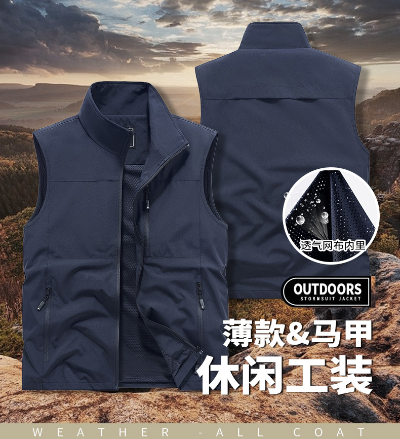 春秋休闲马甲薄款背心简约坎肩男女同款大码立领运动旅游无袖外套