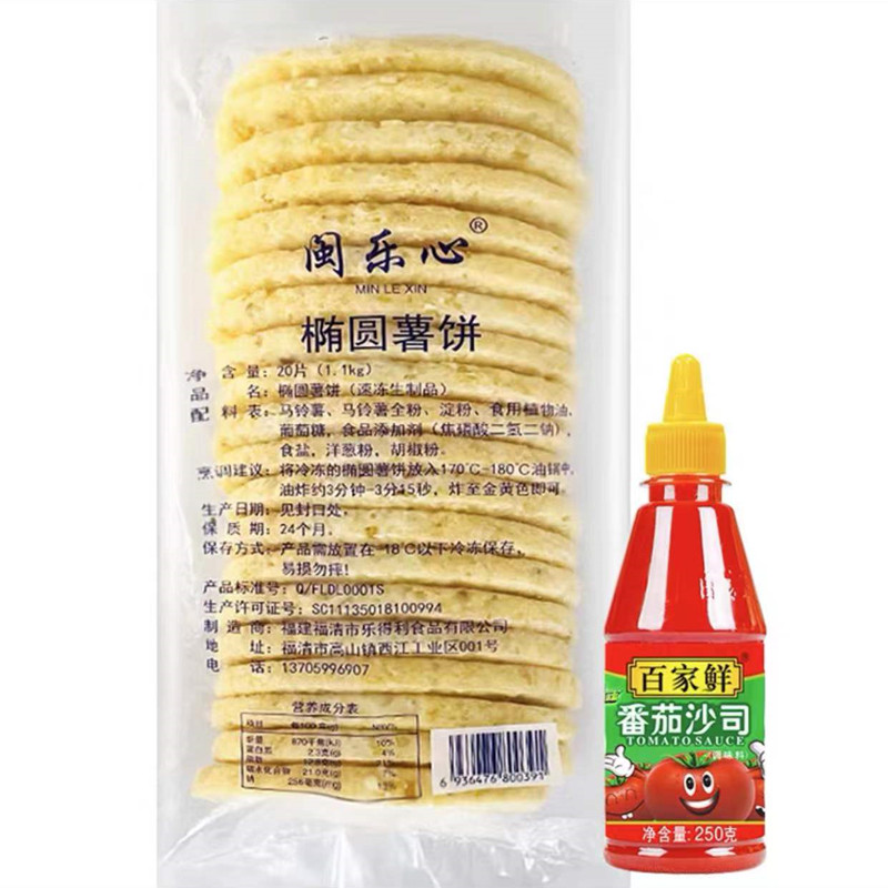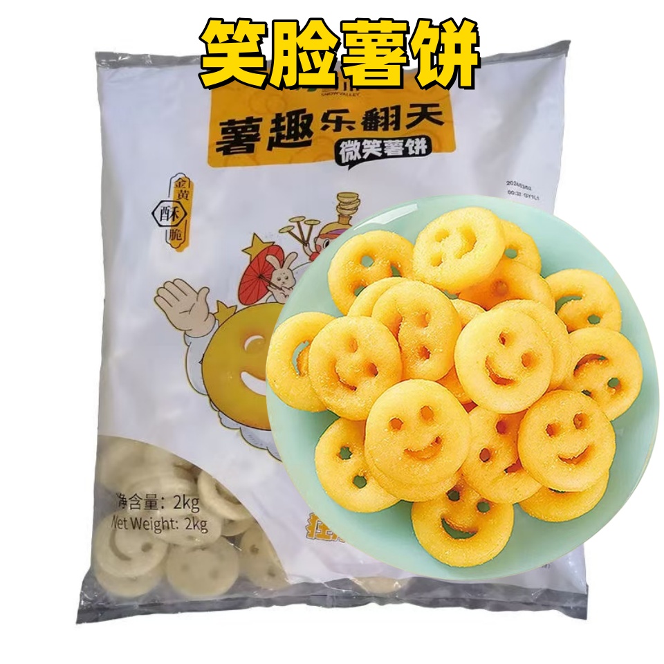 雪川笑脸饼美椭圆薯饼商用冷冻半成品烤箱薯条土豆饼空气炸锅食材