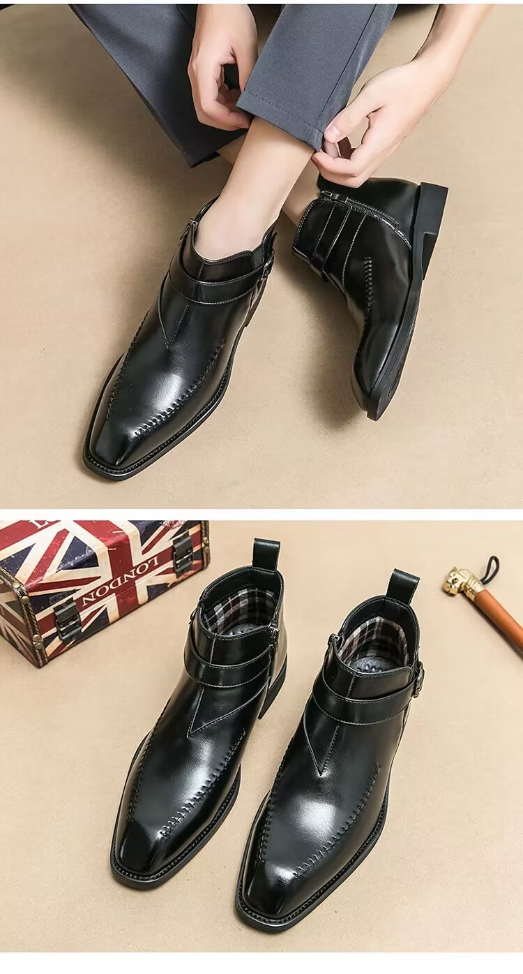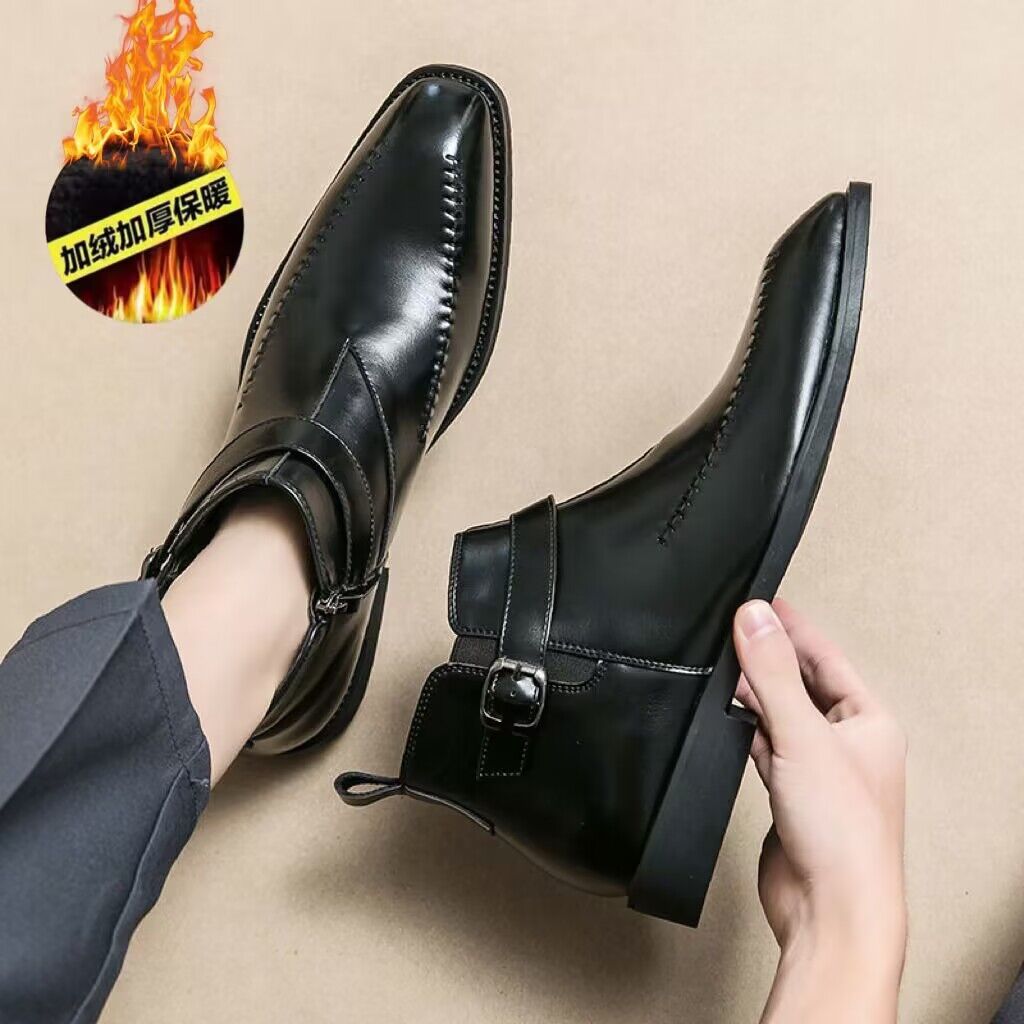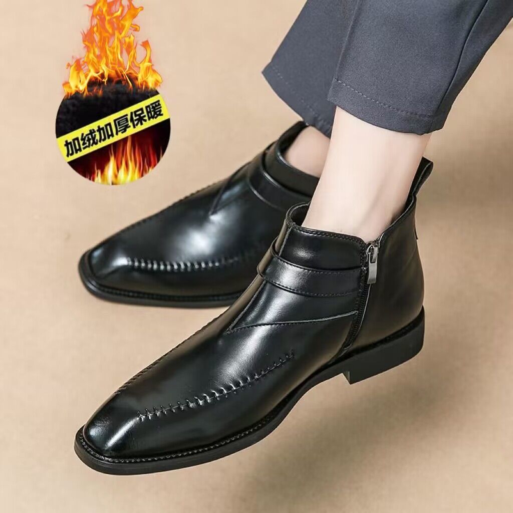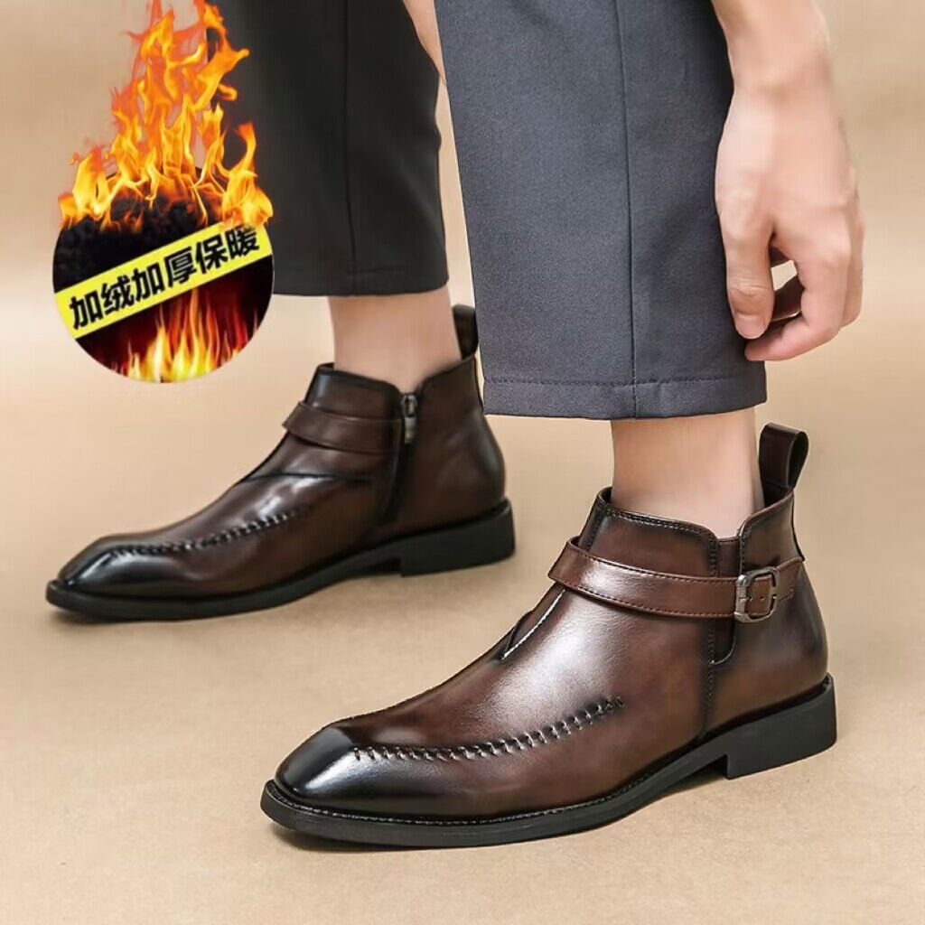 加绒马丁靴男真皮英伦尖头短靴高帮皮鞋切尔西皮靴子商务休闲男鞋