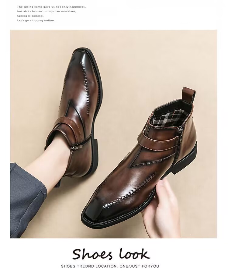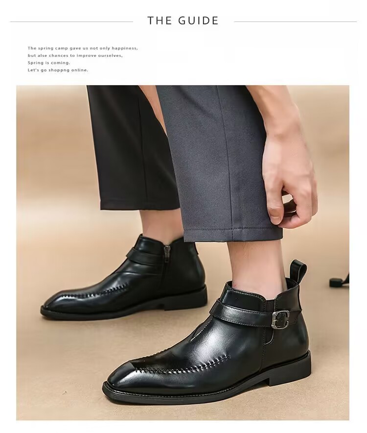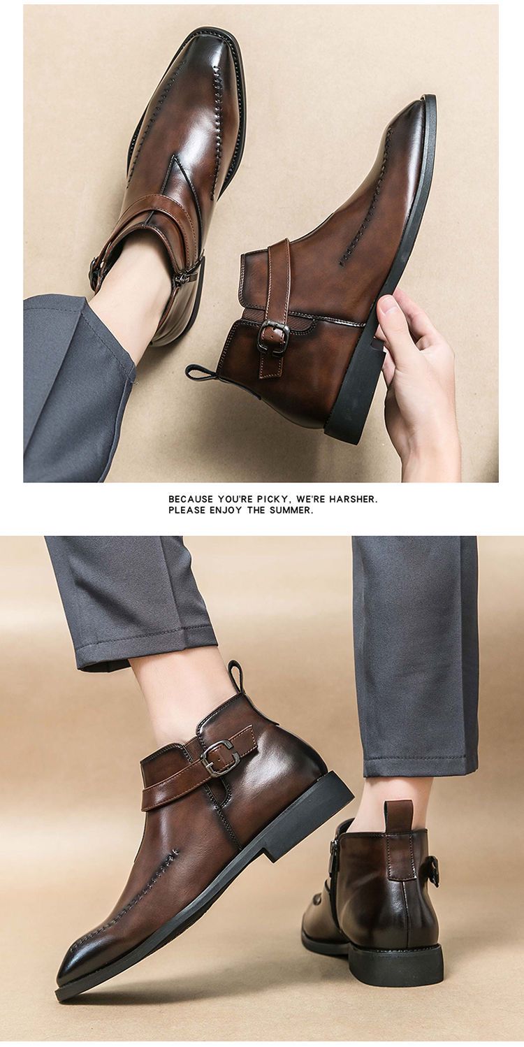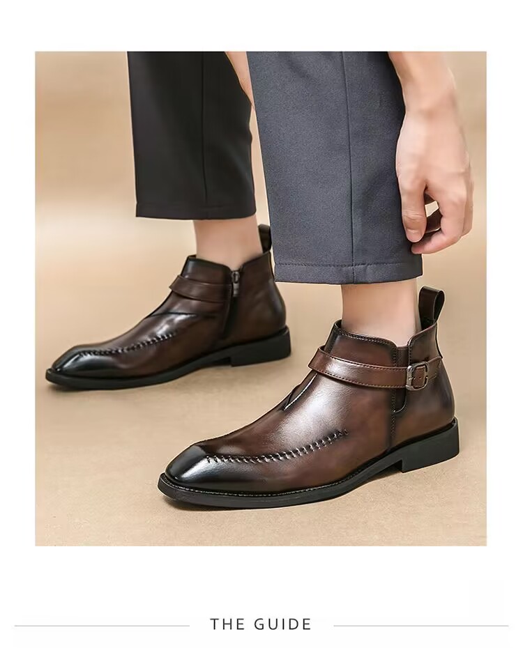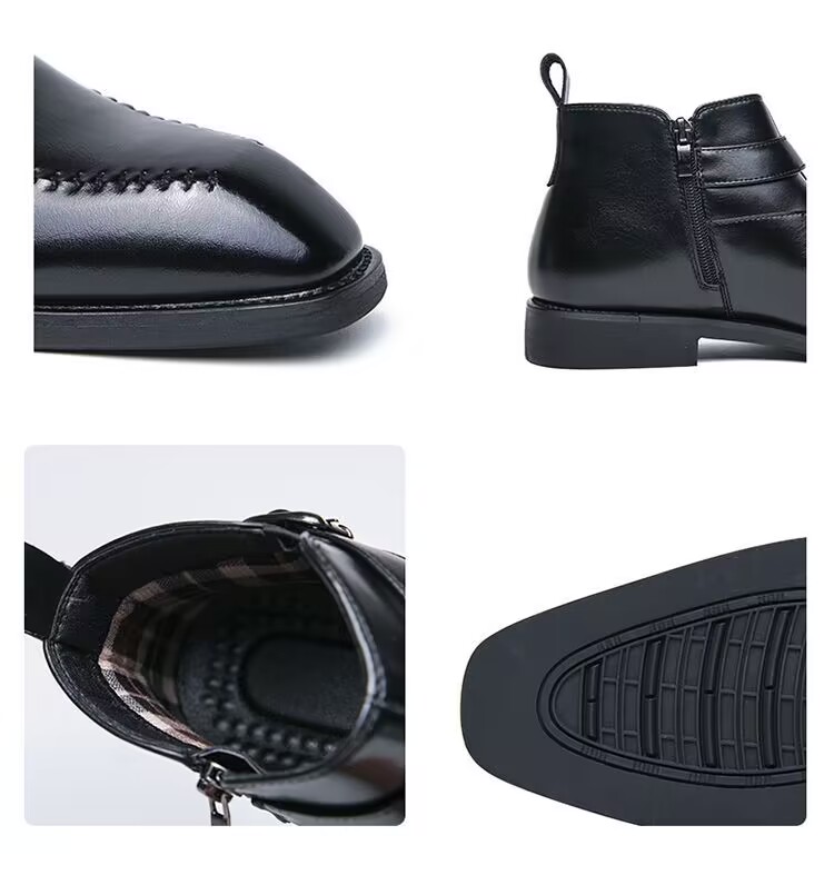 加绒马丁靴男真皮英伦尖头短靴高帮皮鞋切尔西皮靴子商务休闲男鞋