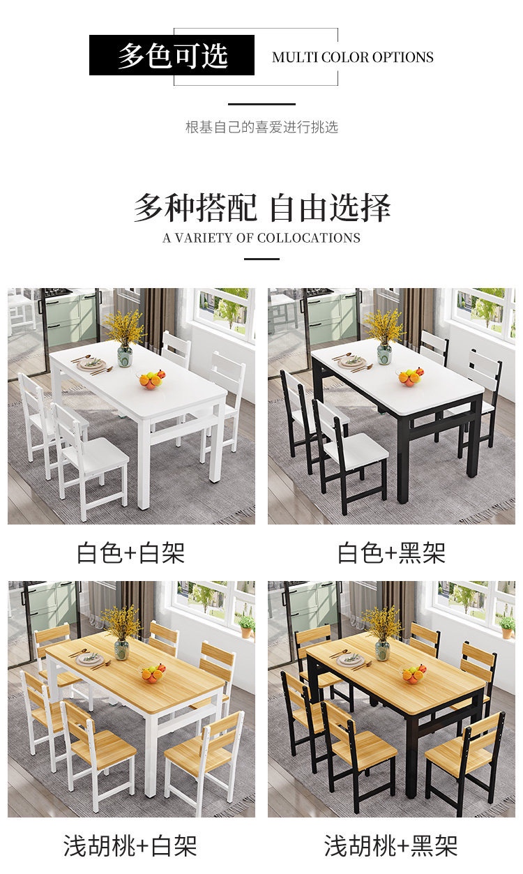 简约餐桌椅组合小户型现代长方形快餐饭店家用吃饭桌简易4人6桌椅