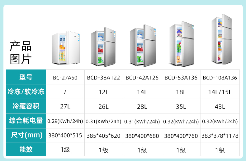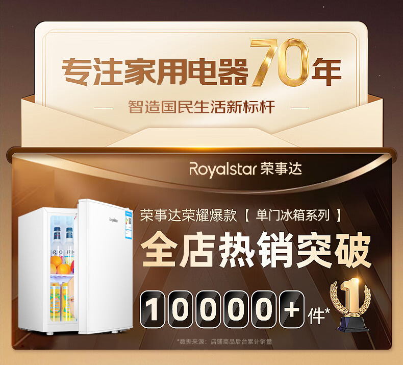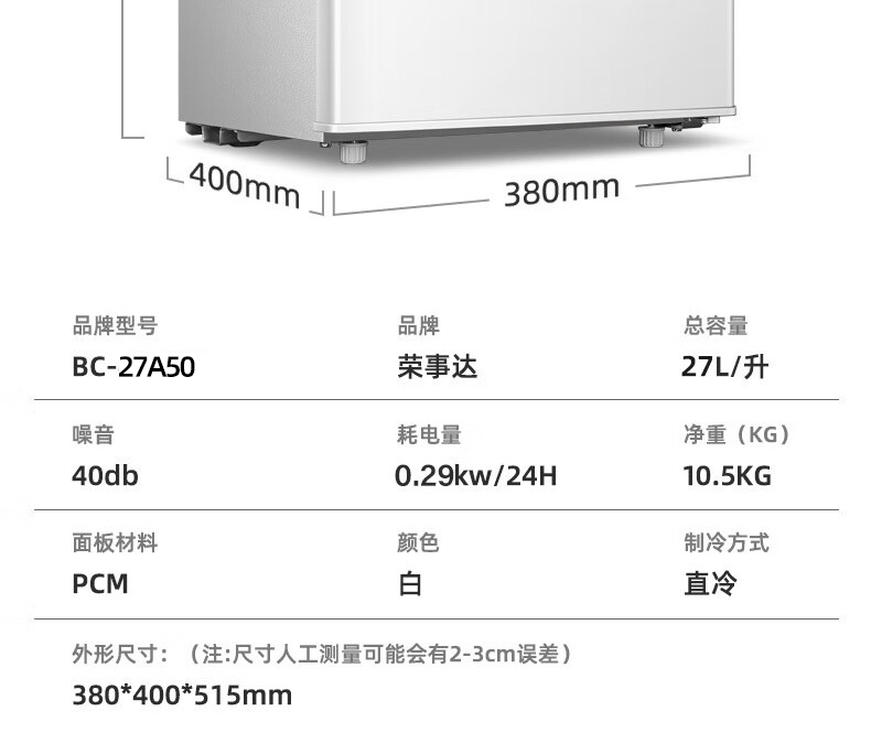 荣事达单门小冰箱家用小型租房宿舍迷你一级节能白色冷藏保鲜冰箱