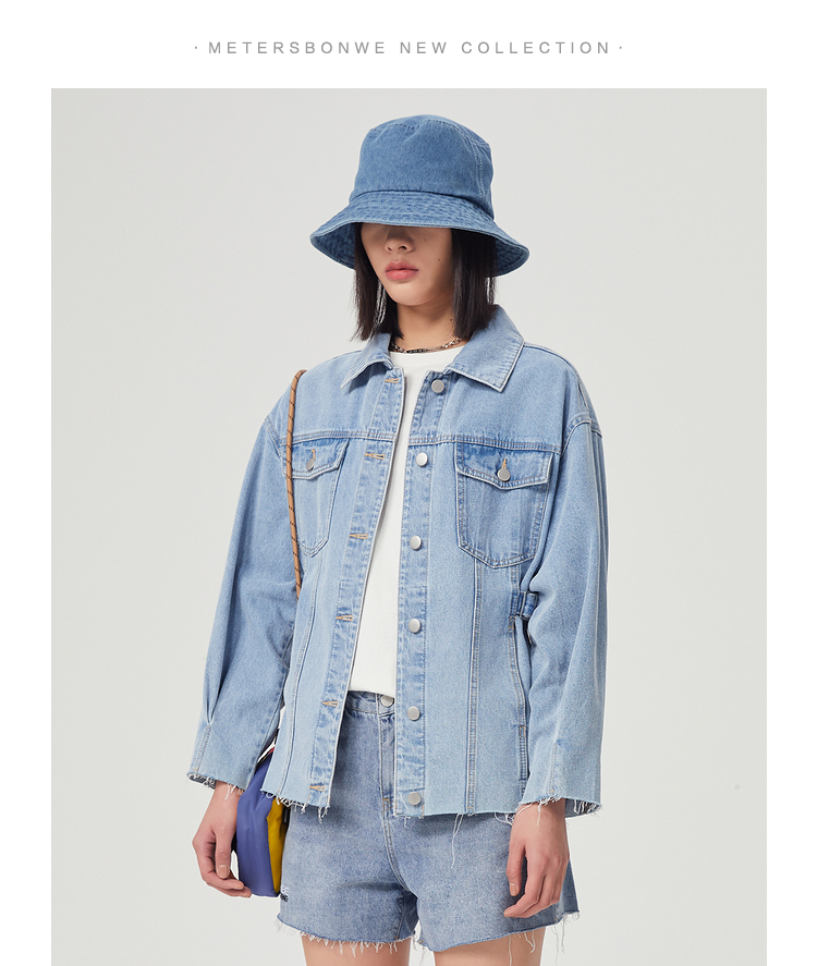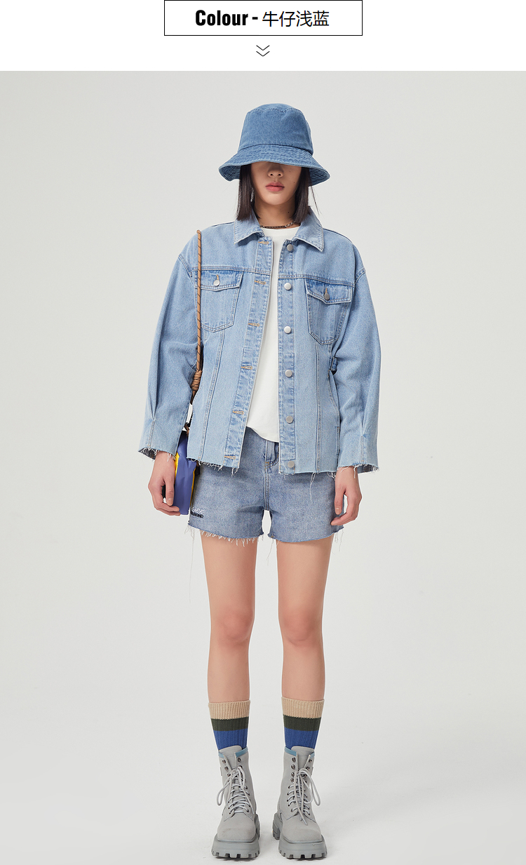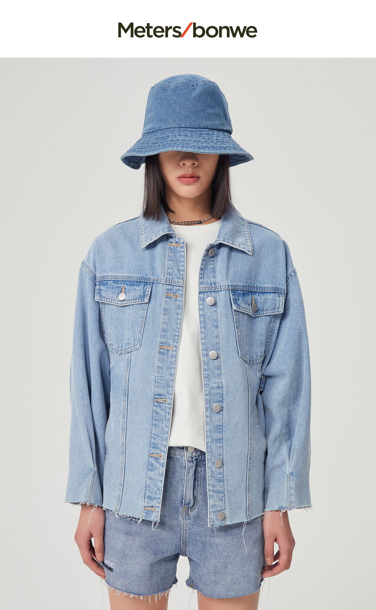 美特斯邦威牛仔外套女宽松潮流春秋季时尚落肩廓形牛仔夹克上衣女