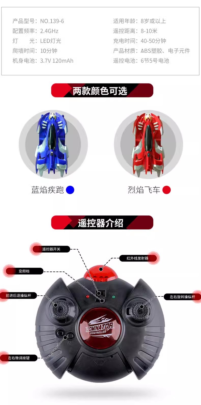儿童爬墙车遥控汽车玩具6充电10岁男孩5四驱8赛车12电动7特技7小3