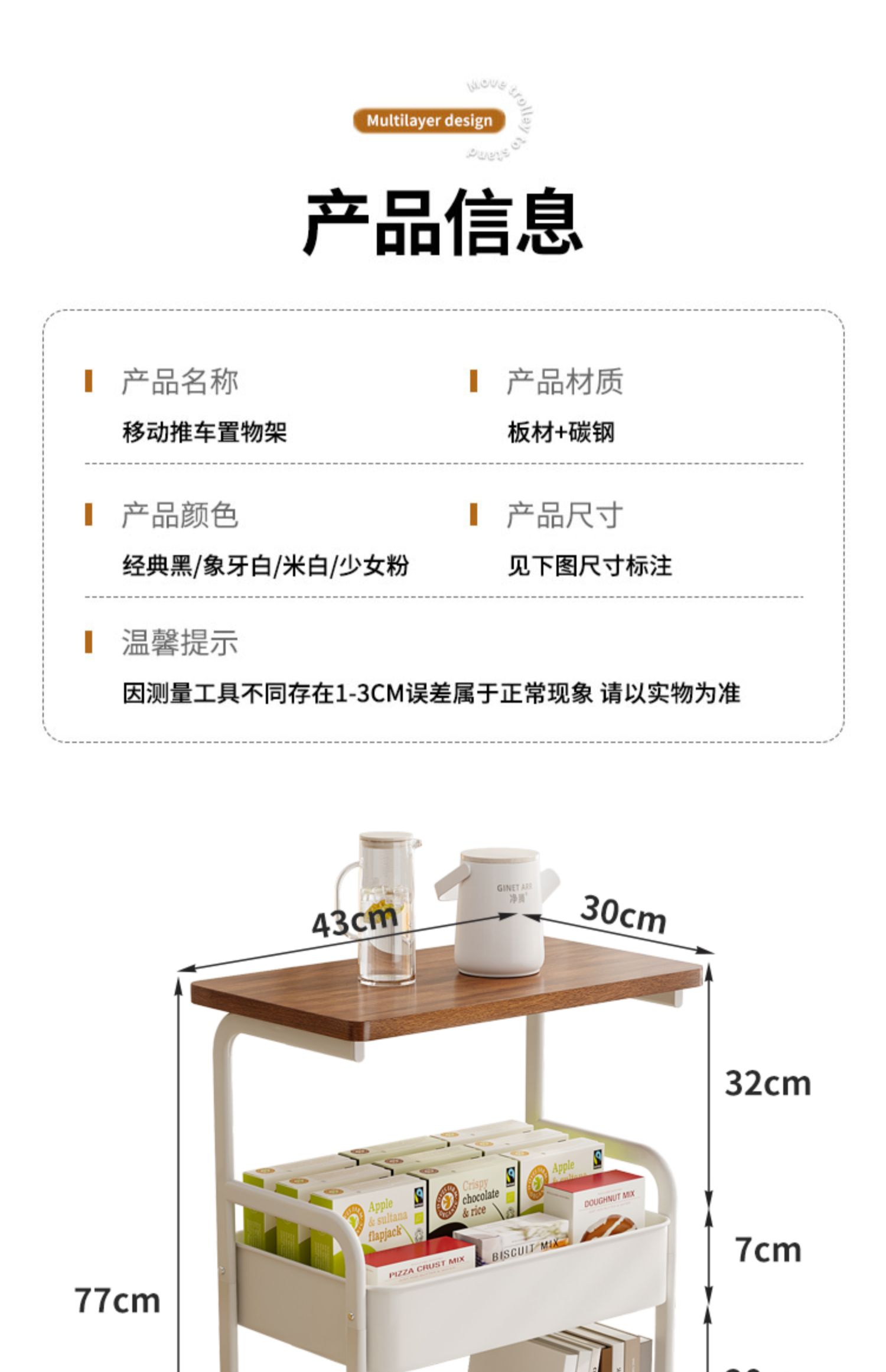 可移动小推车沙发边几床边置物架高茶几桌子客厅零食出租屋床头柜