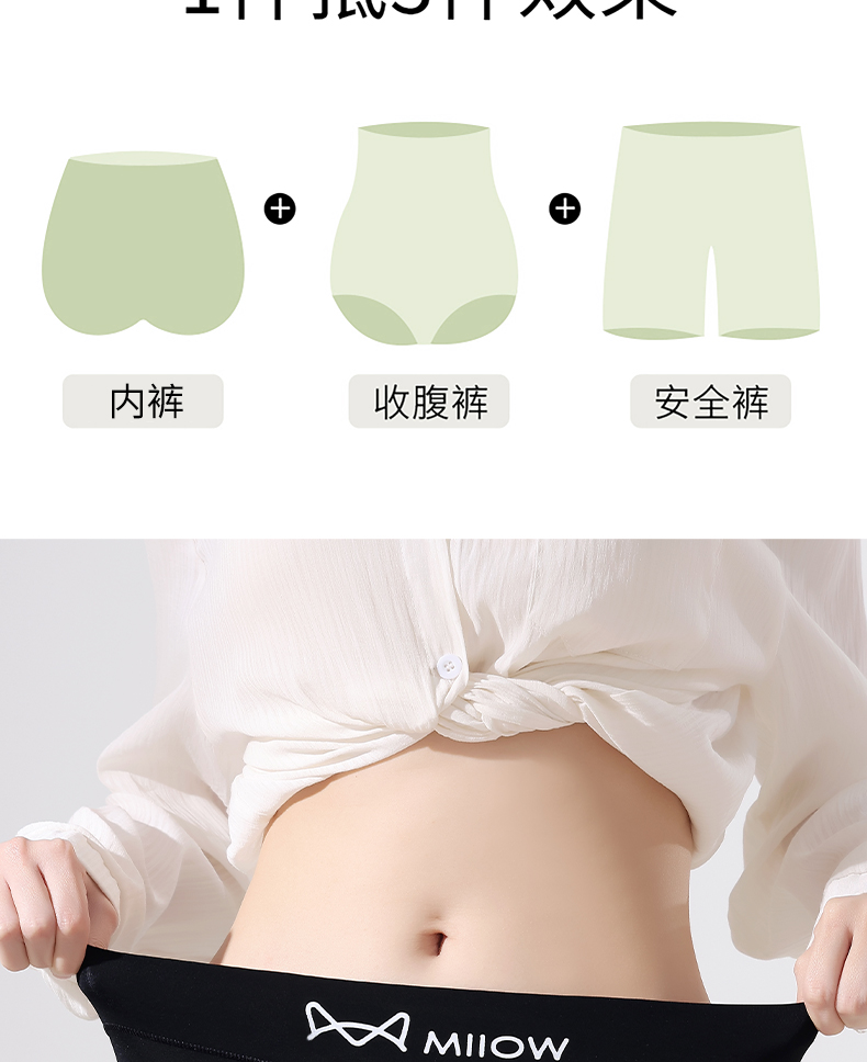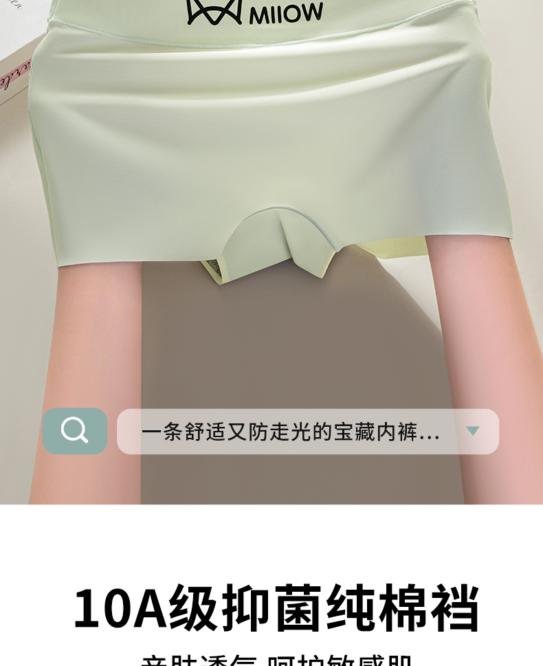 猫人冰丝平角内裤女无痕2025新款10A抑菌纯棉裆透气防走光安全裤