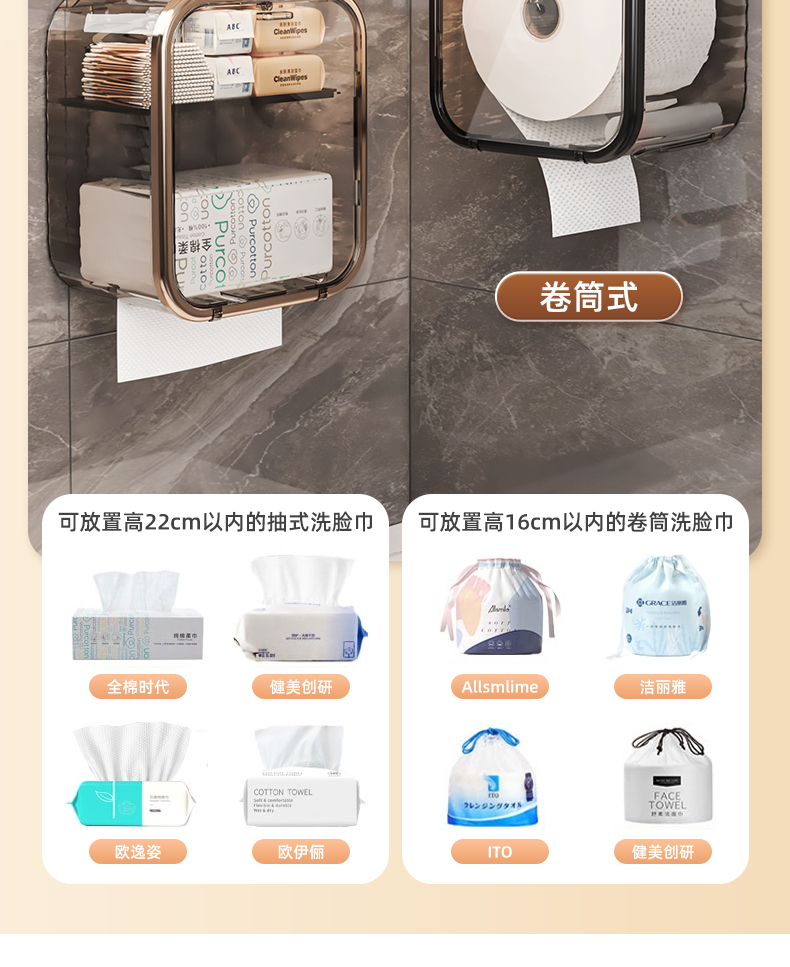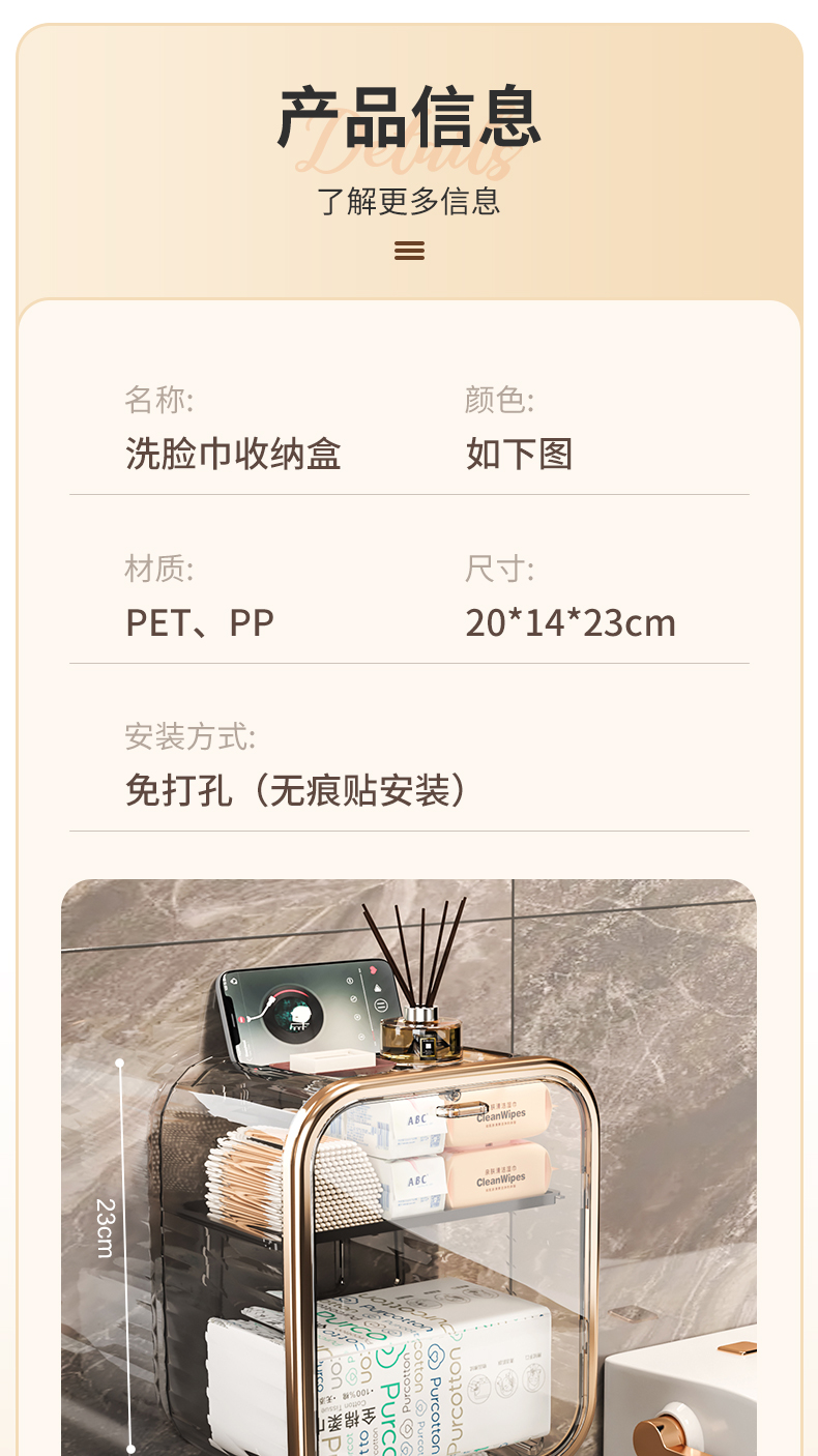 洗脸巾收纳盒壁挂一次性洁面巾收纳架子卫生间面巾纸置物架免打孔