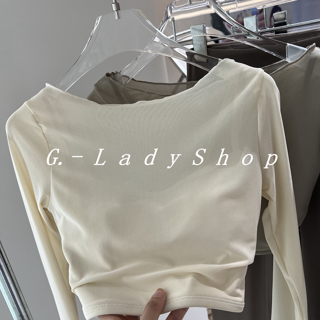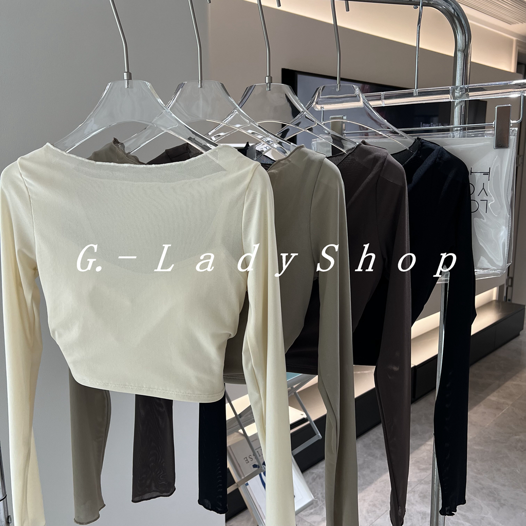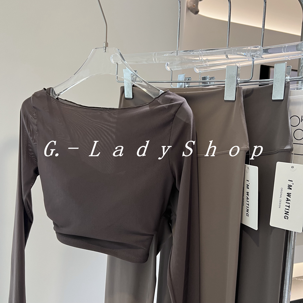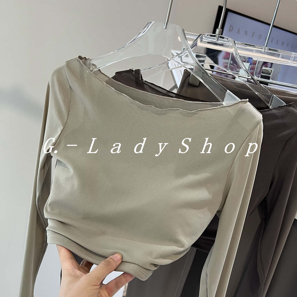 随便穿都好看的一字领假两件网纱运动T恤 带胸垫短款露脐瑜伽上衣