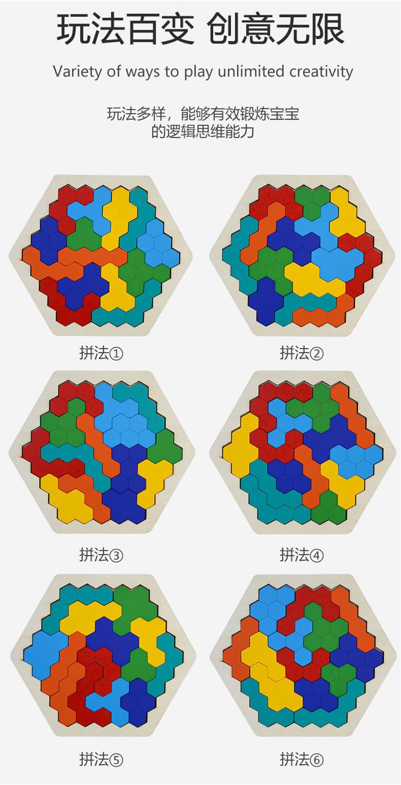 儿童木制智玩具拼板蜂窝式幼儿园大班小学生动手桌面玩具百变拼图