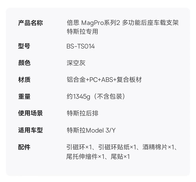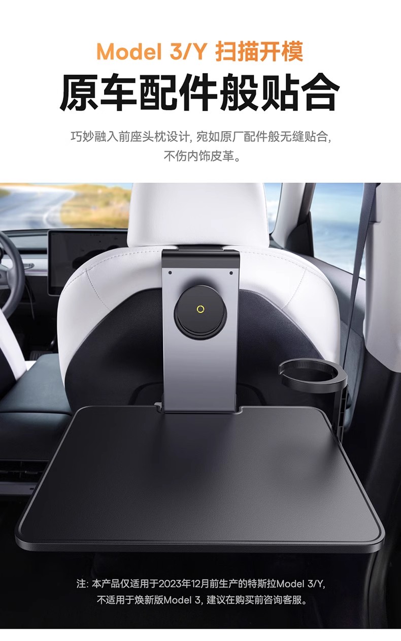 倍思适用特斯拉ModelY/3车载后排座小桌板折叠电脑桌装饰配件正品