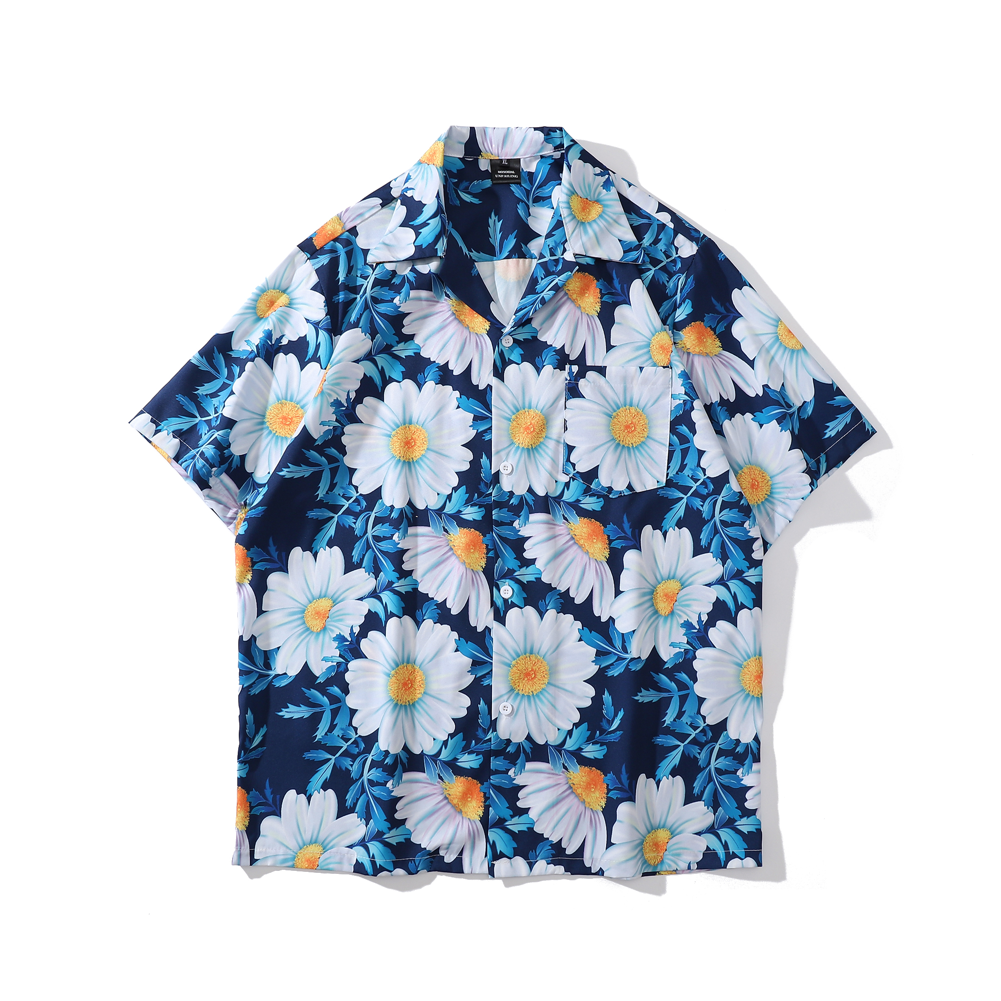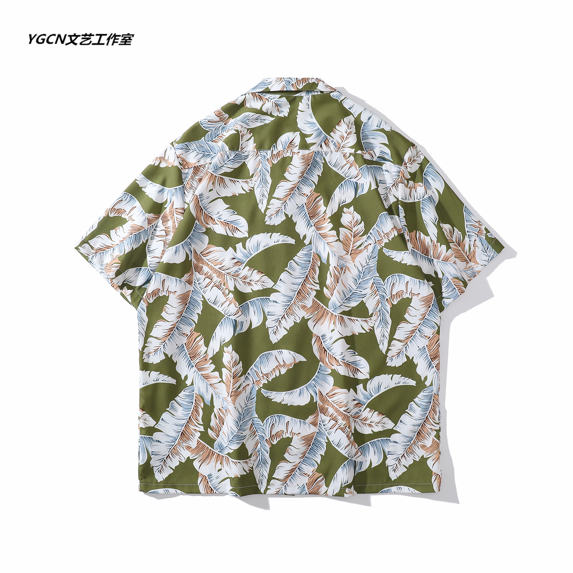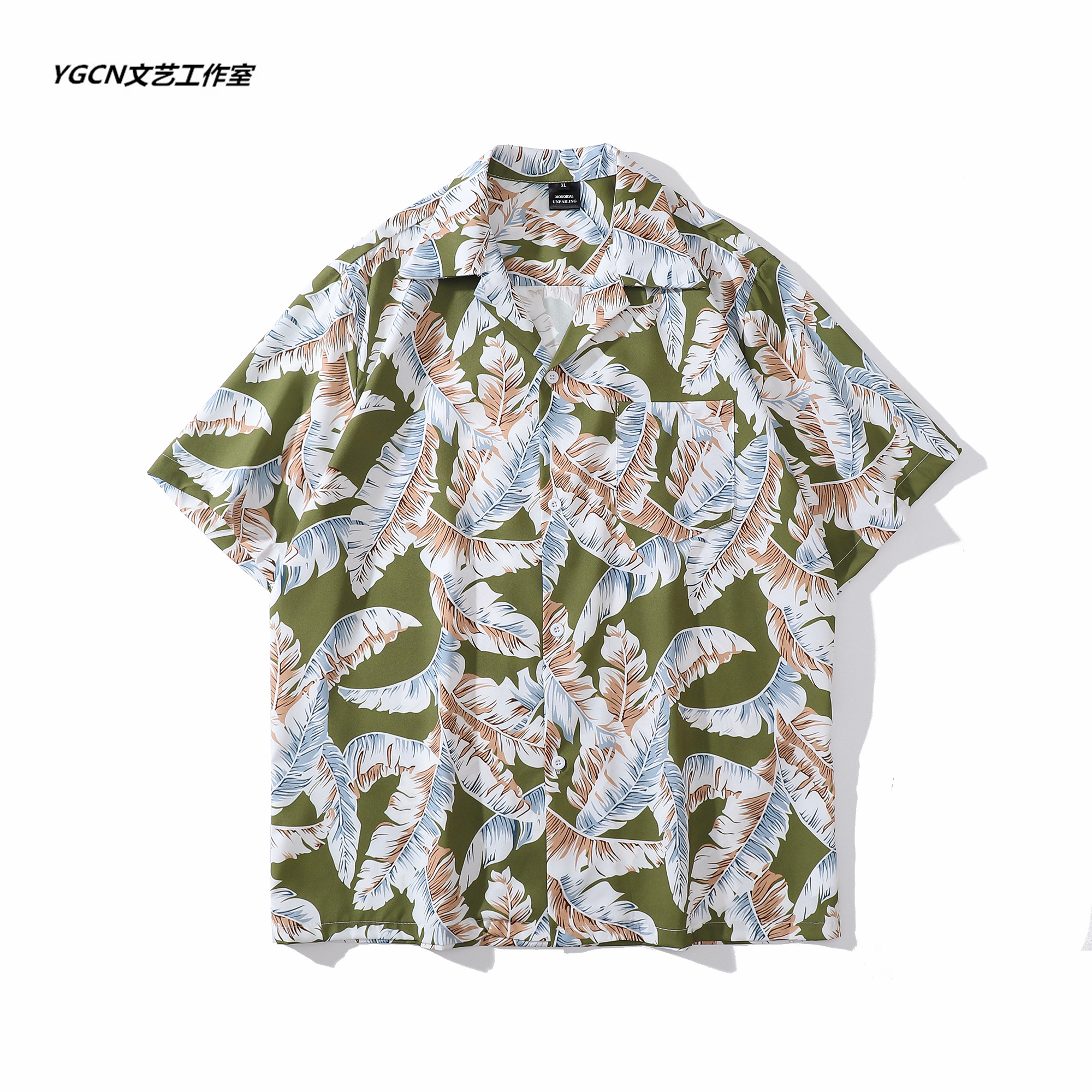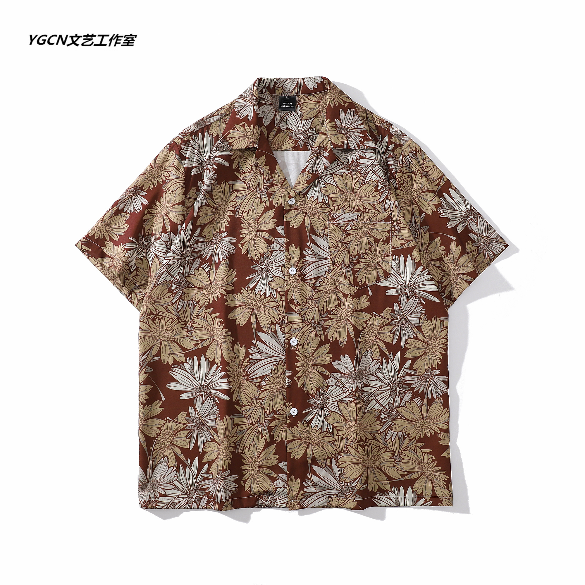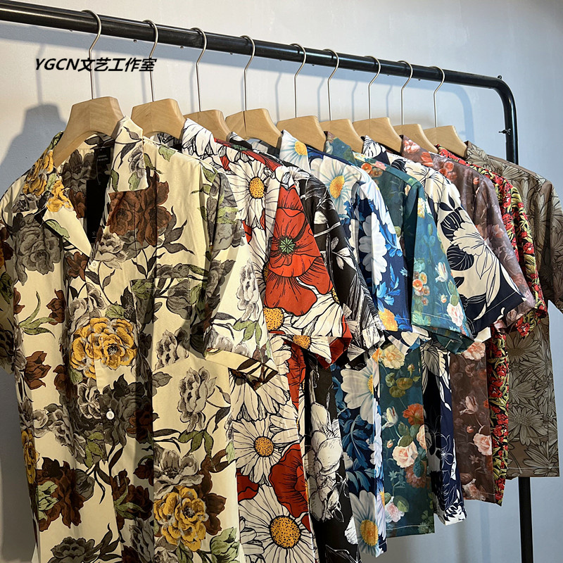 古着vintage古巴领碎花衬衫男女宽松港味夏威夷情侣沙滩短袖衬衣