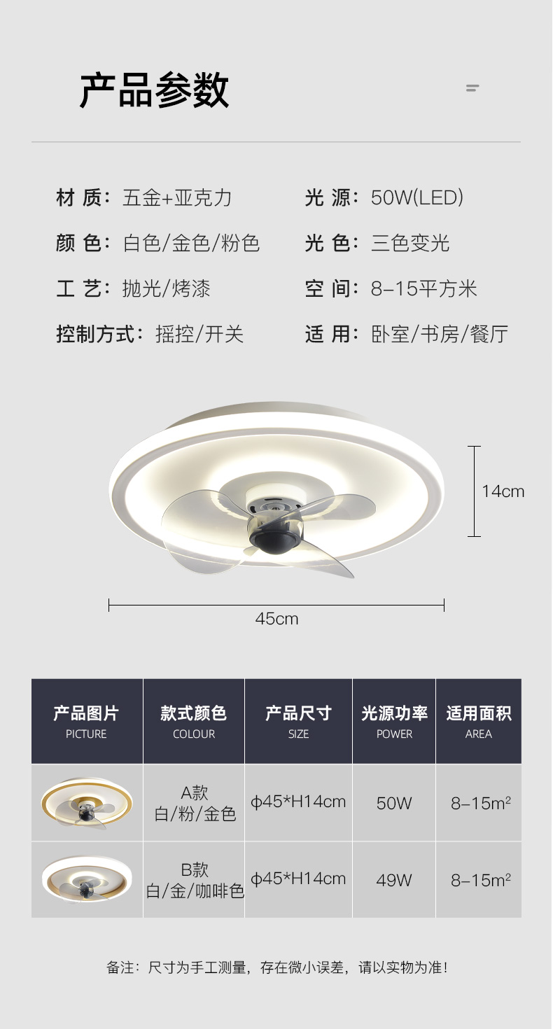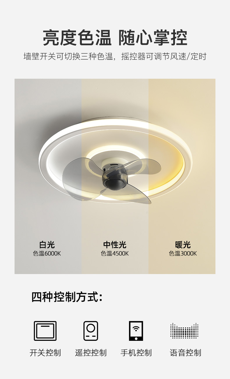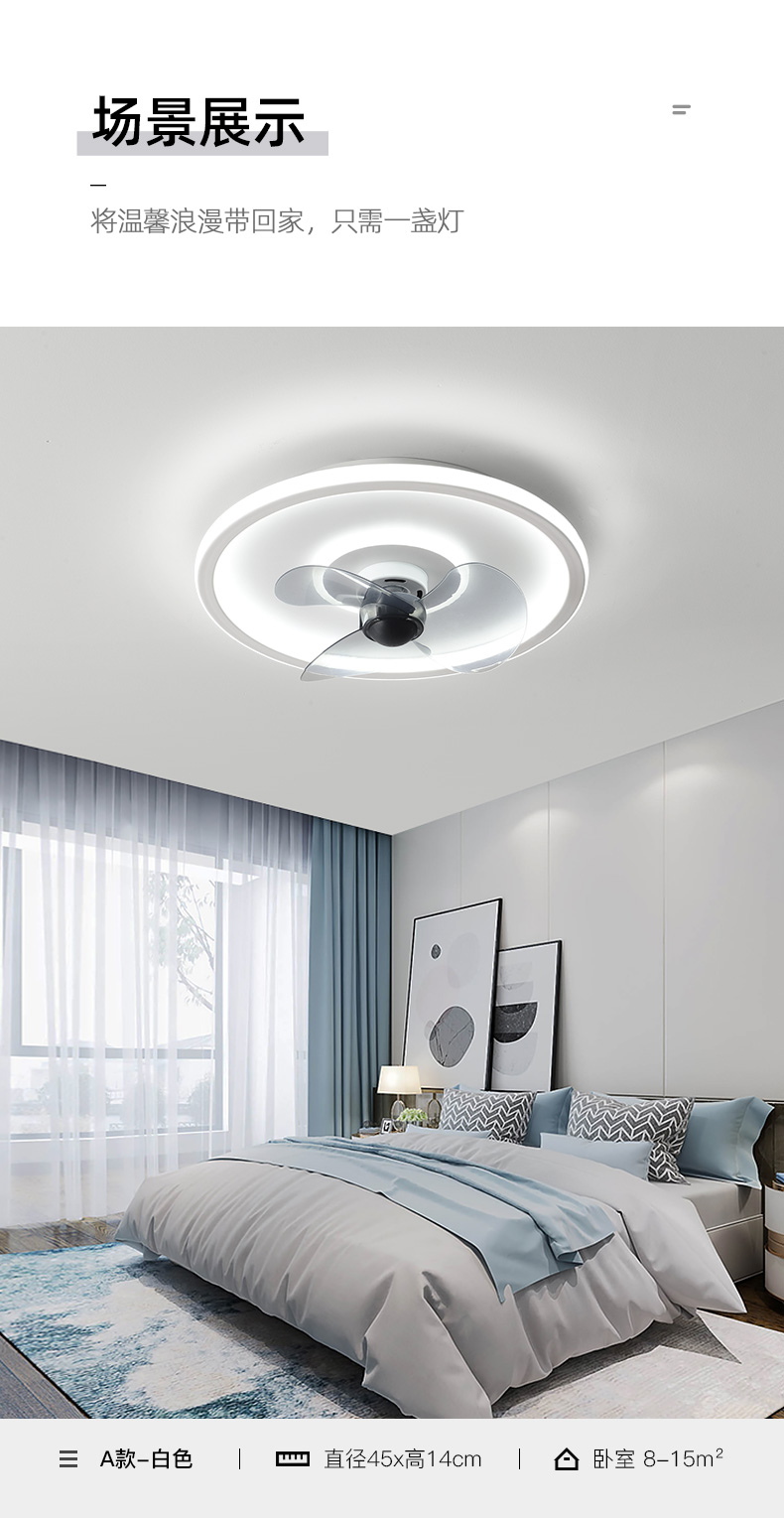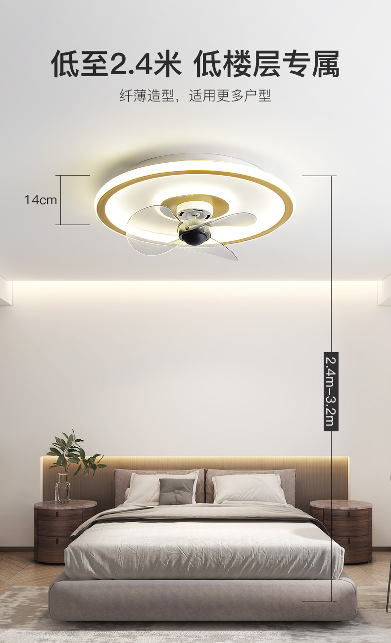 箭牌风扇灯卧室吸顶灯一体家用现代简约超薄隐形北欧电扇餐厅吊扇