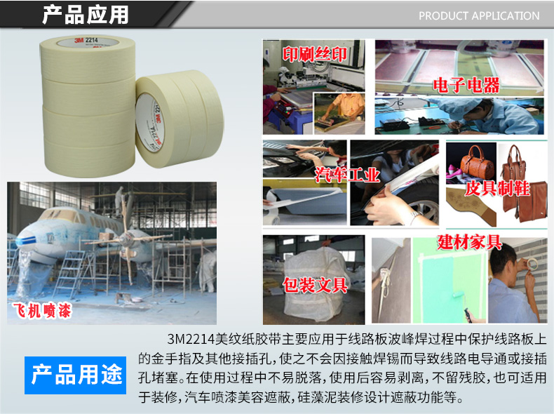 3M2214白色美纹纸胶带3M美纹纸汽车喷漆遮蔽无痕耐高温纸胶带批发