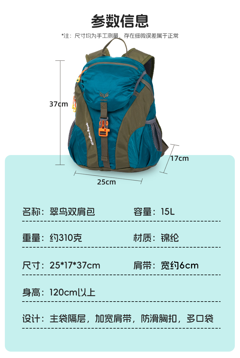 户外春游背包儿童旅行男孩外出旅游双肩包小学生轻便书包登山徒步