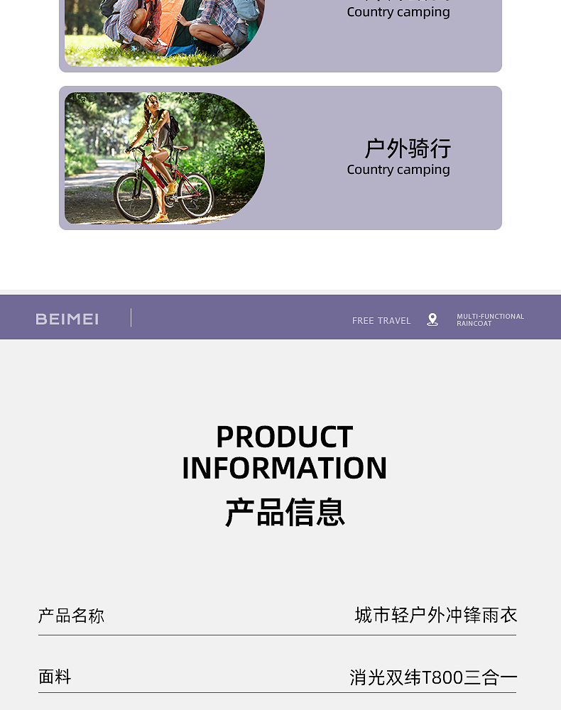 备美新款时尚雨衣电动车长款全身防暴雨女人车分离单人户外登山男