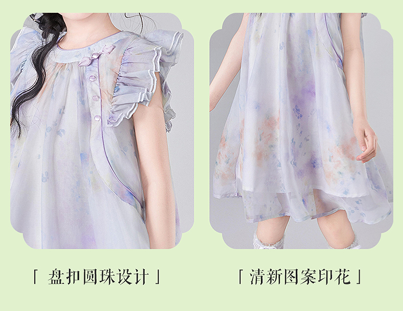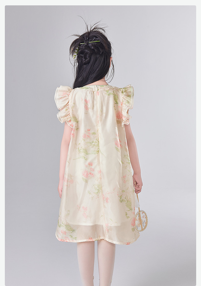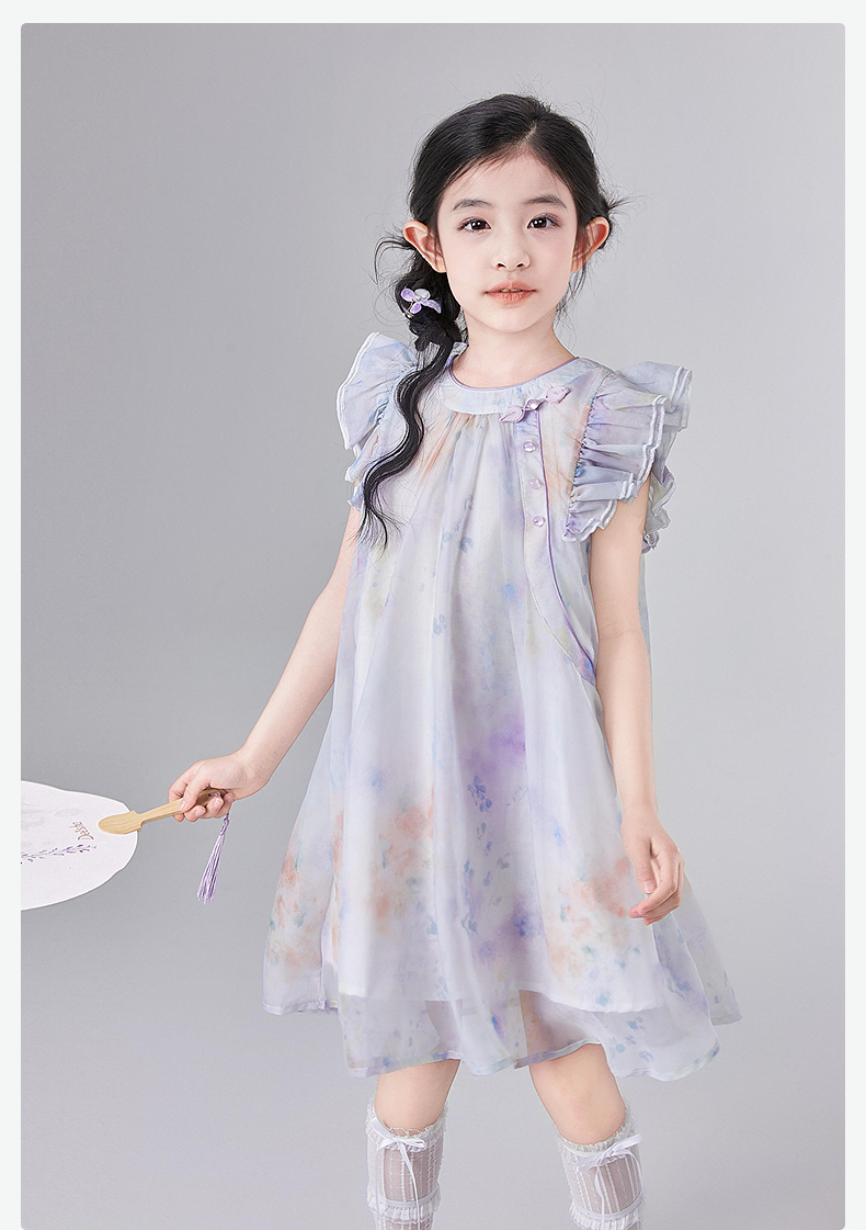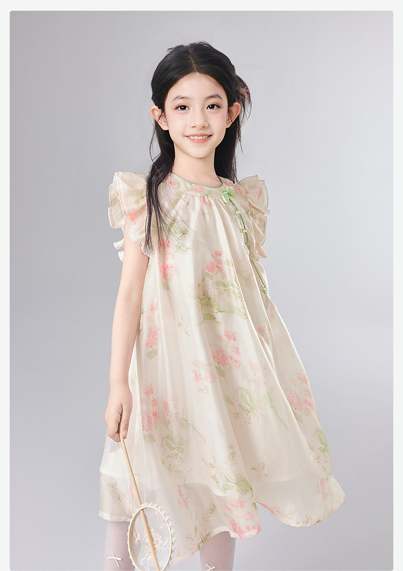 笛莎官方童装女童连衣裙2025夏季新款大童女孩儿童洋气飞袖国风裙