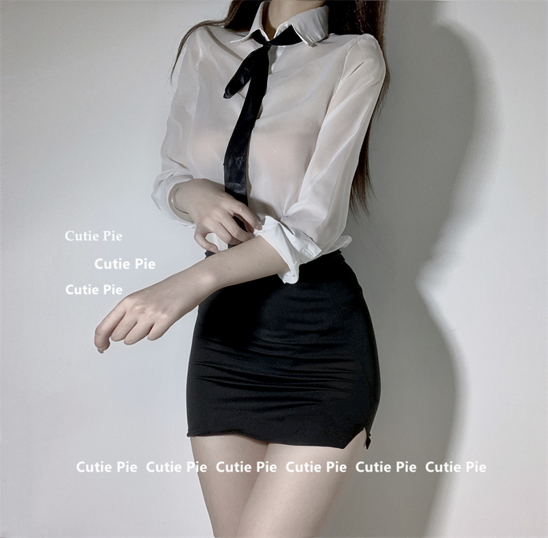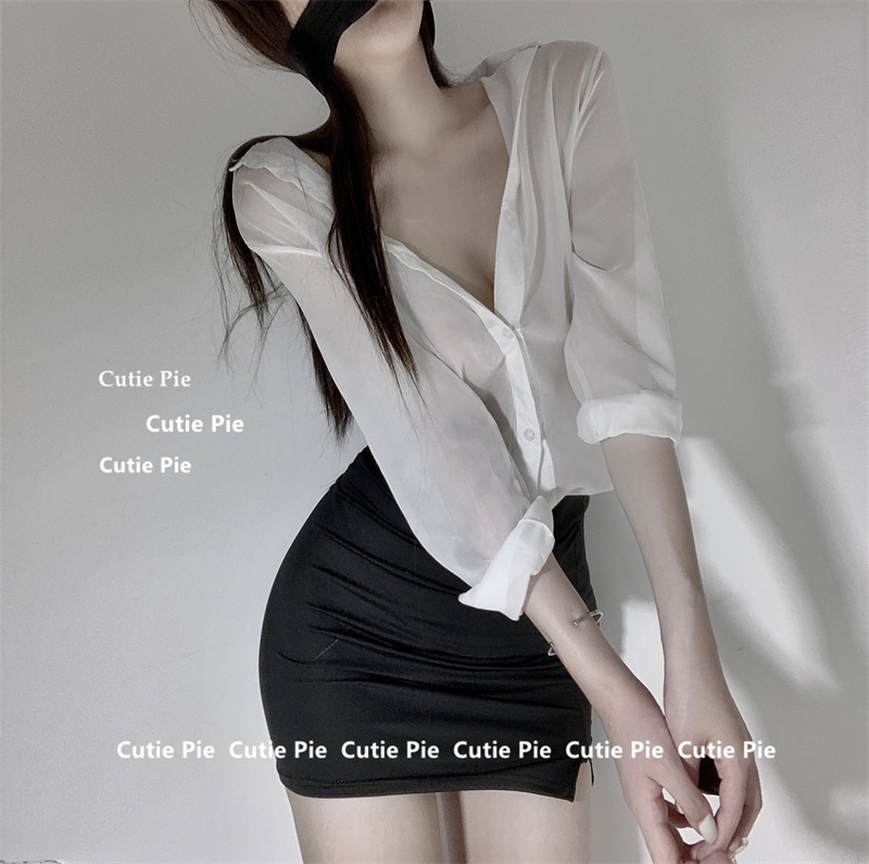 cutie:性感睡衣女衬衫薄透秘书制服诱惑透视吊带睡裙纯欲夏季女