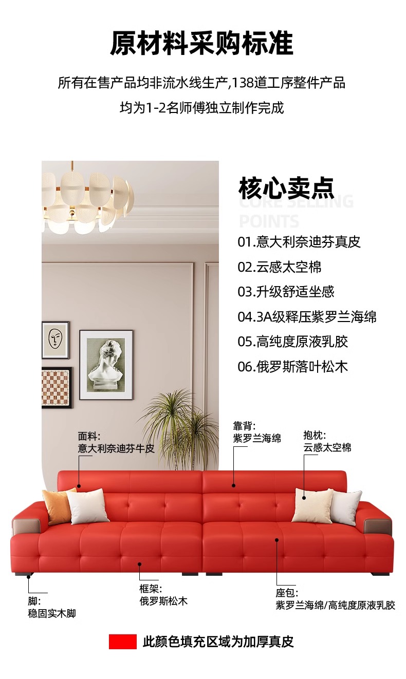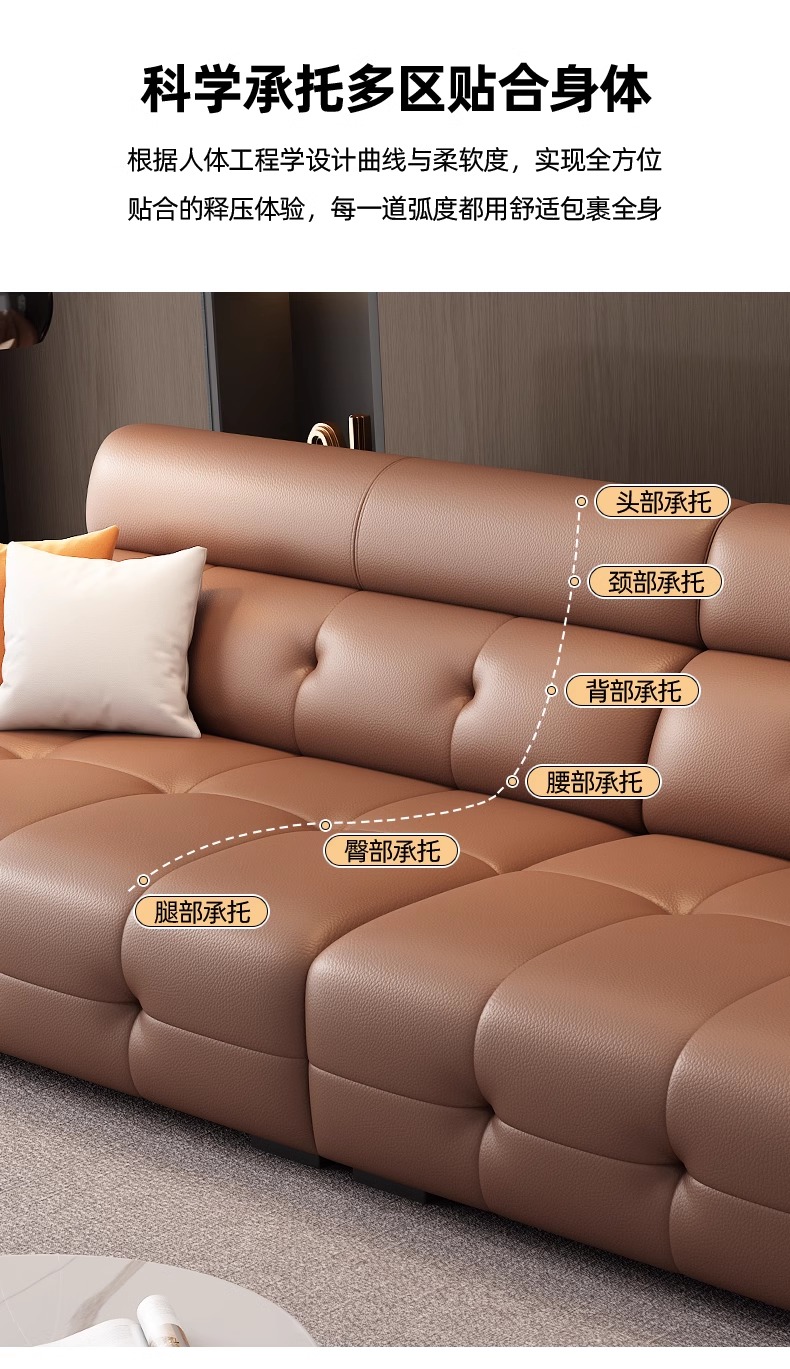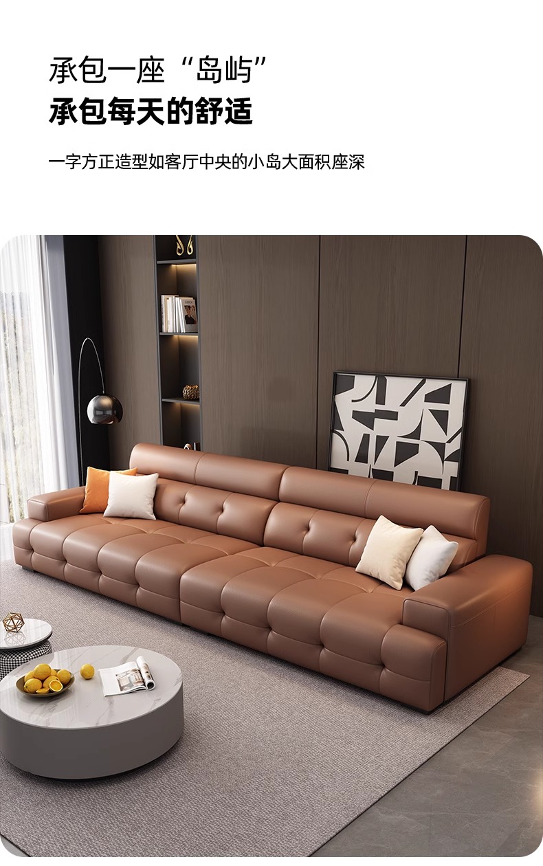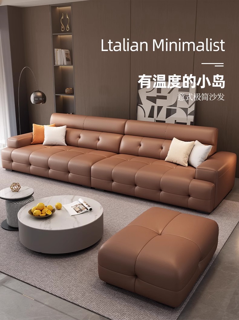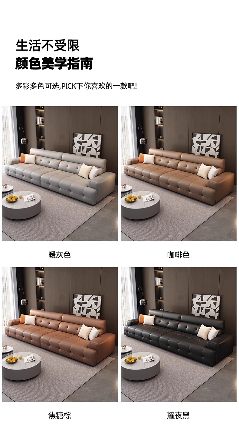 劳伦斯沙发猫爪皮简约现代大小户型客厅意式轻奢直排真皮沙发组合
