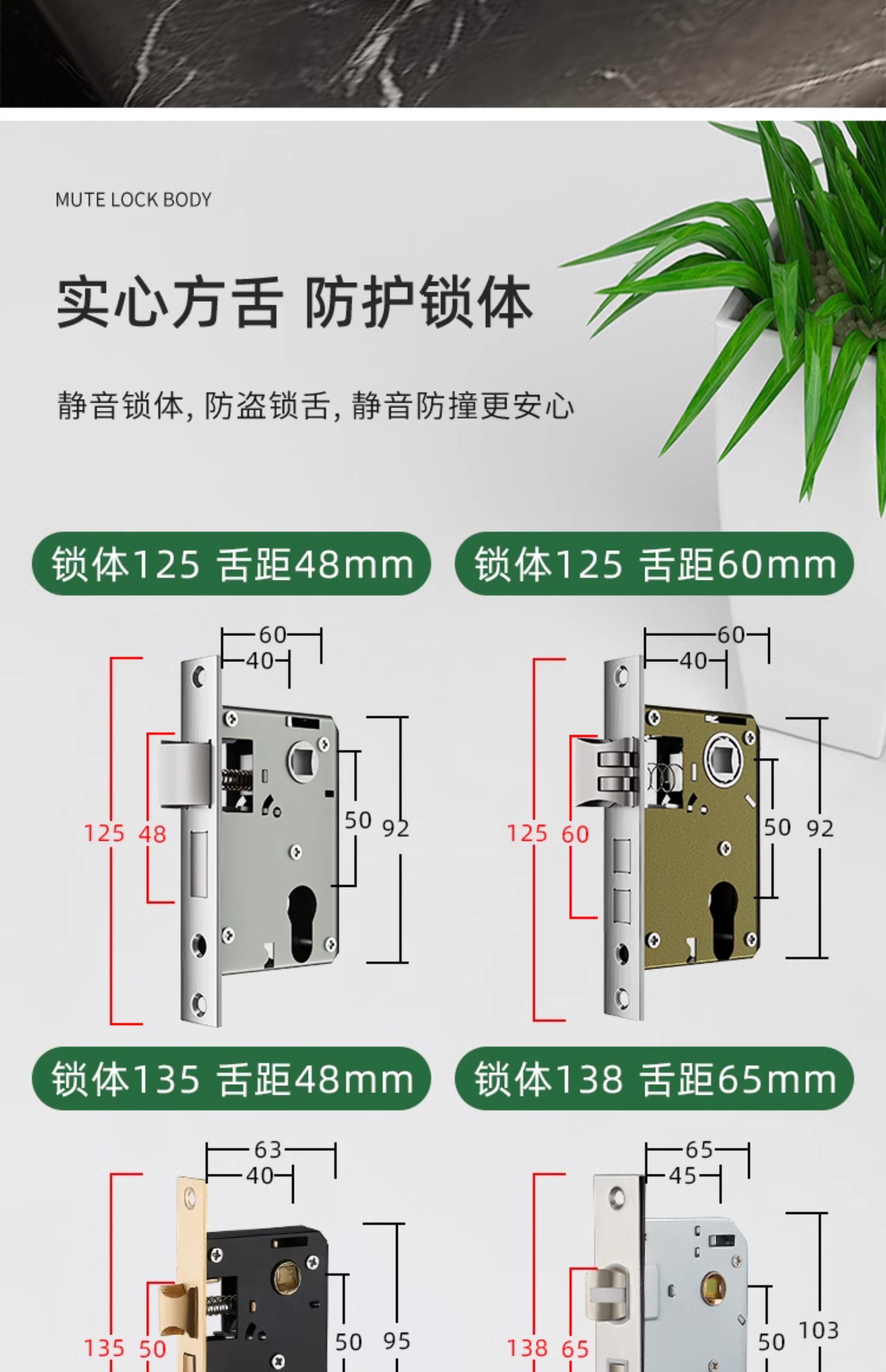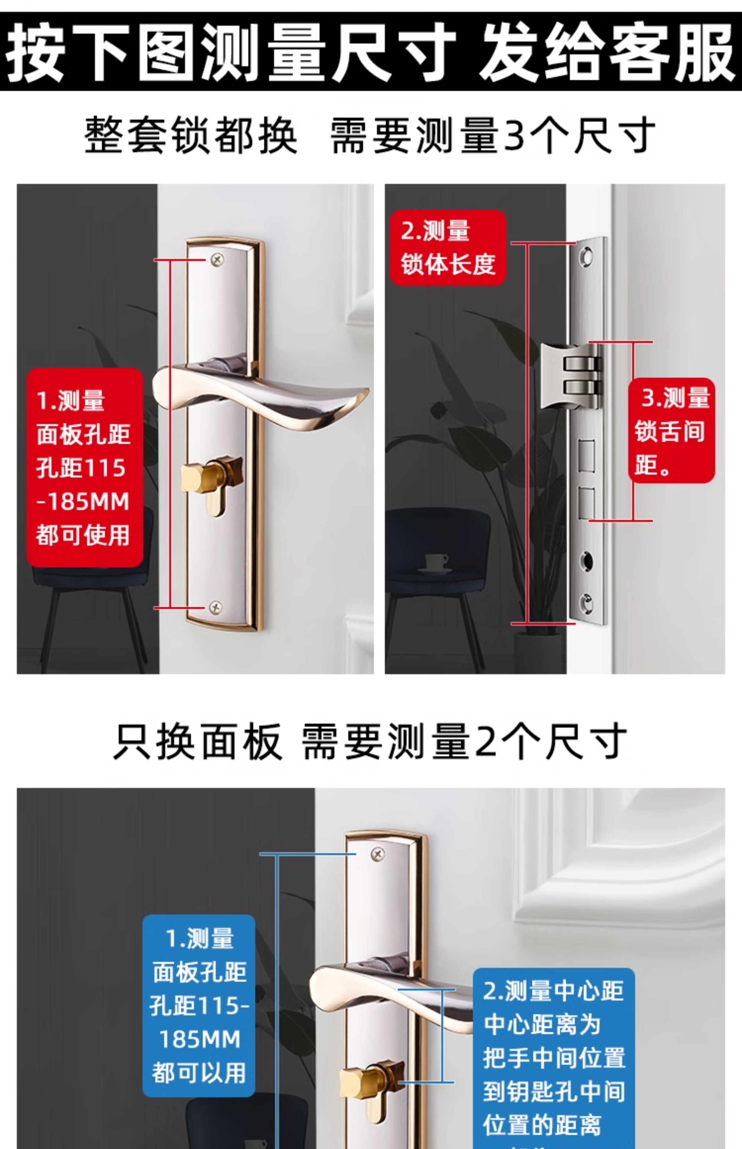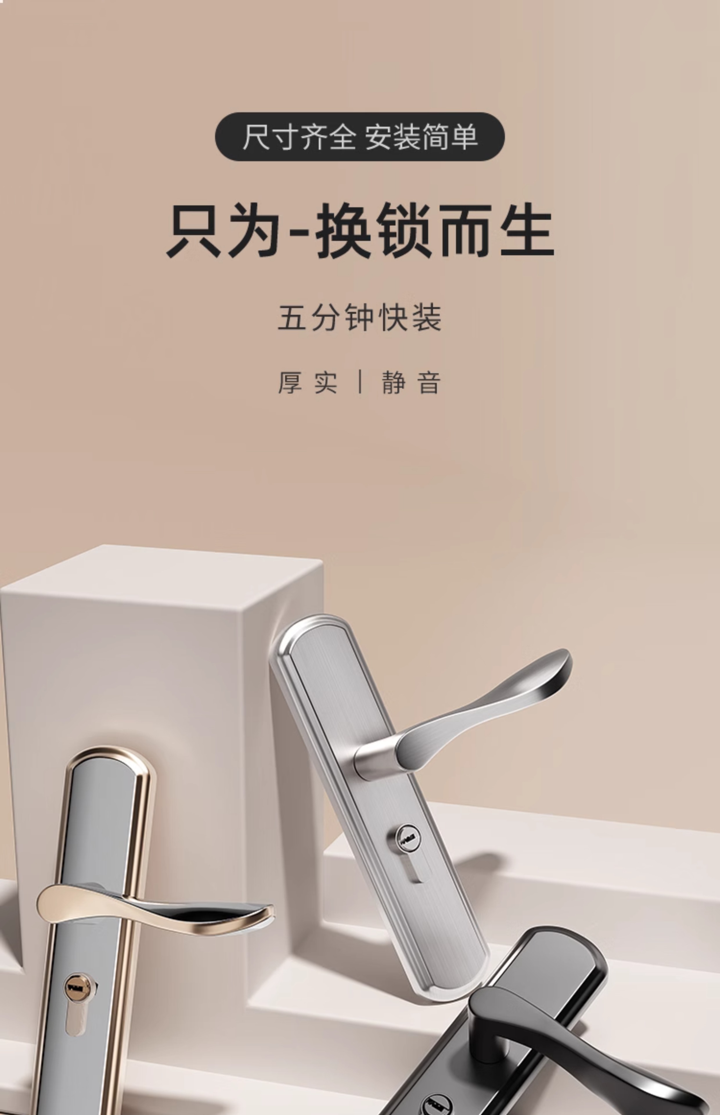 门锁家用通用型卧室门把手室内房门木门锁具免改孔可调节手柄执手