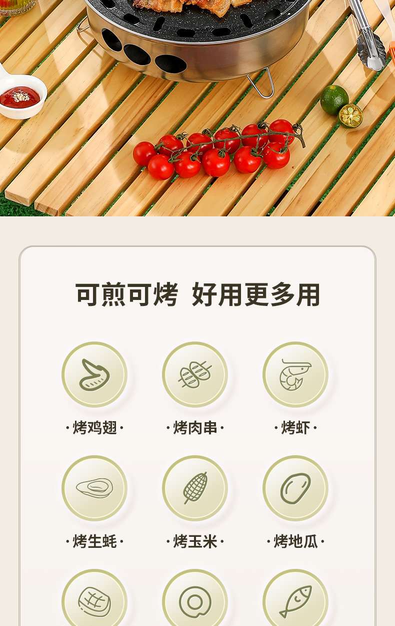不锈钢一次性烧烤炉露营便携式烤炉无烟果木炭室内烤肉架小型碳炉