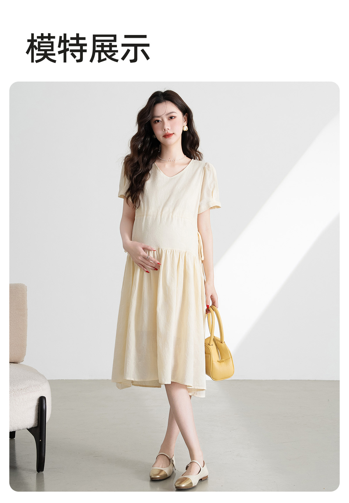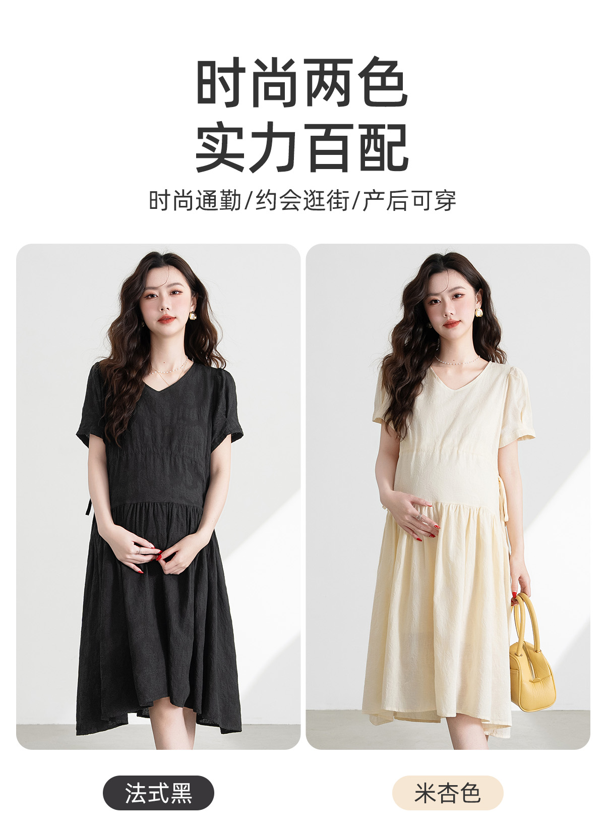 婧麒孕妇连衣裙子春夏季2025新款孕期法式穿搭中长款小个子夏装女