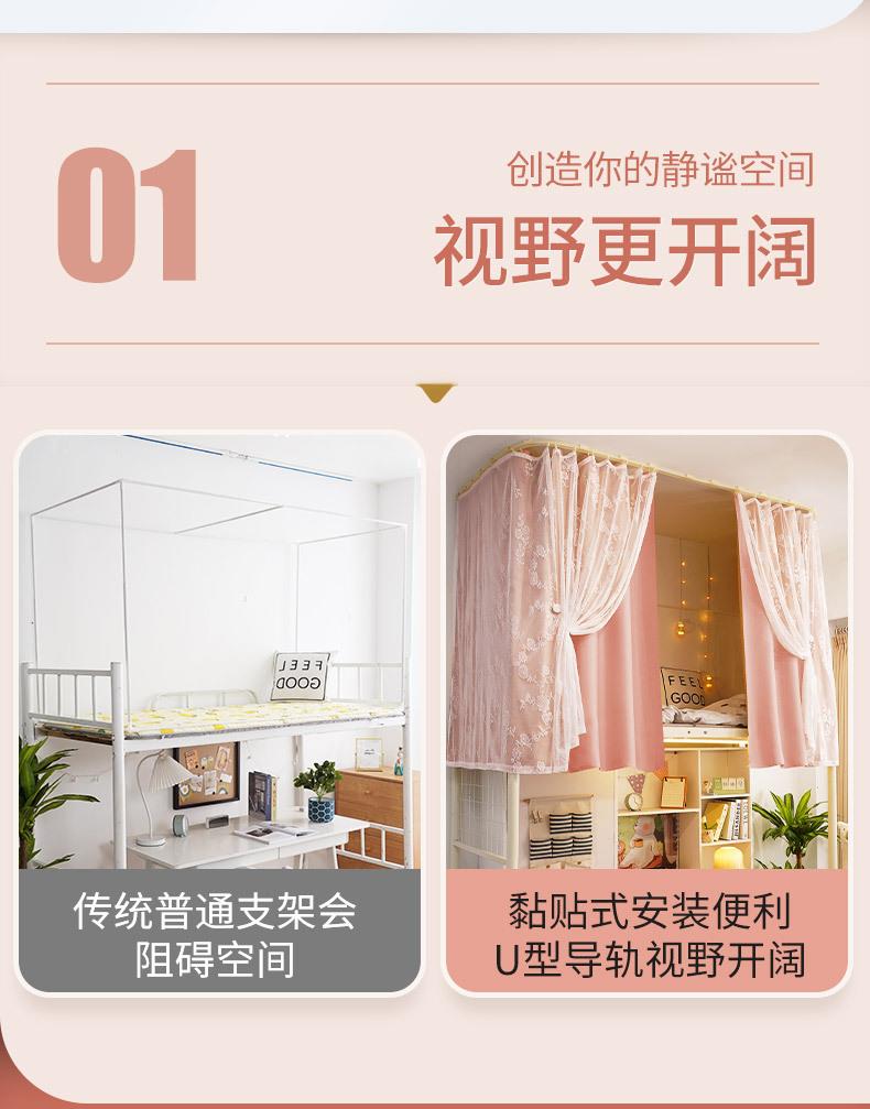 u型粘贴学生床帘遮光加厚2023新款寝室上下铺帘子围帘单人床围帘y