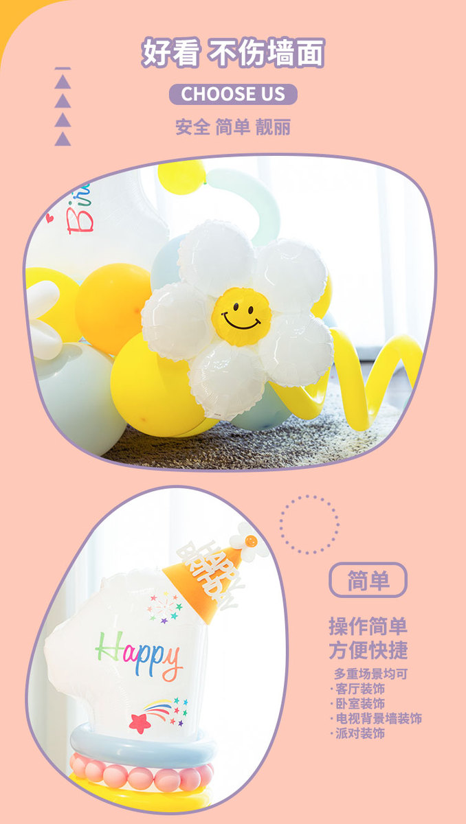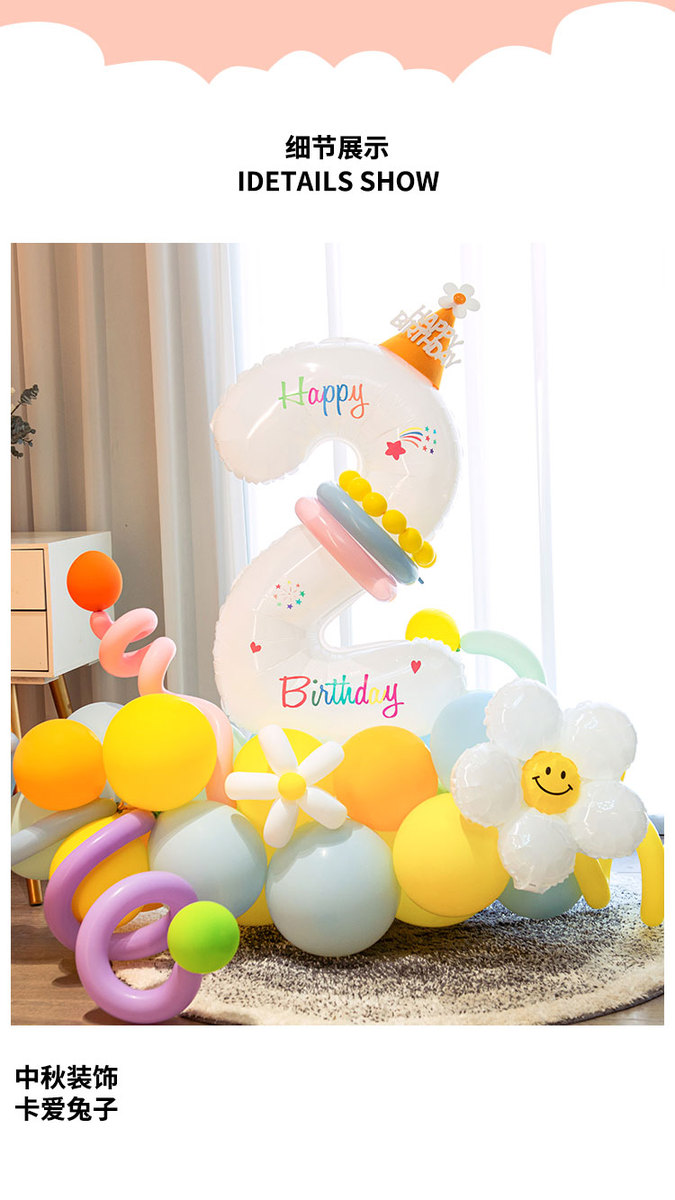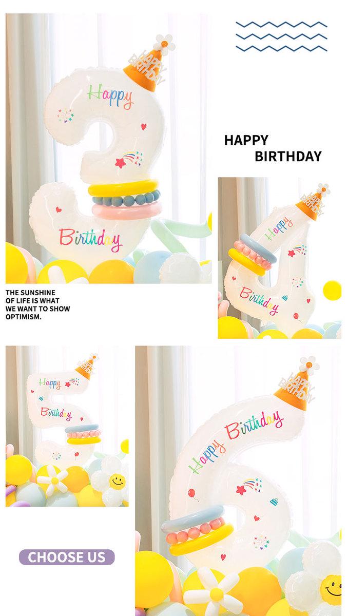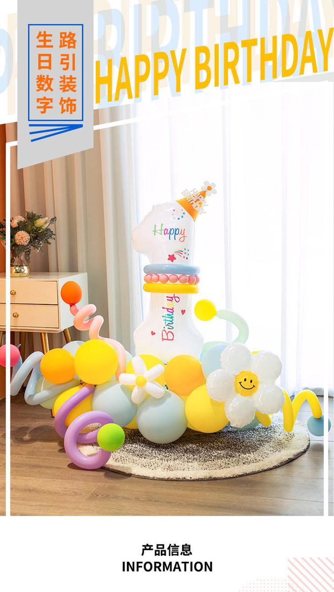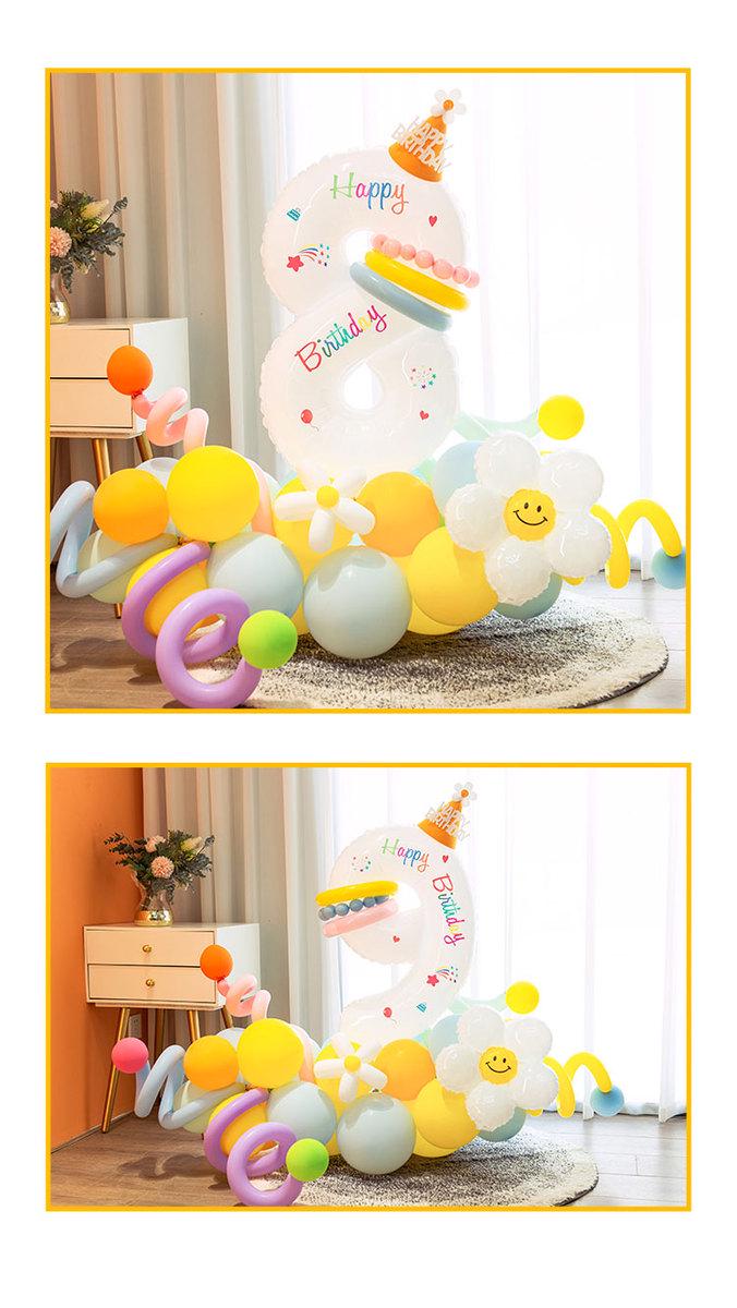 儿童1234白色生日数字气球花立柱男女孩周岁生日派对场景布置装饰
