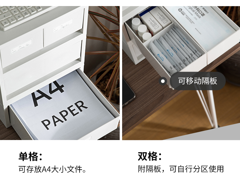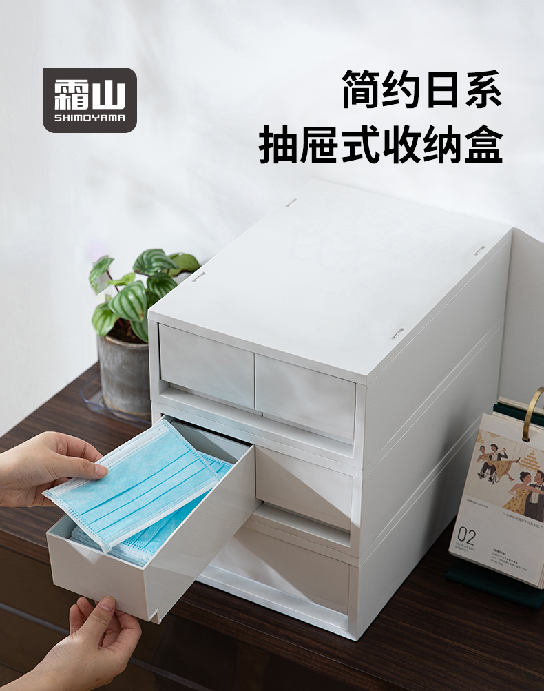 霜山抽屉式收纳柜A4办公文件储物柜书桌下多层移动化妆品置物柜