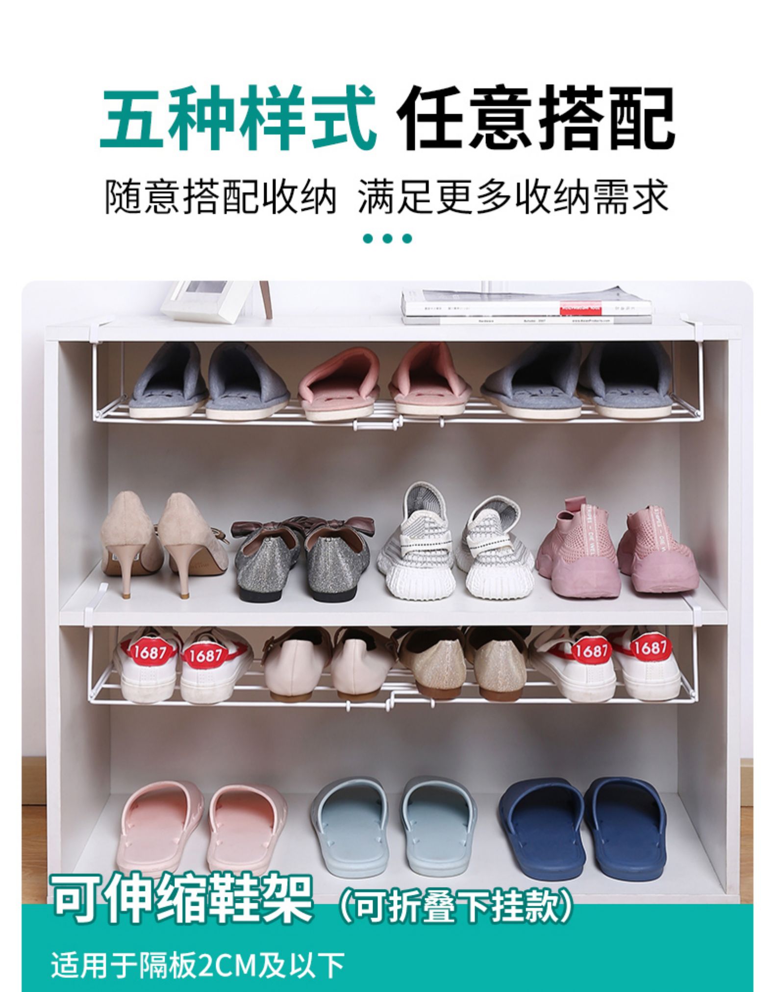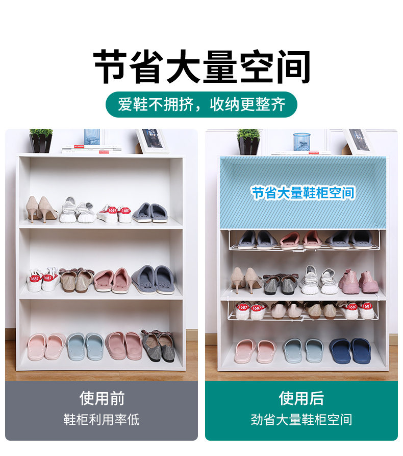鞋柜分层伸缩隔板收纳省空间神器鞋架双层鞋托置物放鞋子下挂托架