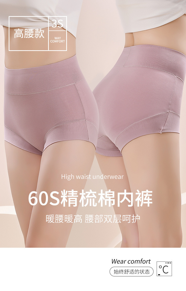 60支精流棉女士大码纯棉内裤纯棉裆部无痕高腰收腹裤提臀三角