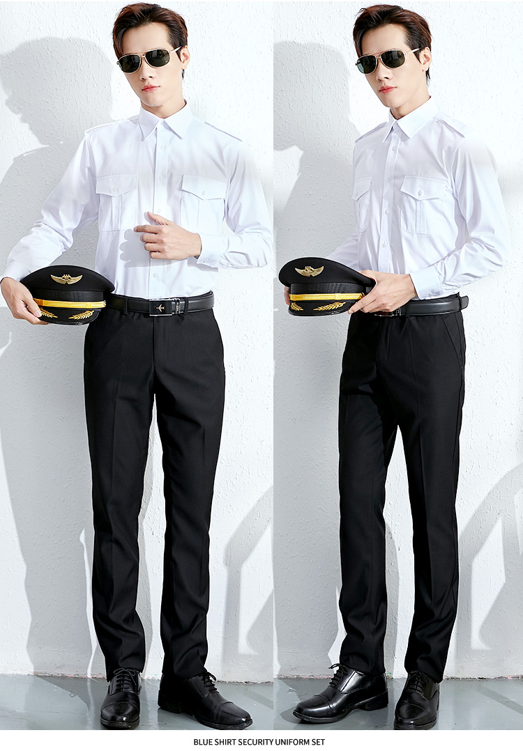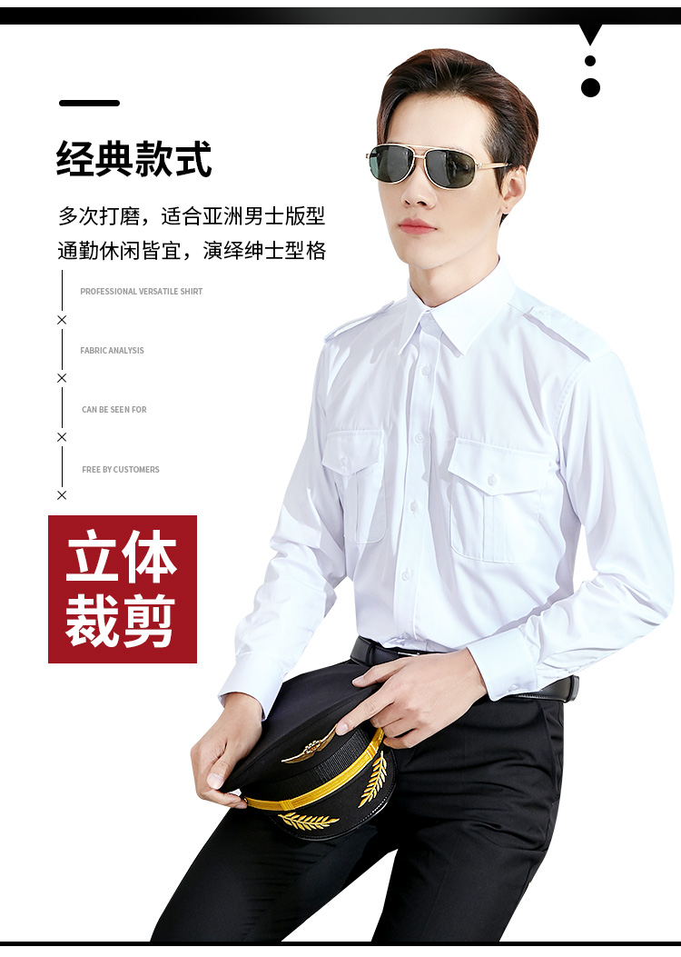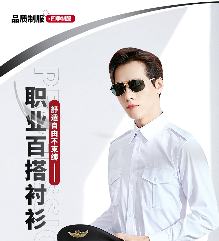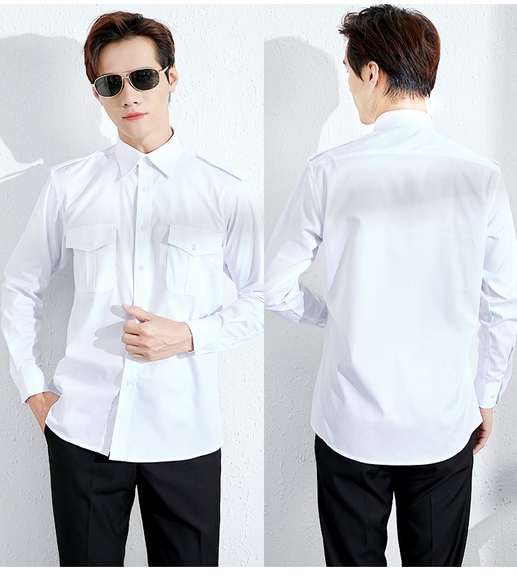 航空制服衬衫长袖男飞行员制服机长空少白色衬衣工作服棉职业工装