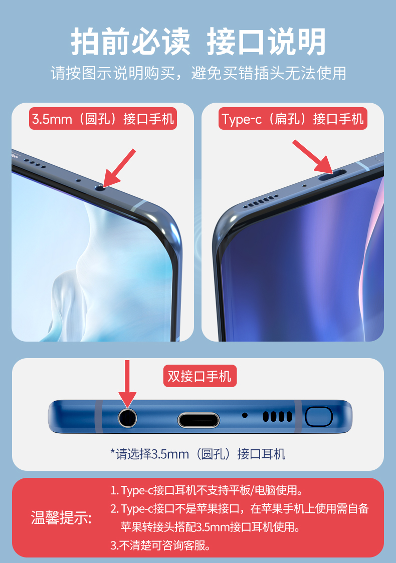 耳机有线耳机圆孔耳机typec接口typec耳机35安卓耳机有线电脑耳机