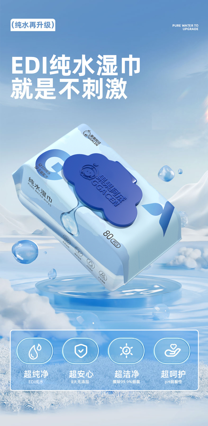 婴儿湿巾纸手口专用新生宝宝婴幼儿童湿纸巾纯水家庭实惠家用大包